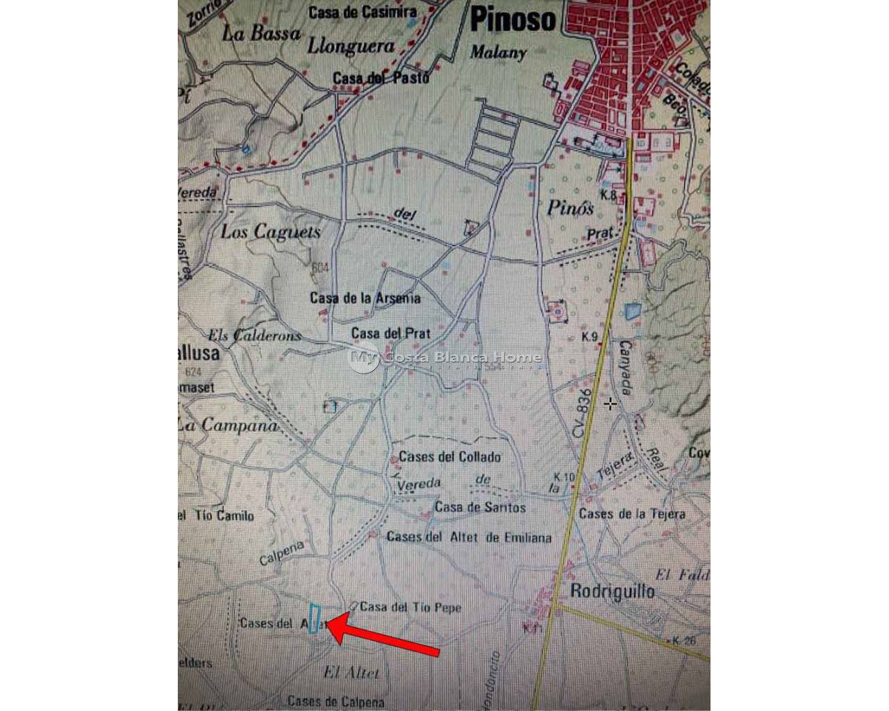 Building plot of 11,734m2 located in the Prado area of Pinoso which is approx 5 minutes drive from the centre of town. There are two occupied properties, one either side of the plot, both of which have water and electrify connected with meters at the corner of our property. It is possible to build up to 2% of the land size.