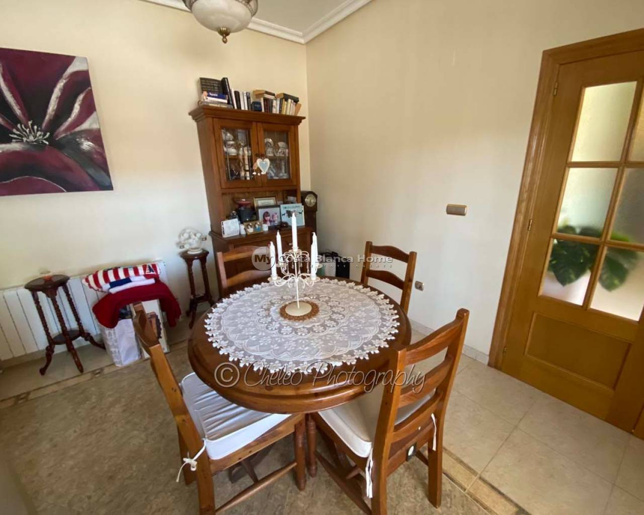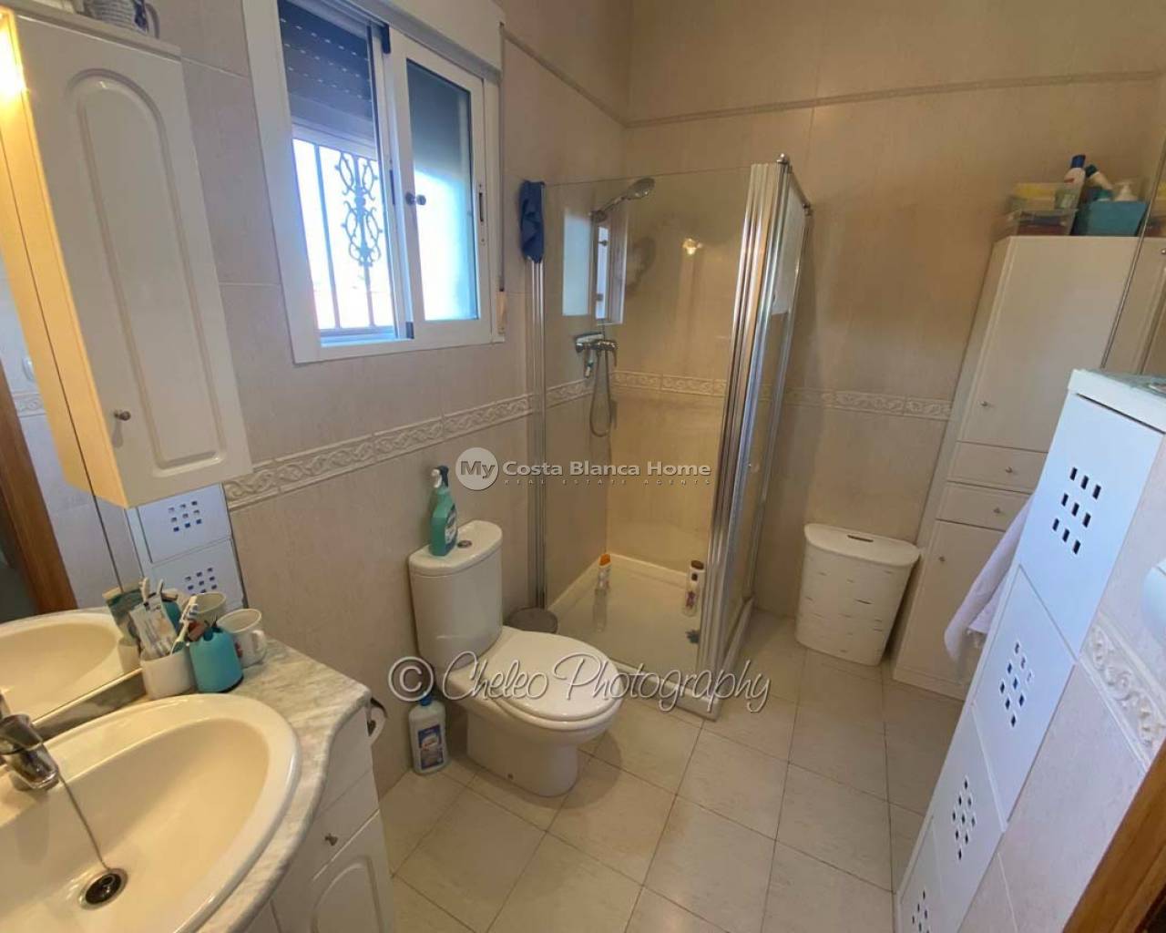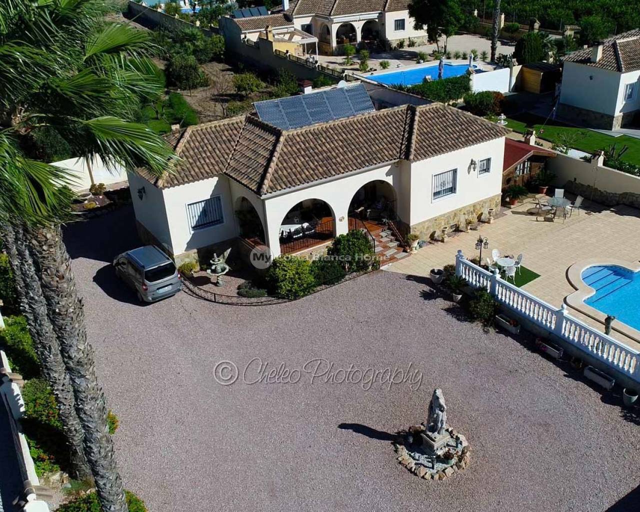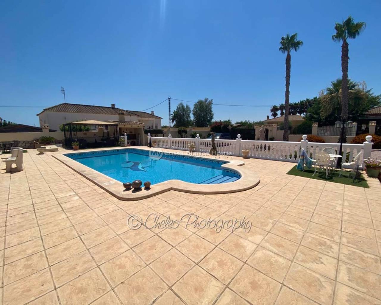 Offered exclusively by My Costa Blanca Home, this gorgeous detached villa of approx. 140m2 build size is set on a fully landscaped and walled plot of 1,170m2 walking distance to the town of Catral. Comprising of a covered porch area, entrance hallway, spacious air conditioned lounge with fireplace, log burner and dining area, fully fitted kitchen with utility room and access to the garden via a UK standard glazed door, master bedroom with fitted wardrobes and ensuite bathroom, 2 further double bedrooms with fitted wardrobes plus a family shower room. All bedrooms have ceiling fans and Panasonic air conditioning installed. The property is fully alarmed and features an outside perimeter alarm, all the windows have locks, gas central heating, mains water and electric plus fibre optic internet.