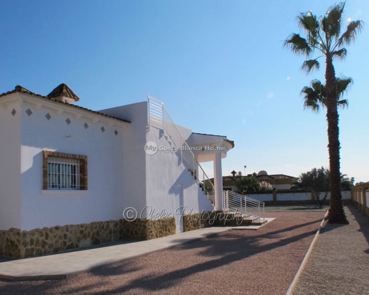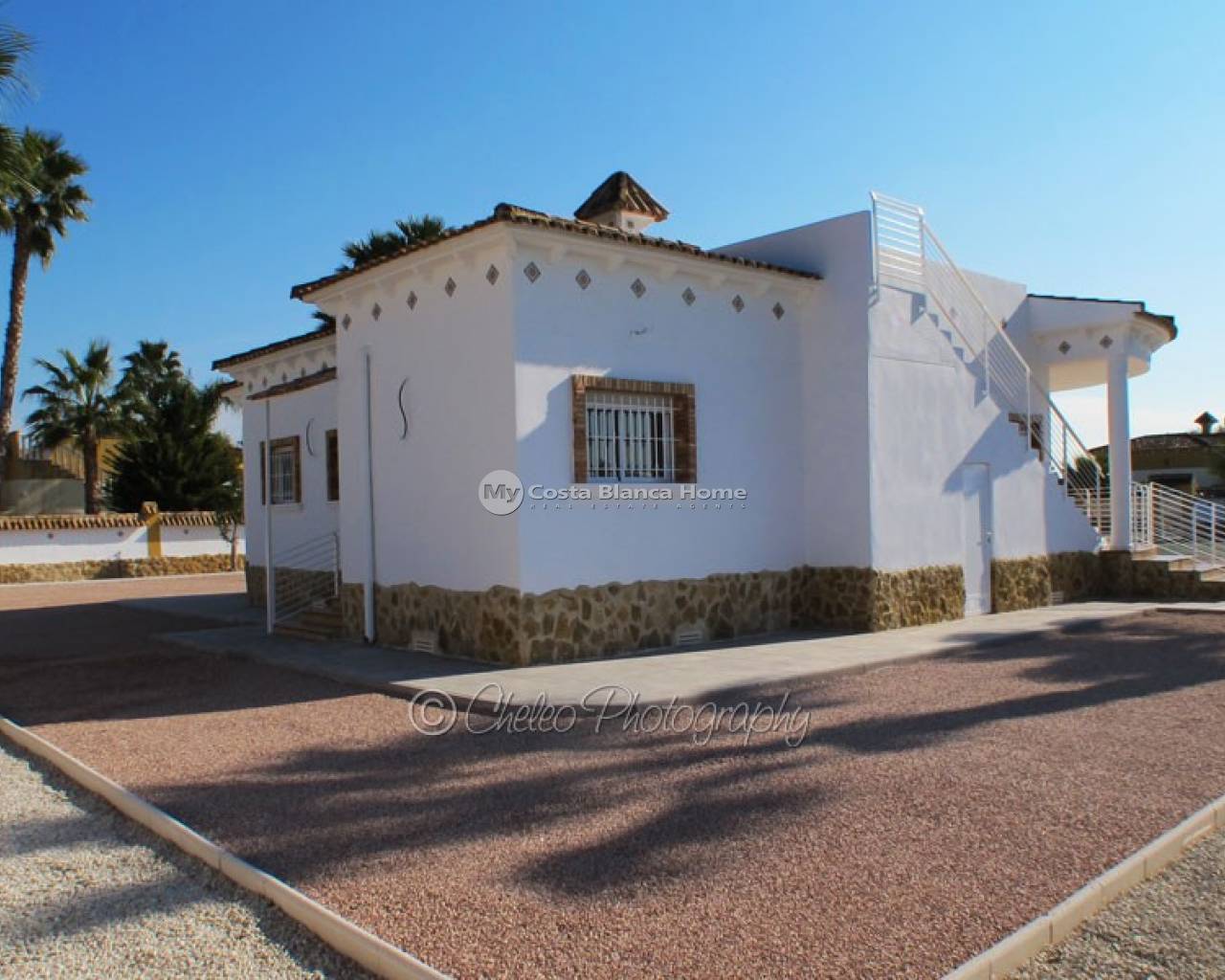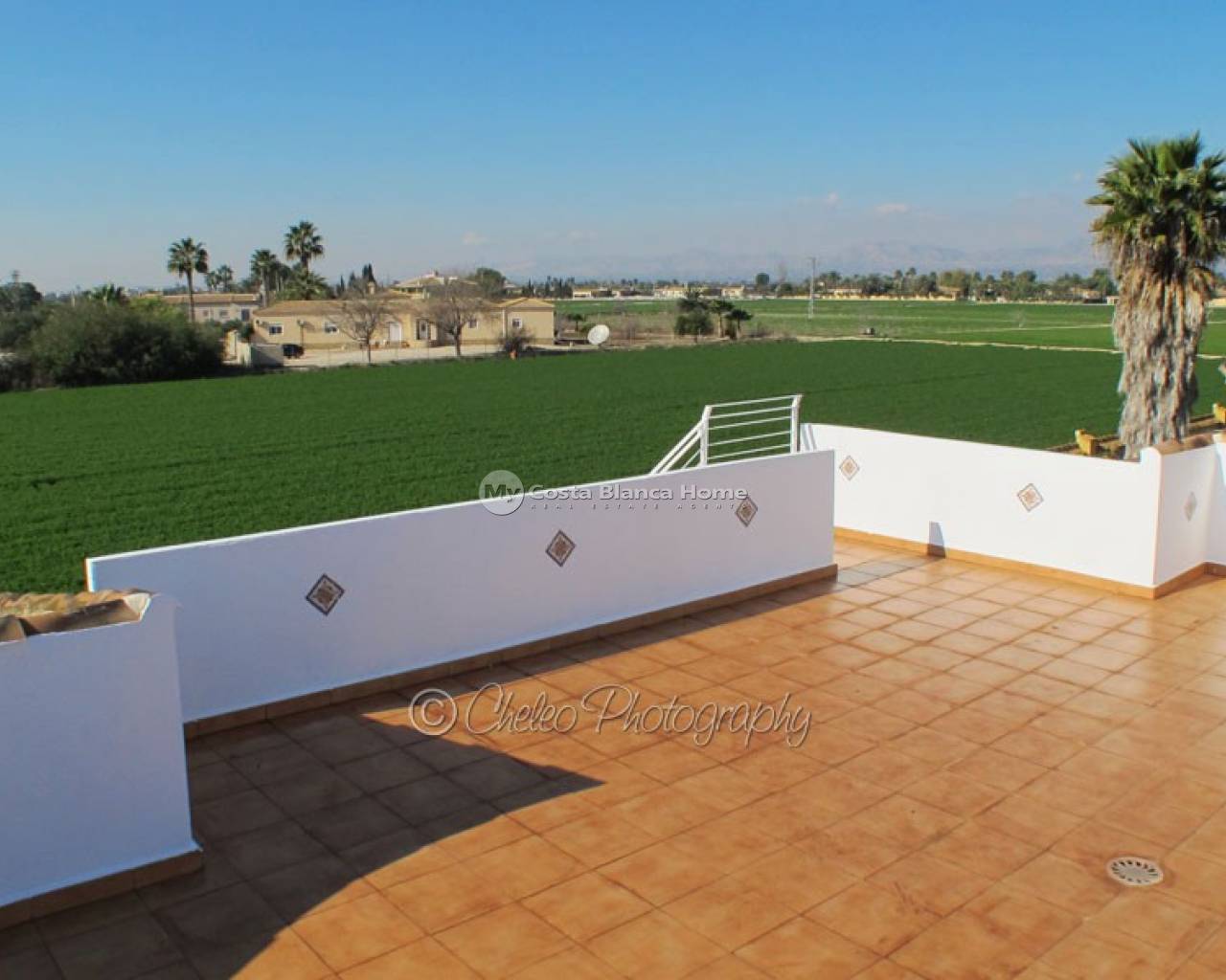 New to the market, this detached villa offers you 159m2 of living area set on a 2,073m2 plot close to Catral. Comprising of 3 double sized bedrooms all with built in wardrobes of first quality, family bathroom, en-suite to the master bedroom, large fully fitted open plan kitchen and an ample sized main living room. Covered porch to the front and there is a storage room under the stairs that lead to the rooftp solarium. This property has never been lived in and is available immediately.