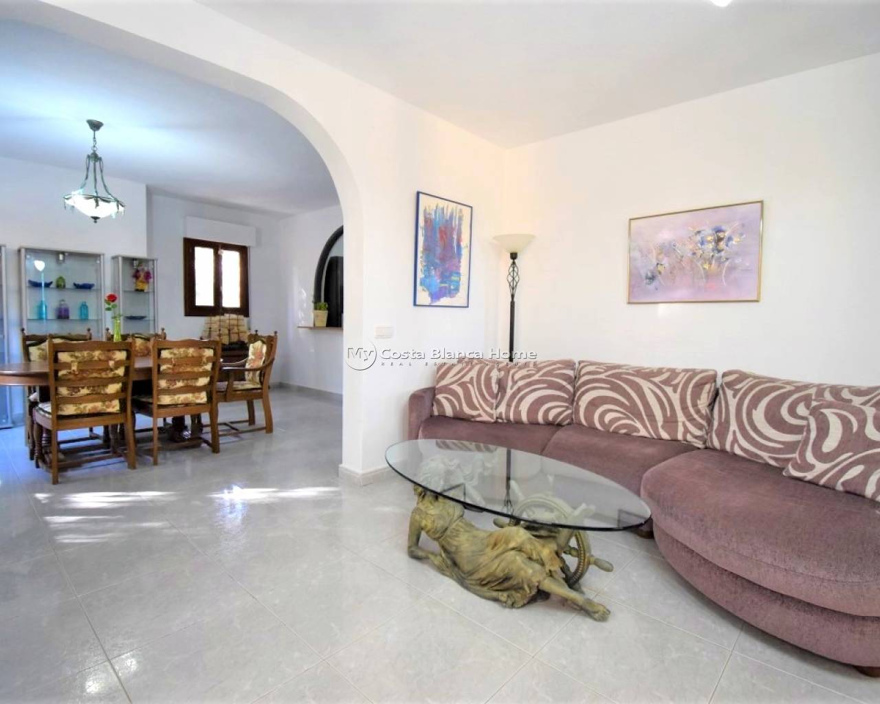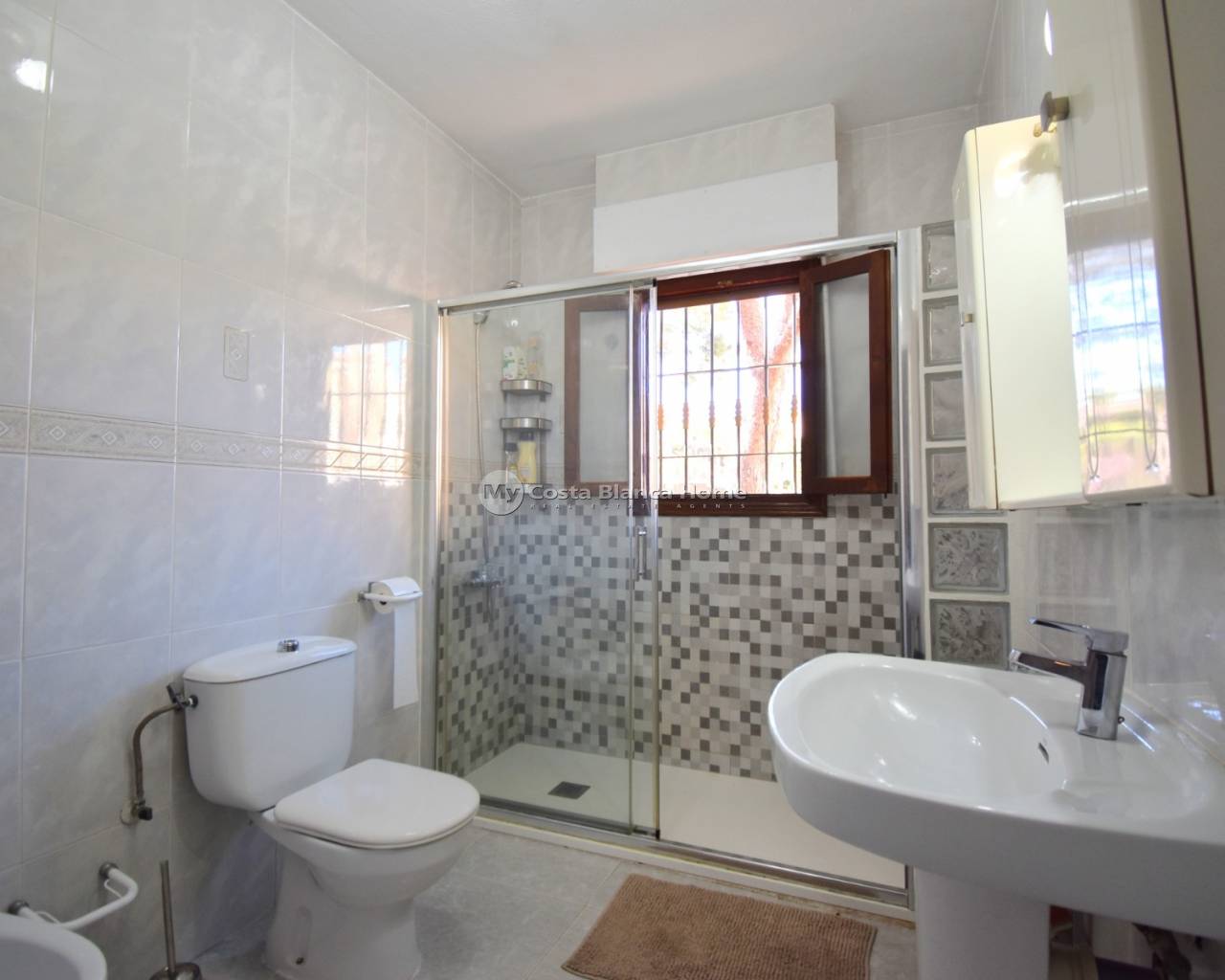 This East Facing, Six Bedroom Detached Villa in the area of Las Filipinas, Villamartin; a popular residential area just a five minute walk to cafe bars, restaurants, small convenience shop; major supermarket 2 minutes by car, along with “La Fuente” commercial centre and 2 golf courses; 10—15 minutes to the coast where you have a choice of beaches and an abundance of amenities, including La Zenia Boulevard shopping centre. A character villa on an 800m2 private mature plot, comprising: Curved covered terrace offering ample dining space which then opens out to a great terraced area which is partly covered; entering the property into a curved spacious entrance hall, which has stairs leading up to the first floor; lounge area with feature fireplace and wide arch leading to another living/dining area; American style fitted kitchen; utility room; cloakroom; The lower living area of this villa has a lounge/sitting area; four double bedrooms, master with sliding doors out to the garden; one single bedroom; two further bathrooms; large double bedroom with en suite bathroom on the first floor. The villa is surrounded by the mature grounds it stands in, including an 8x4 private pool with plenty of terracing around, lots of mature tall trees and driveway access, BBQ area. The property also benefits from a large storage area on the ground floor and central heating. A truly great family home.