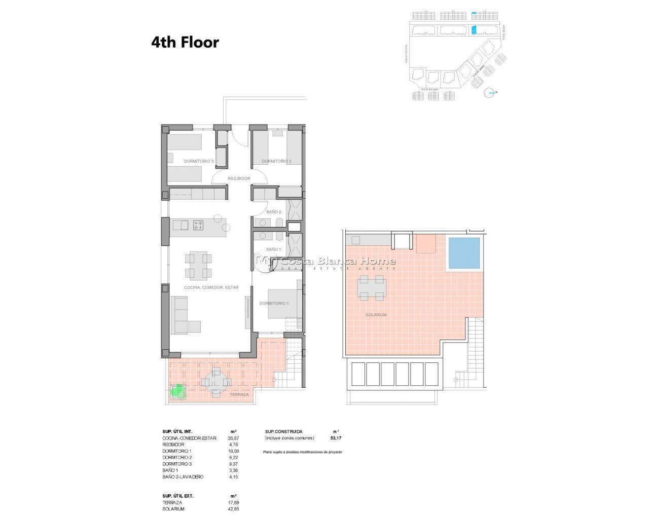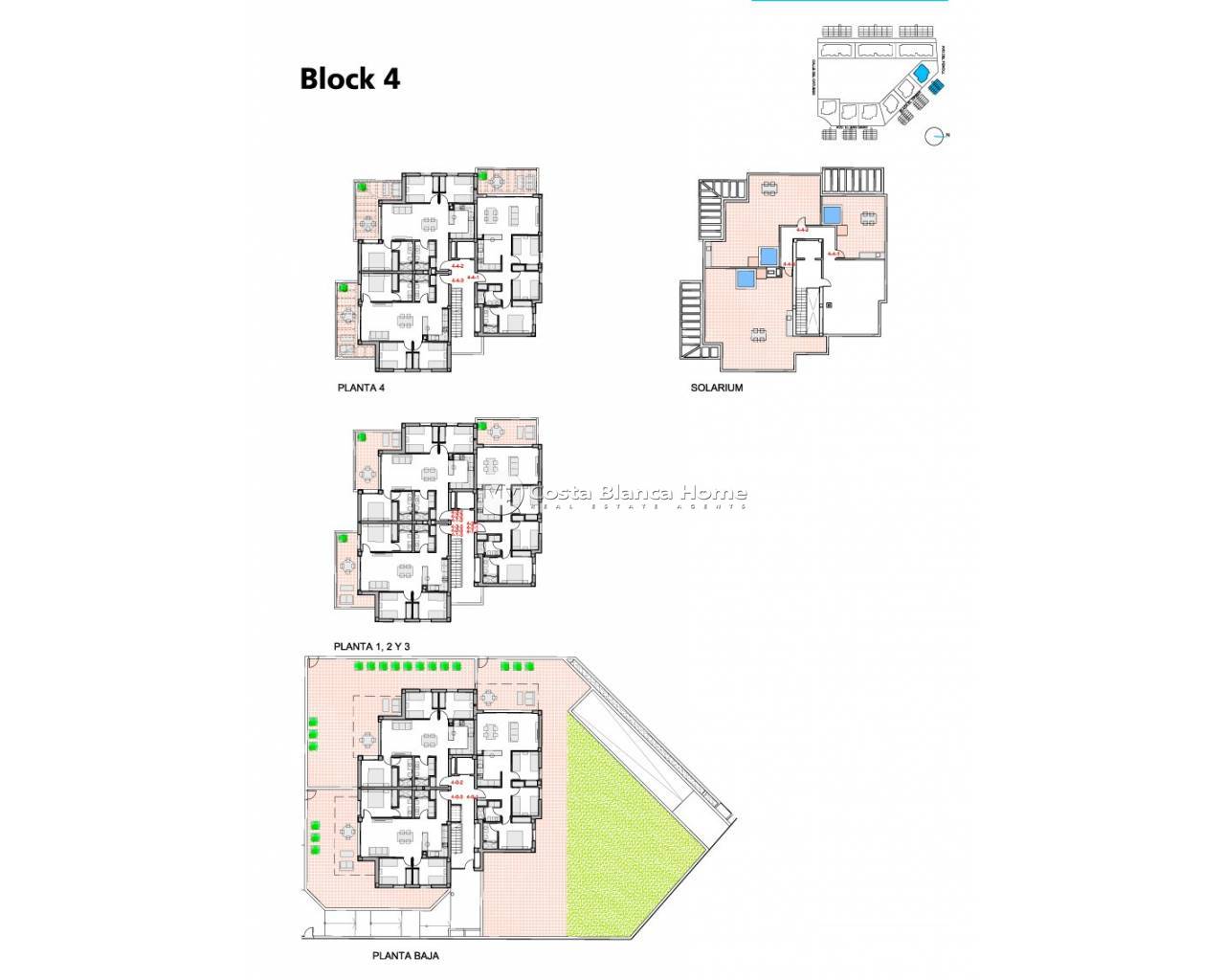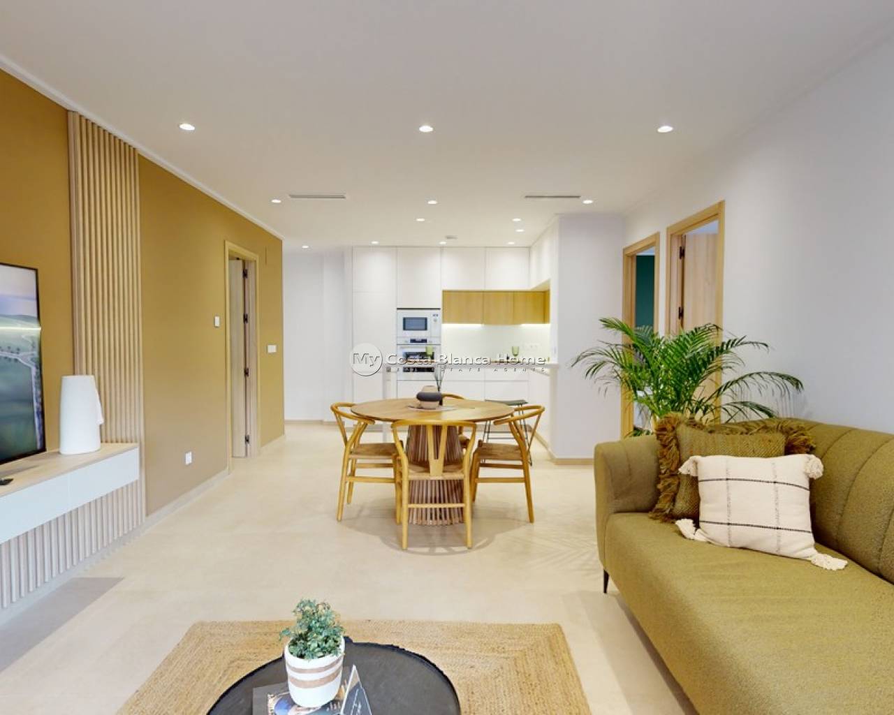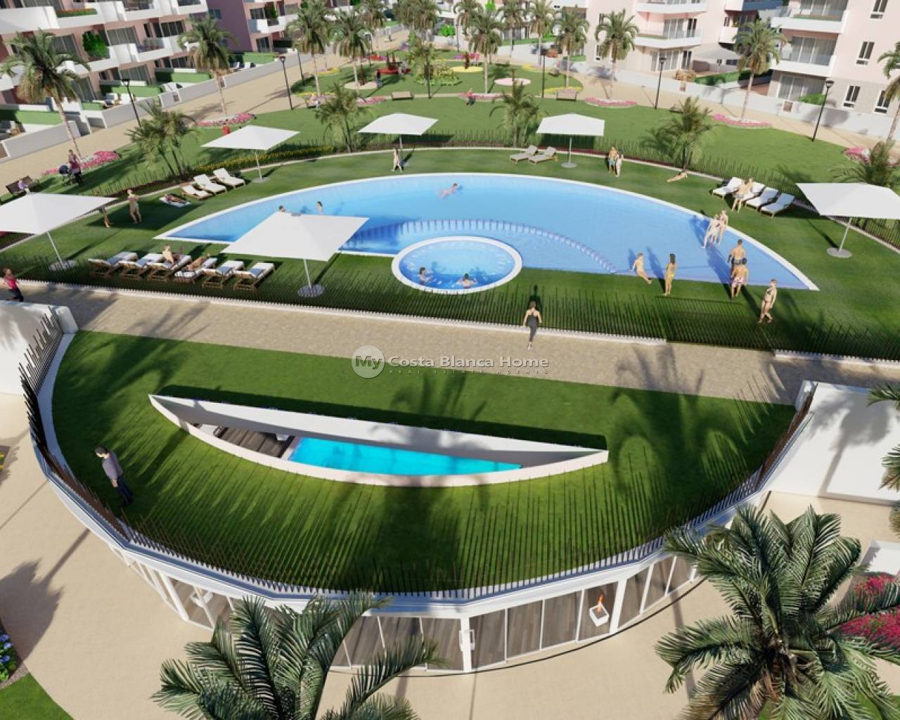 New complex of 175 apartments with beautiful communal areas, located in El Raso, a privileged area in Guardamar del Segura, on the Costa Blanca South. A large selection of daily services, such as supermarkets, bars and restaurants, leisure and sports activities are available, just a short drive away.