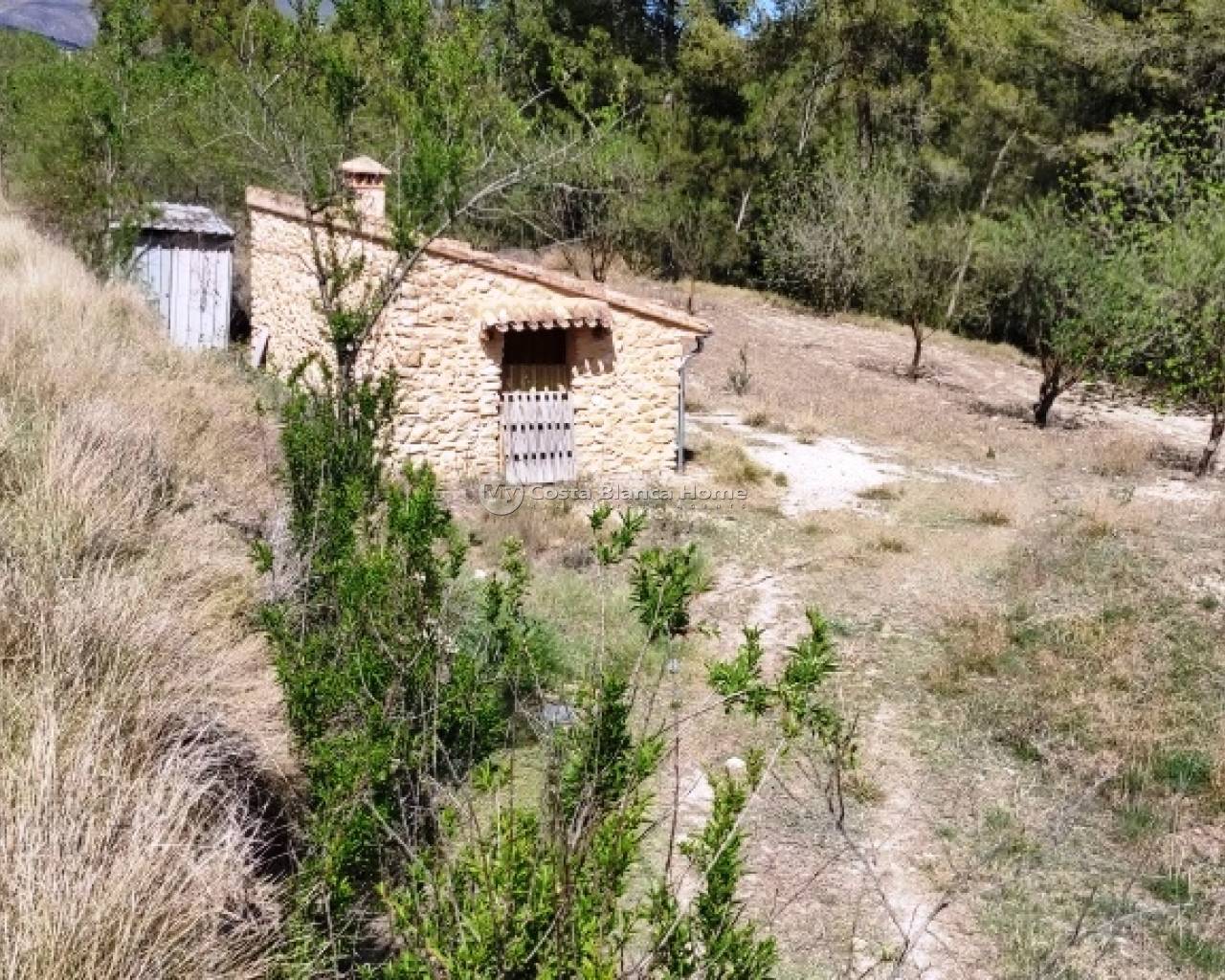 Rustic plot of land for sale in Penáguila, consisting of a generous plot of 59,883 m² with olive and almond trees. There is a cozy traditional casita with 30 m² currently used as storage, it's in very good condition. Nice sunny location with plenty of views and good access.