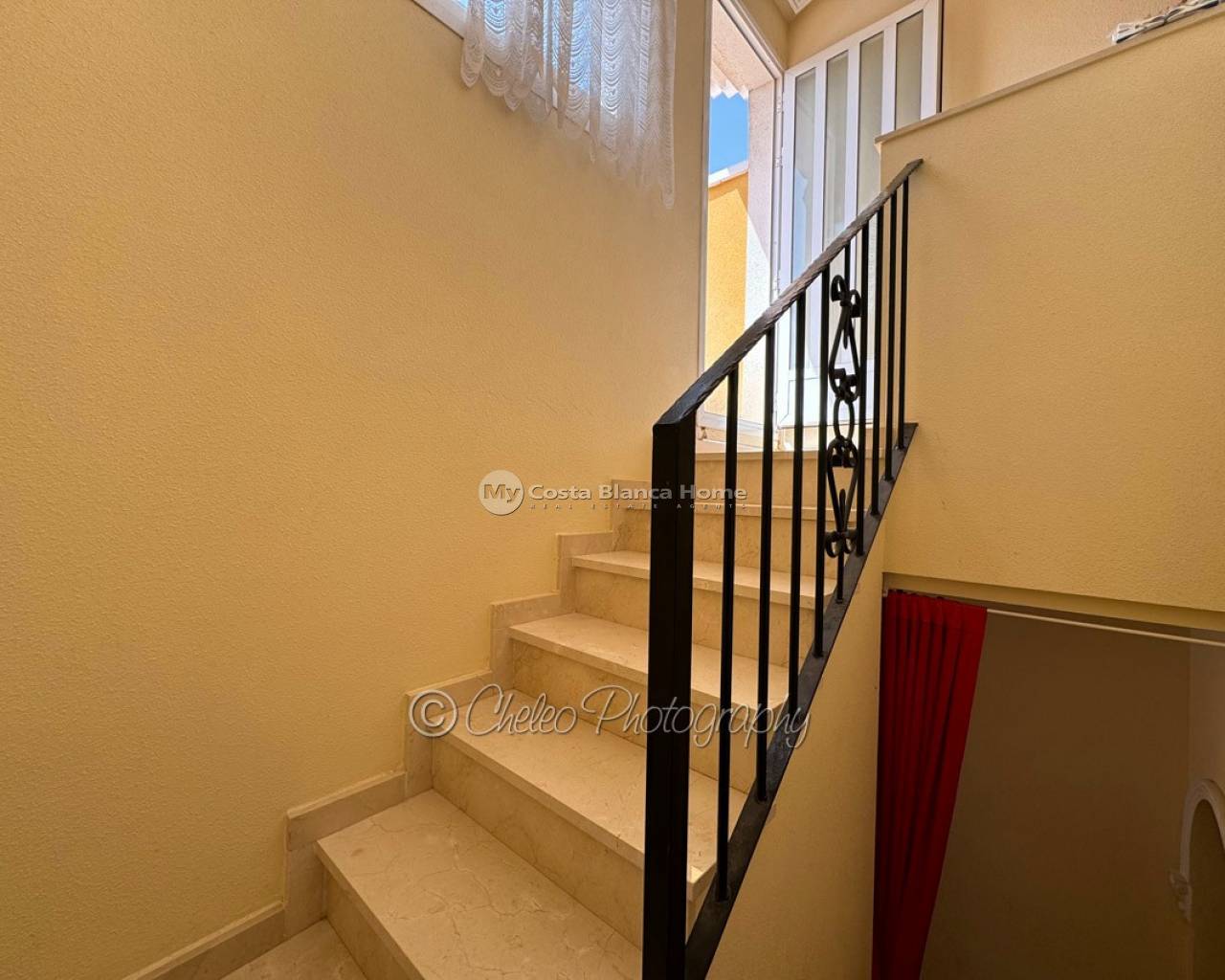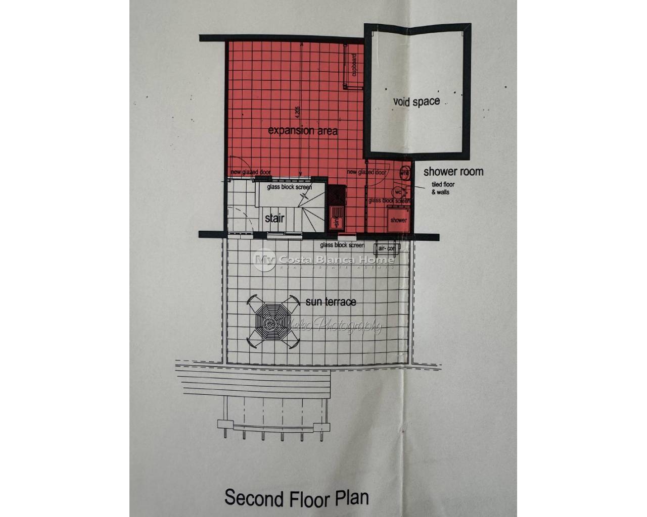 Well presented first floor, 2 bedroom apartment with the possibility to add a 3rd bedroom and bathroom on the upper floor. The main living area comprises of a lounge/diner with a small balcony, fully fitted kitchen, family bathroom, 2 double bedrooms with fitted wardrobes - one of which has a private wc. On the upper floor there is a large terrace offering fabulous countryside and mountain views.