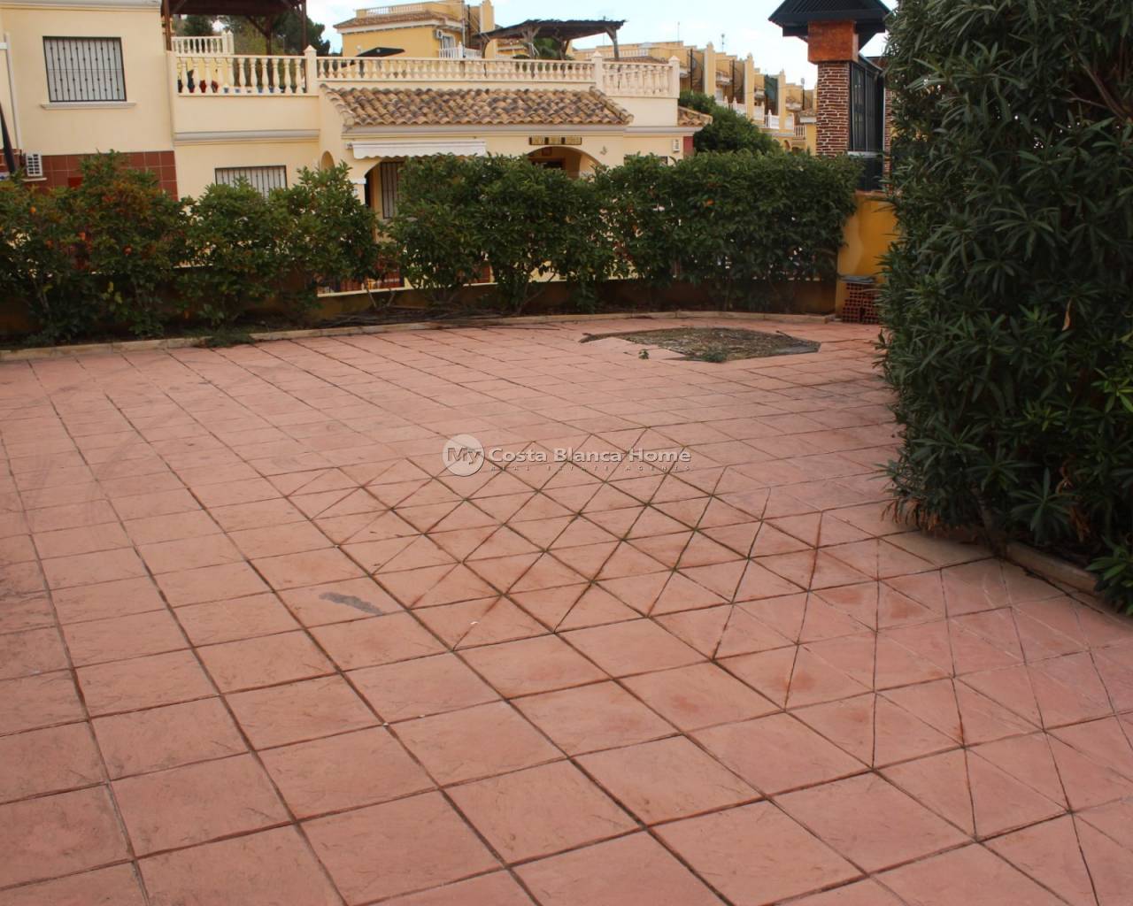 Semi-detached villa, perfectly positioned within the gated community of Urbanisation Montemar in Algorfa. This south-facing property features 3 bedrooms, 2 bathrooms, a private pool, and off-road parking, with access to a large communal pool too. Upon entering, you're welcomed by a spacious lounge/diner with a cozy fireplace, seamlessly flowing into a generously sized American kitchen. The ground floor also includes a double bedroom, a shower room, and an outdoor utility area. A staircase leads to a second double bedroom, a twin bedroom, and a family bathroom complete with a full-sized bath and overhead shower. All bedrooms benefit from fitted wardrobes. The first floor also has access to a generous solarium, offering panoramic views of the surrounding landscape. The ample garden space features a large private pool and terraced areas perfect for relaxation. The property is equipped with a natural gas water heater, air conditioning units in the lounge and all three bedrooms, and offers free view British satellite TV via the community dish. This property is conveniently located within a short 10-minute stroll to various bars, cafes, and restaurants, while the Spanish village of Algorfa and the renowned 18-hole Championship golf course of La Finca are merely a 5-minute drive away. Offered fully furnished, this property presents an ideal opportunity for either a holiday home or a permanent residence.
