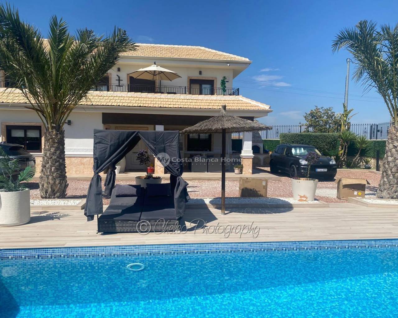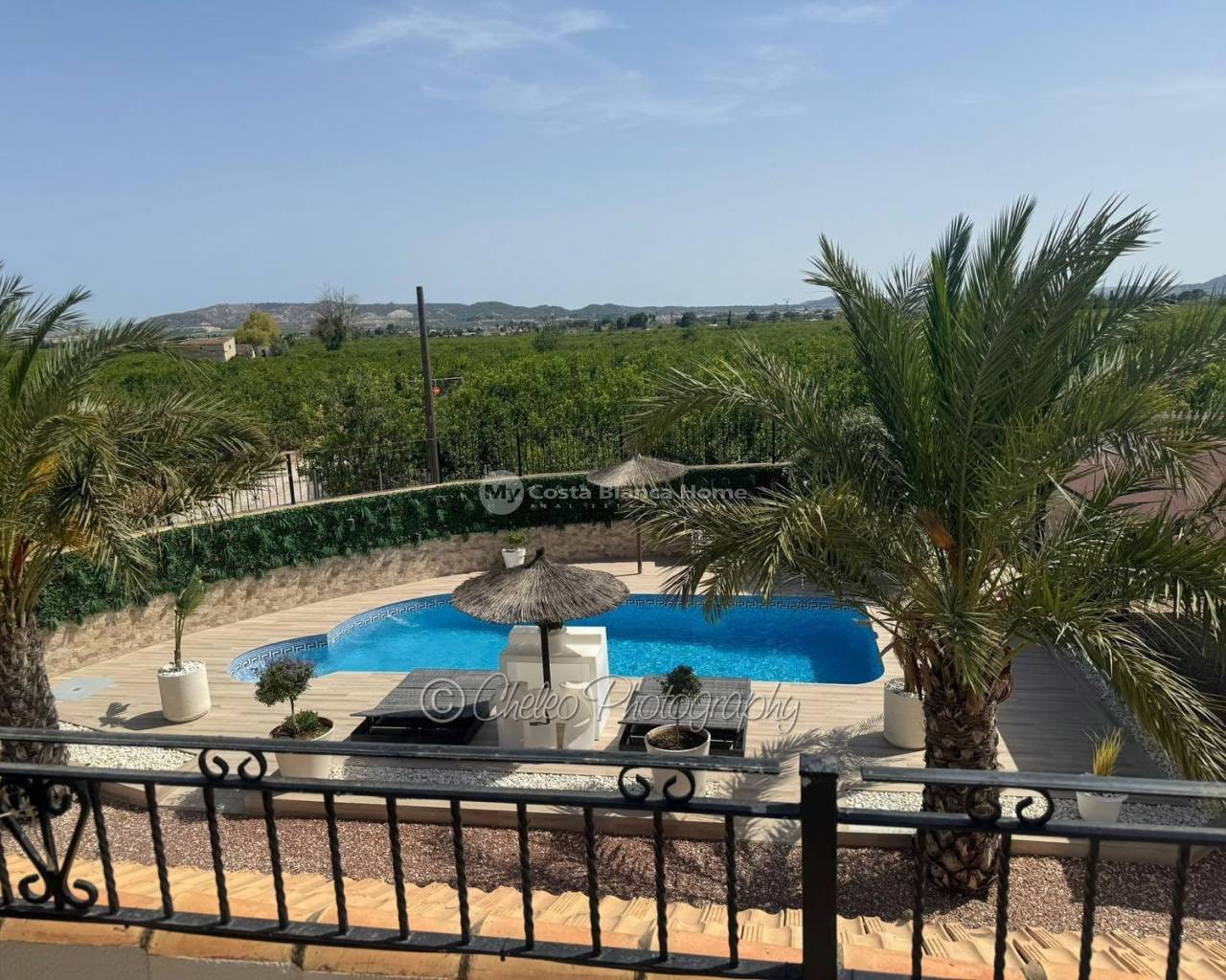 For sale this fantastic luxury villa in Rafal, a charming little Spanish village just 35 minutes from Alicante airport and 30 minutes from Murcia airport. Set among fruit tree plantations, this unique property ensures no further construction around it, offering complete privacy and stunning views of the Orihuela mountains.