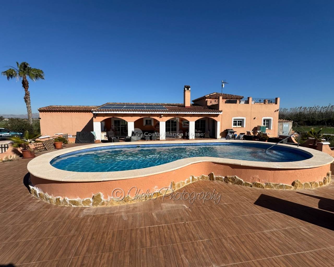 This lovely country property of 239m2 is set on a plot of approximately 6,500m2 situated in the countryside of Dolores, Costa Blanca. Comprising a spacious lounge with a fireplace and patio doors to the garden, fully fitted country kitchen with a breakfast bar and featuring fireplace, there is a utility room and kitchen preparation area plus a small snug area currently used as an office. The master bedroom is carpeted and features a large walk-in wardrobe with vast amounts of storage, plus an ensuite bathroom. There are 2 further double bedrooms plus a family shower room. Air conditioning is installed in most rooms and all the ceilings are vaulted with exposed beams.