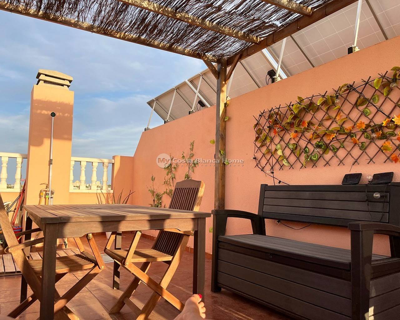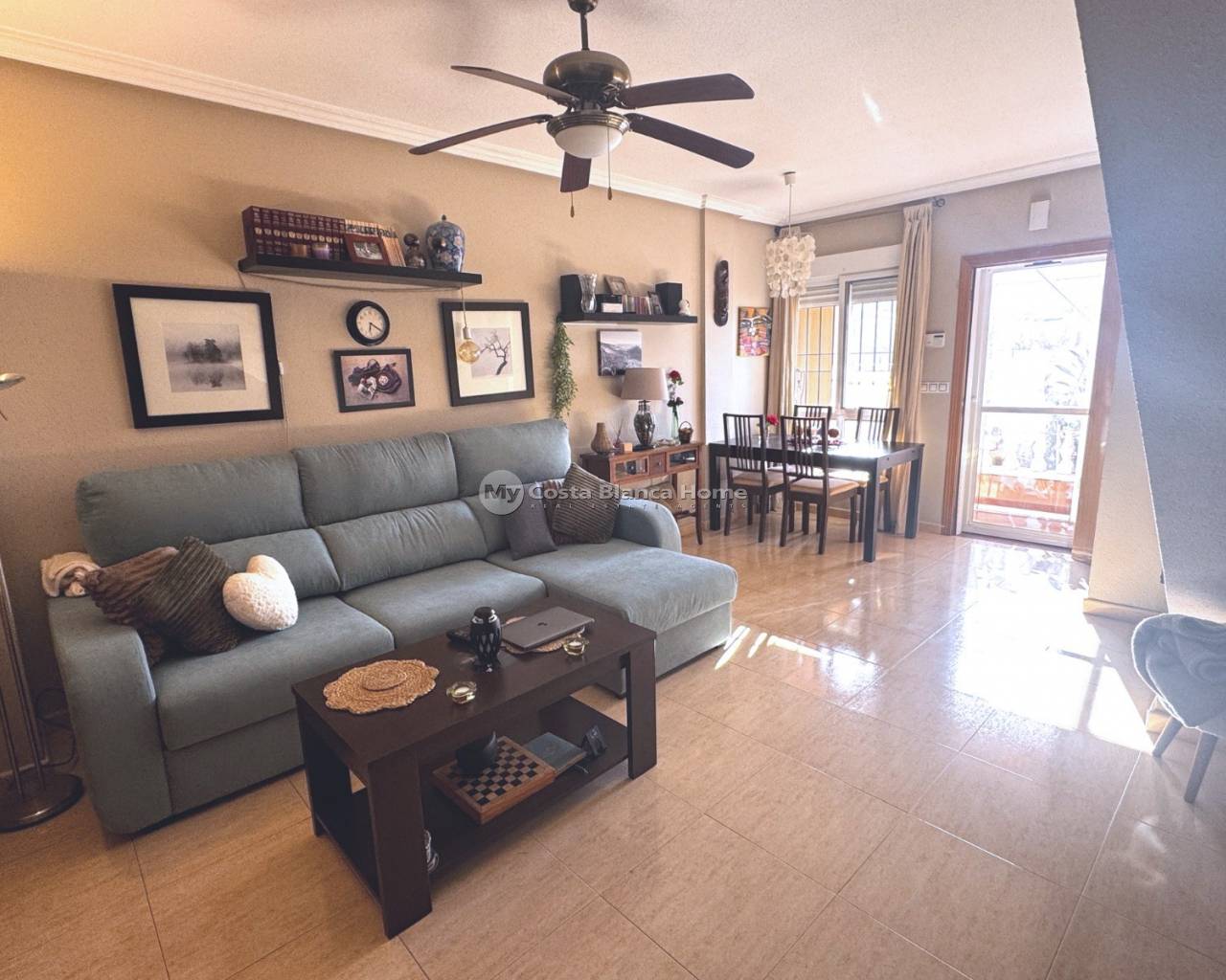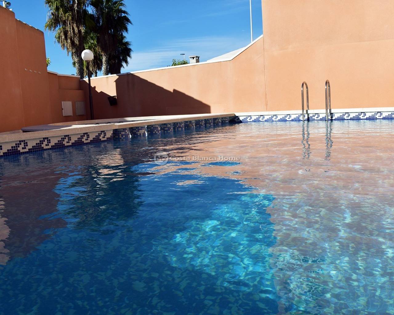 Semi-detached bungalow on the greenway overlooking the Pink Lagoon in Torrevieja. East-west facing. Located in a residential area consisting of 10 villas.