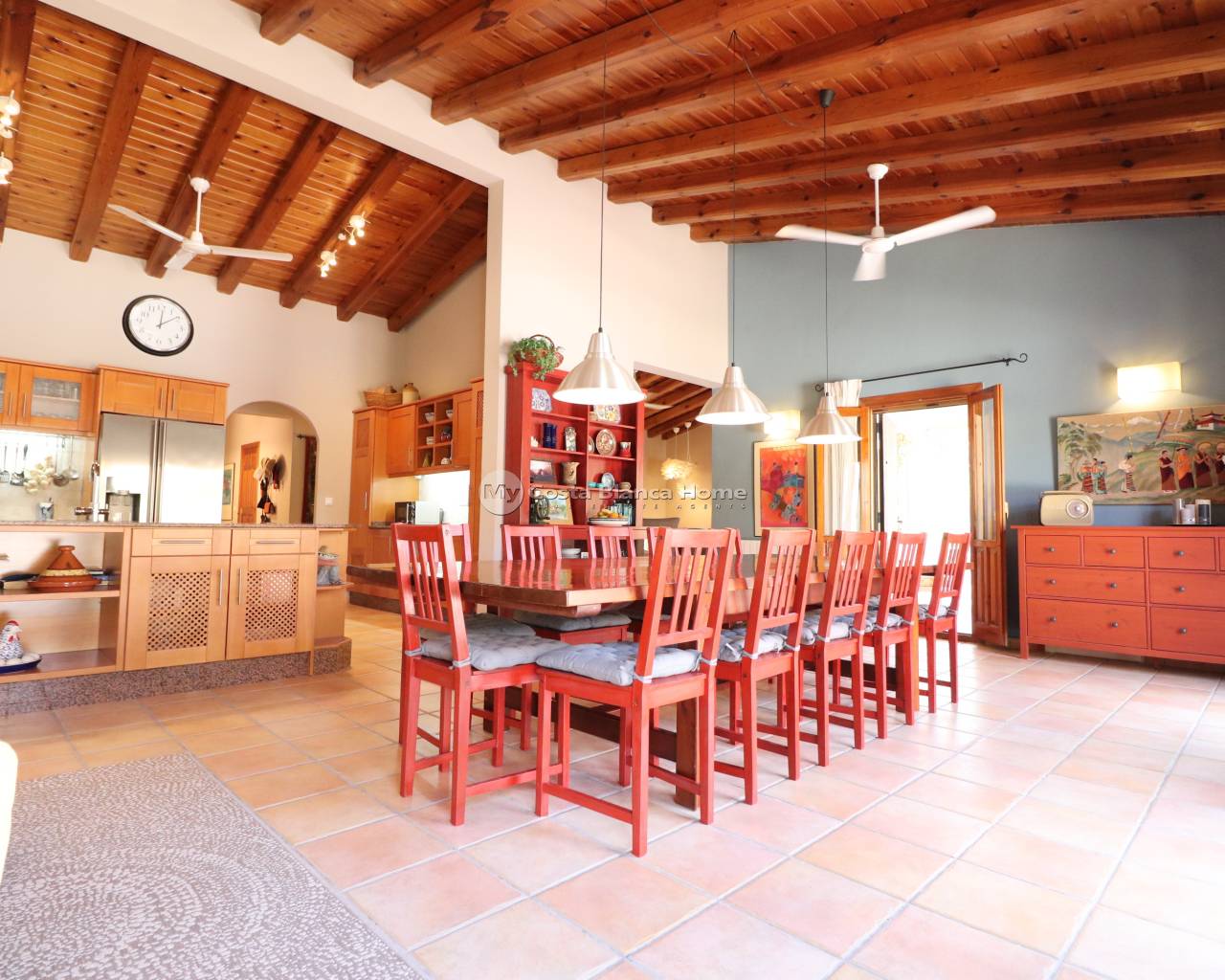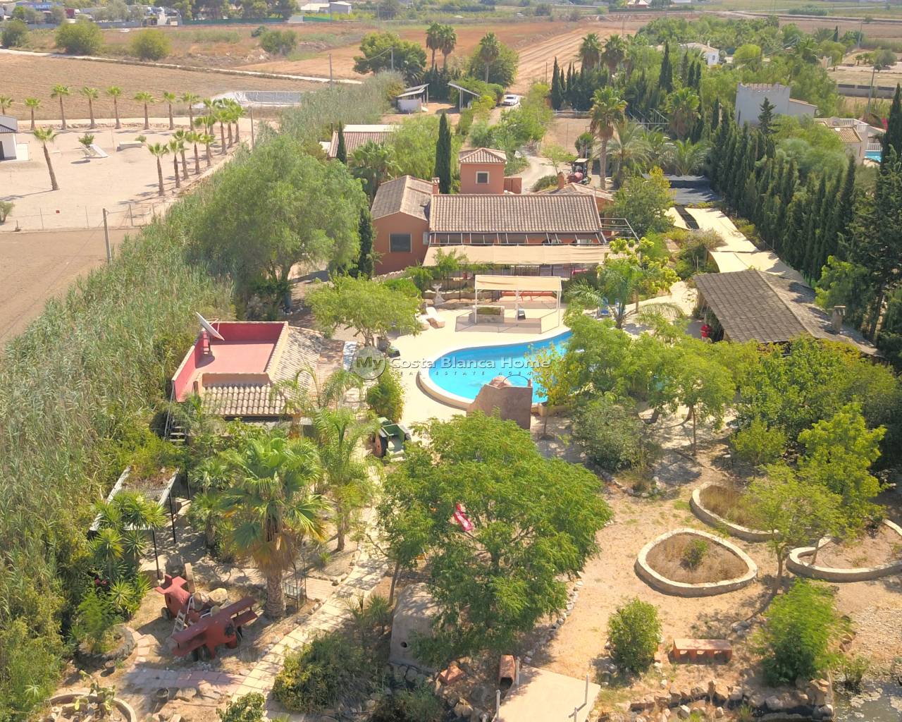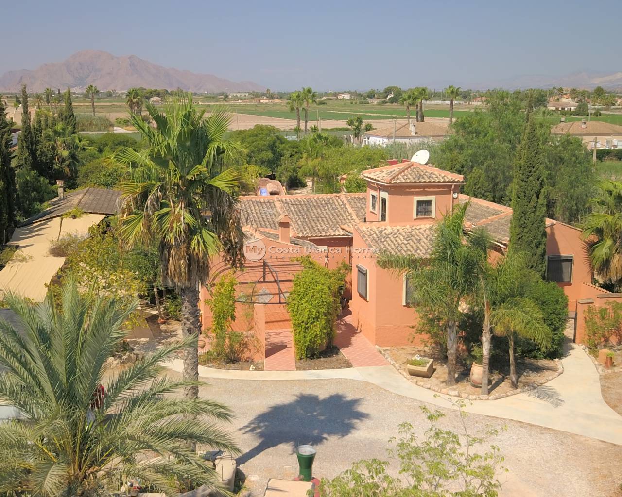 This Stunning, Architecturally Designed, Seven Bedroom Country Property in Catral is located in the tranquil Farming Community of the Vega Baja, near to Dolores. Within a 10 minute walk you can reach the nearby town of Dolores, where you can find all local amenities and facilities, whilst the beaches are aprox a 15-20 minute drive away! This mesmeric, quirky and completely unique property is full of character and tastefully presented, approached via a long driveway, flanked by beautiful Jacaranda trees. A Spacious property boasting desirable French style courtyard/entryway, exposed beams and vaulted ceilings, with double aspect windows throughout, providing a refreshing cross breeze in the warmer months. Comprising in the Main Villa of a beautiful entrance; hallway; family sized, open plan fully fitted kitchen, with feature peninsula and quality cupboards + white goods; dining room, perfect for hosting parties, benefiting from several double doors out to the conservatory and large open terrace/veranda; desirable living room, large, yet cosy; currently three bedrooms, the master with en suite bathroom; an office (or forth bedroom); separate annex bedroom on the first floor, accessed via a spiral staircase from the 2nd courtyard; a family shower room; and a cloakroom. From the veranda are great views over the private swimming pool, gardens, beyond to the mountains and countryside! The Annex comprises of a 2 bedroom villa, with their own shower rooms, one however also with kitchenette; plus a roof top solarium! There is a garage, which has been converted currently in to an art workshop, with kitchenette, shower room and mezzanine level. The Garden benefits from a Summer house with seating dining, outside kitchen, BBQ, pizza oven, 90m2 Private Pool + kids pool, with man made slide, pond, car port, 2 paddocks, possible stables, planted garden areas, work shed, petanque piste and more... Extras are to include awnings, storage space, air conditioning, central heating, boiler room, hay barn, grills, laminating glazing, septic tank, mains water and electric, conservatory and much much more... Simply Wow! Serious enquiries Only!