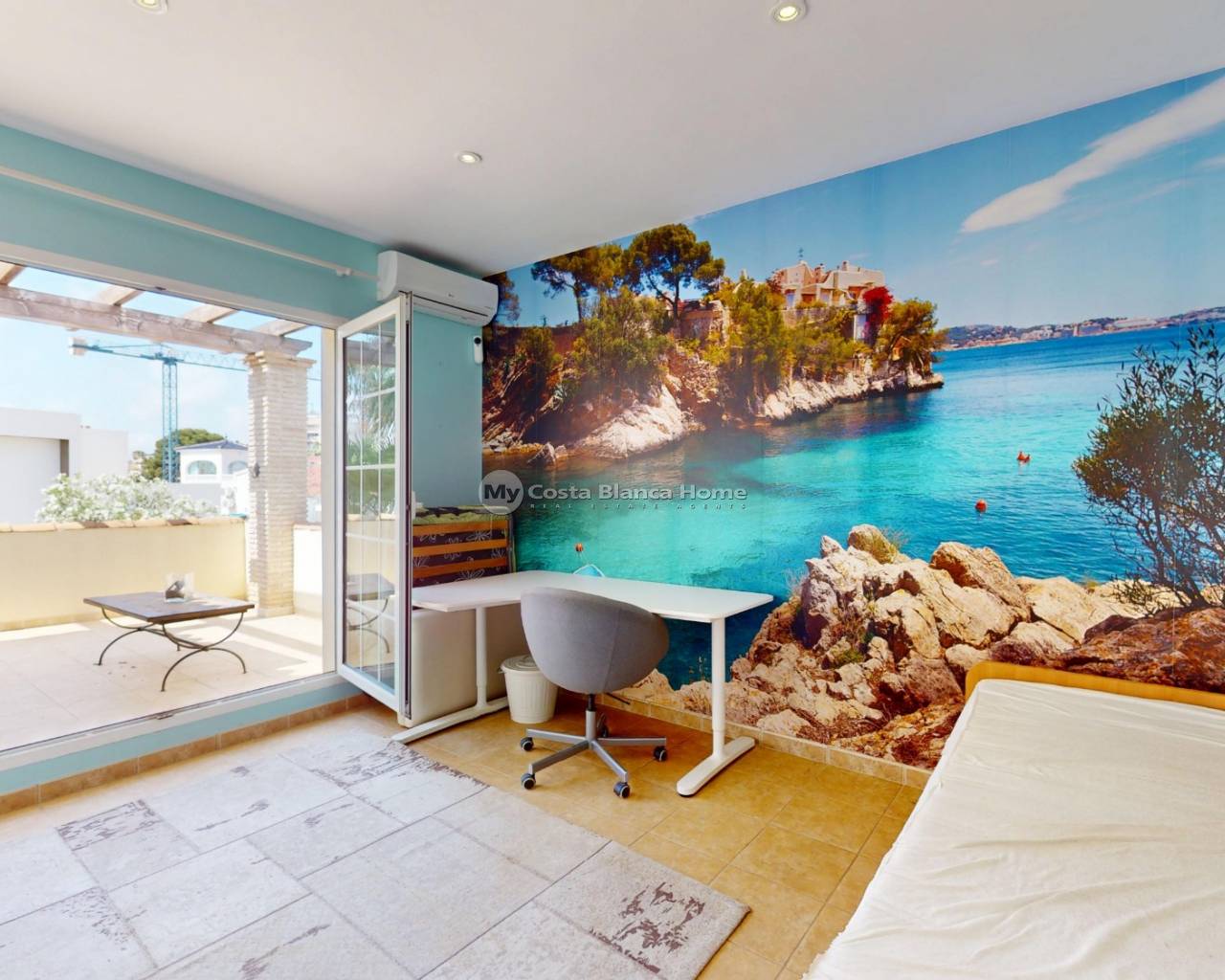 This spacious and move-in ready villa in Orihuela Costa offers everything needed for comfortable living on the Costa Blanca. The property features five full-sized bedrooms and three complete bathrooms, including a luxurious bathroom with jacuzzi. Spread over multiple levels, the villa offers bright, open living spaces, a fully equipped kitchen, and several lounge areas.