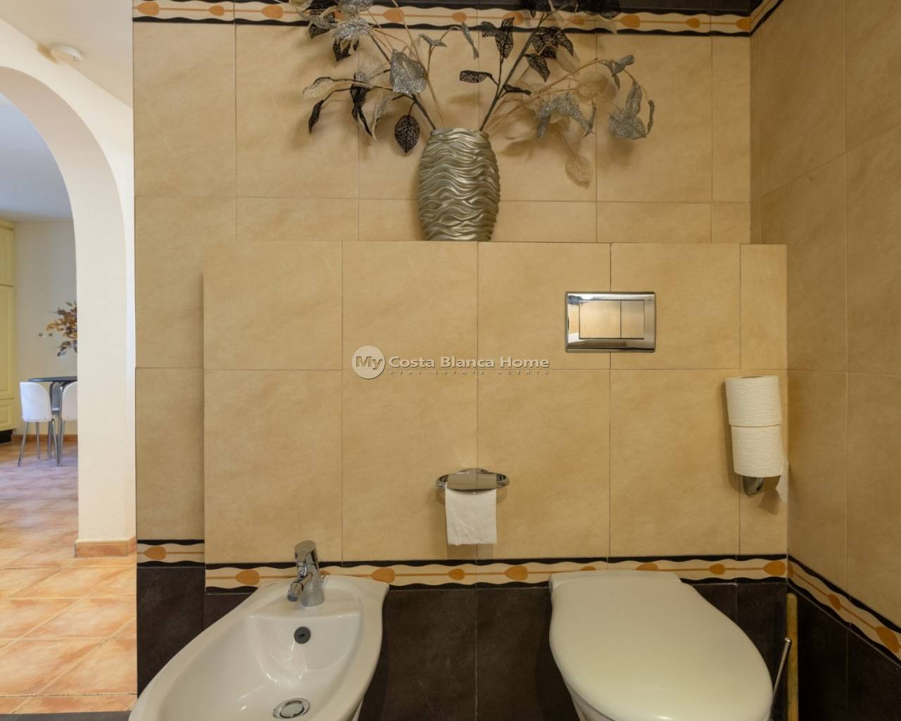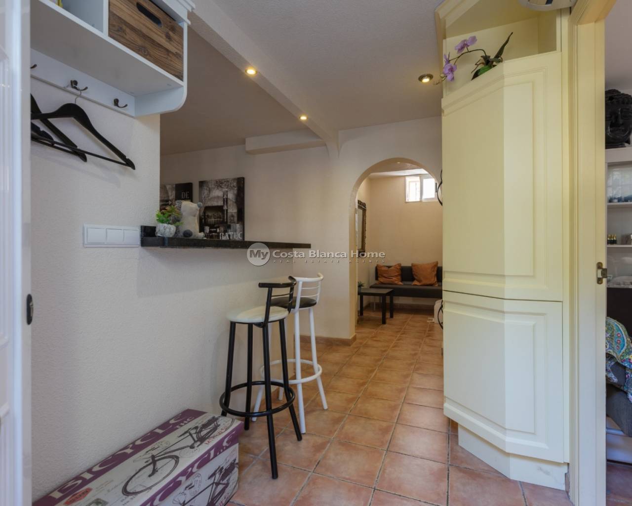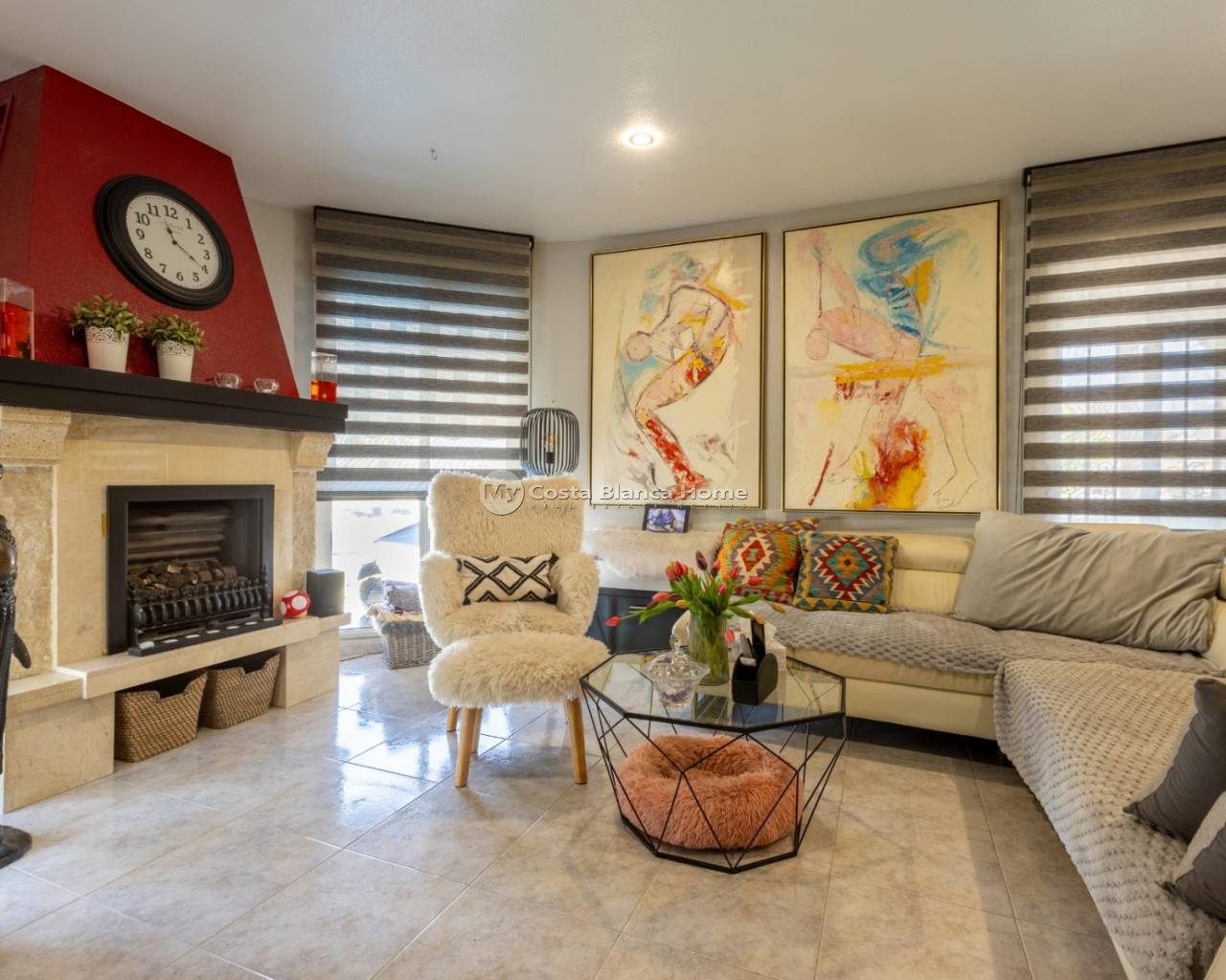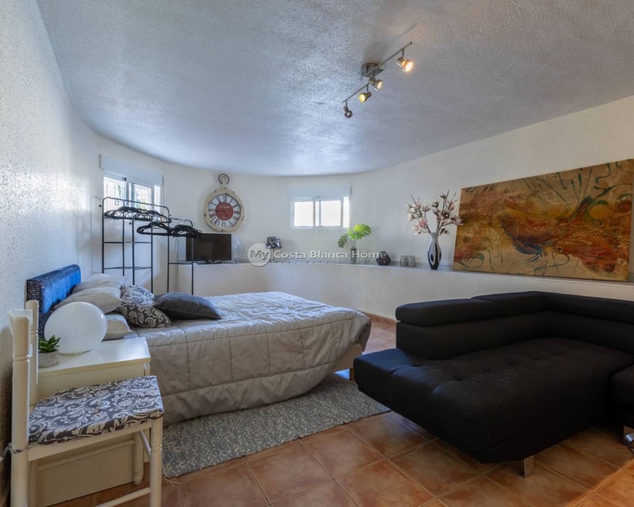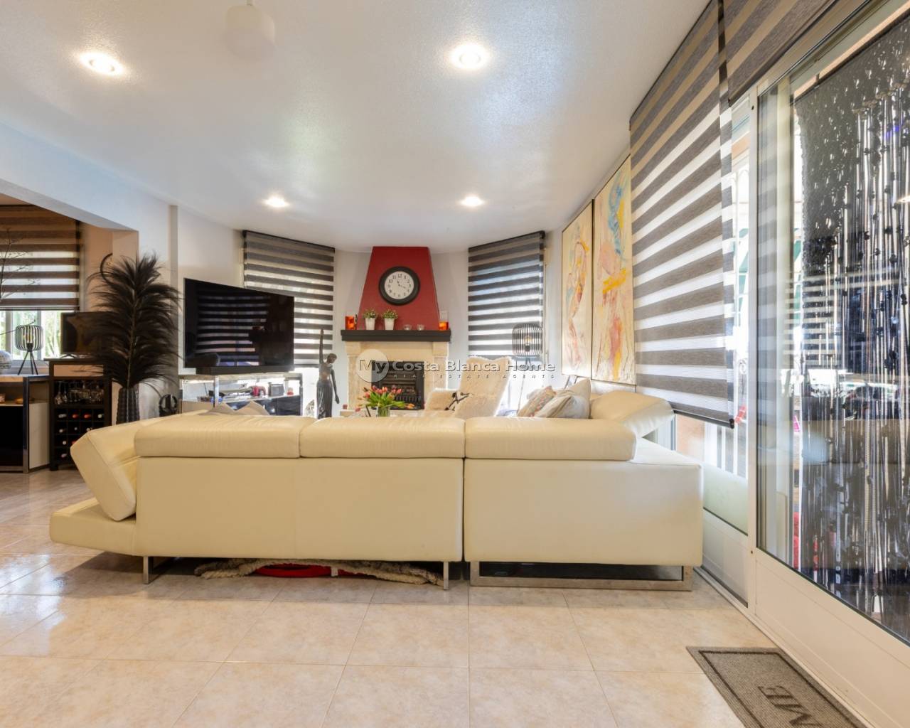 New in our offer: a spacious and comfortable villa at walking distance from the center of Benijófar. This beautiful detached house offers you everything for a relaxing life under the Spanish sun. Located on a generous plot of 500 m², this villa features 5 bedrooms, 3 bathrooms, a private heated pool, solar panels, an outdoor kitchen and many more luxury amenities. Enjoy the Mediterranean garden Upon arrival, you enter through the gateway into the beautifully landscaped garden, where a sense of tranquility and privacy immediately prevails. The garden is planted with palm trees, yuccas, strelitzias and various cacti, and offers several terraces and seating areas to enjoy the Mediterranean climate. Central to the garden is the heated 8 x 4 meter pool, perfect for a refreshing dip in any season. The fully equipped, covered outdoor kitchen with ceramic hob, fridge and dishwasher completes the outdoor living. There is also a spacious carport for your car and a separate shed with the provisions for garden lighting and electricity. Living with comfort and space An outside staircase leads to the elevated terrace with unobstructed views. The front door opens into a spacious, bright living room with a fireplace and a pellet stove. Thanks to the large sliding doors and multiple windows, there is plenty of natural light coming in. The underfloor heating ensures comfortable living here all year round. Adjacent to the living room you will find a cozy dining room and a modern open kitchen with cooking island and built-in appliances. Here you have all the space for cooking and cozy dining. Through the hall you reach two spacious bedrooms, both with fitted wardrobes. The first bathroom has a walk-in shower, toilet and washbasin cabinet. The second bathroom offers a bathtub, toilet and also a modern bathroom cabinet. Fully independent guesthouse or additional living space The first floor is accessible both by a fixed staircase inside the house and by a separate outside door. This floor is set up as an independent living area and ideal as guest accommodation or for larger families. Here you will find a second, fully equipped kitchen with dining area, three spacious bedrooms, a bathroom with whirlpool tub, walk-in shower and toilet, and a separate storage room. Location and amenities The property is located in a quiet area of Benijófar, within walking distance of all necessary amenities such as stores, supermarkets, restaurants and cafes. Nearby you will find beautiful beaches such as Playa de la Mata (9 km) and Playa de los Náufragos (11 km), and there are excellent connections via bus, cab, highways and provincial roads. Care and convenience are also considered: the hospital of Torrevieja is just 12 km away, while the airports of Alicante (35 km) and Murcia (48 km) are easily accessible. Characteristics: Living area: 185 m² Plot size: 500 m² 5 bedrooms | 3 bathrooms Private heated swimming pool (8 x 4 meters) Fully equipped outdoor kitchen Two kitchens (upstairs and downstairs) Underfloor heating, air conditioning, fireplace, pellet stove Solar panels for electricity and hot water Private parking / carport with electrically operated entrance gate Built in 1999 South and east facing location IBI: only €21 per month Are you looking for a spacious, ready to move in villa in the sunny south of Spain, with all the comforts for permanent living or vacation rentals? Then contact us soon for a viewing of this unique property in Benijófar!