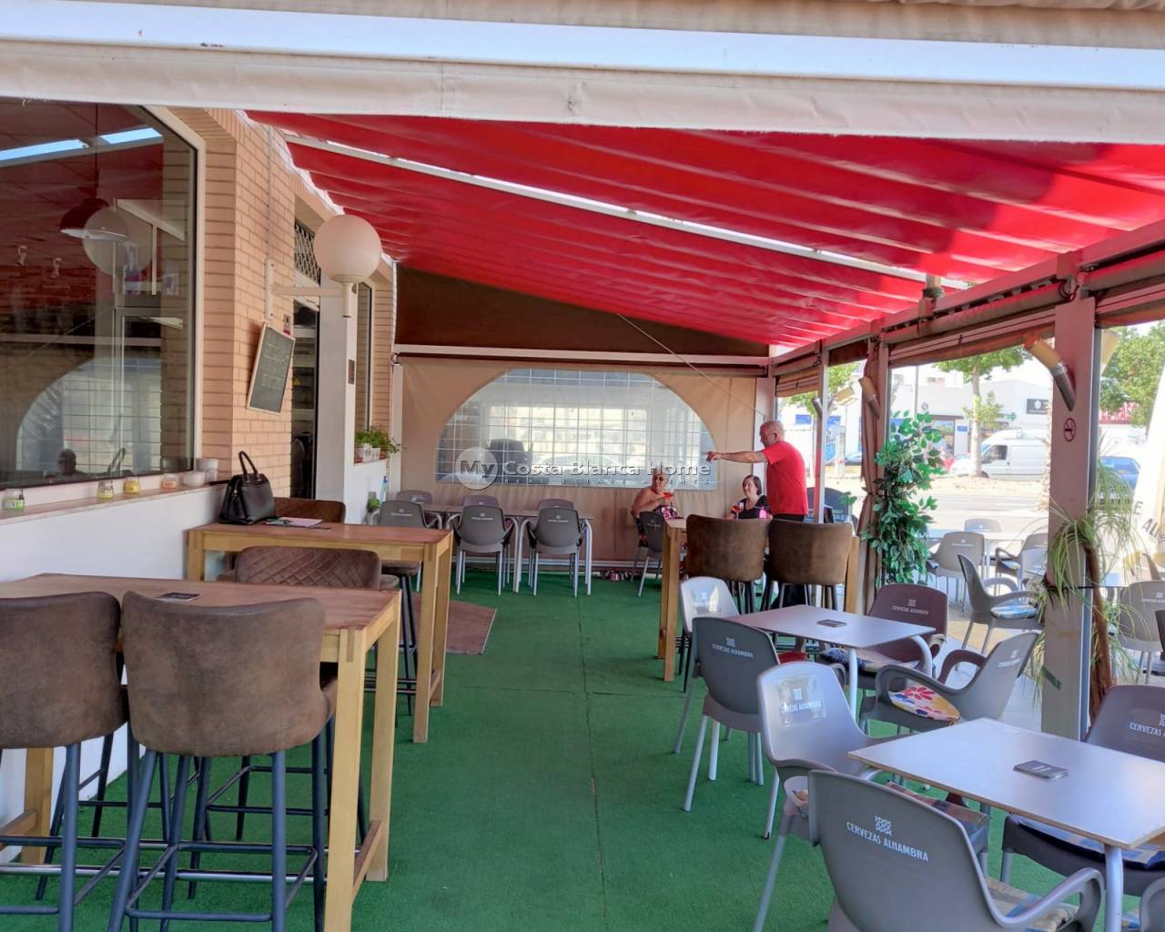 Two commercial units currently used as a successful bar located on El Raso with sitting tenants. There is a good size, fully fitted professional kitchen, 2 client bathrooms (male and female), a large bar area with ample room for a pool table and space for 48 covers inside in this area of 95m2. Outside is a large terrace with sun awnings and seating for a minimum of 30 covers and plenty of car parking space for clients.