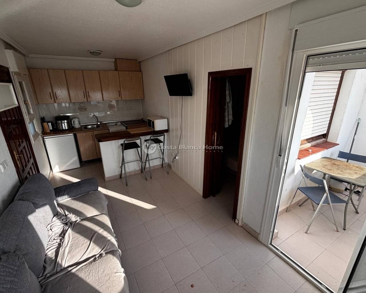 Here we have this fantastic little 1 bed apartment with amazing views from the private balcony towards the sea lakes and community pool. This small development in Quesada is only a short walk from some local amenities. Great first time buy in spain just needs some updating and your ready to enjoy.