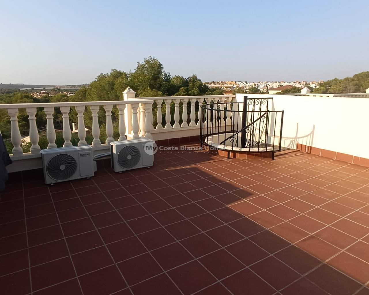 A spiral staircase leads you to the large private solarium. Here there is a newly built gazebo that is perfect for adding shade during those hot afternoons.