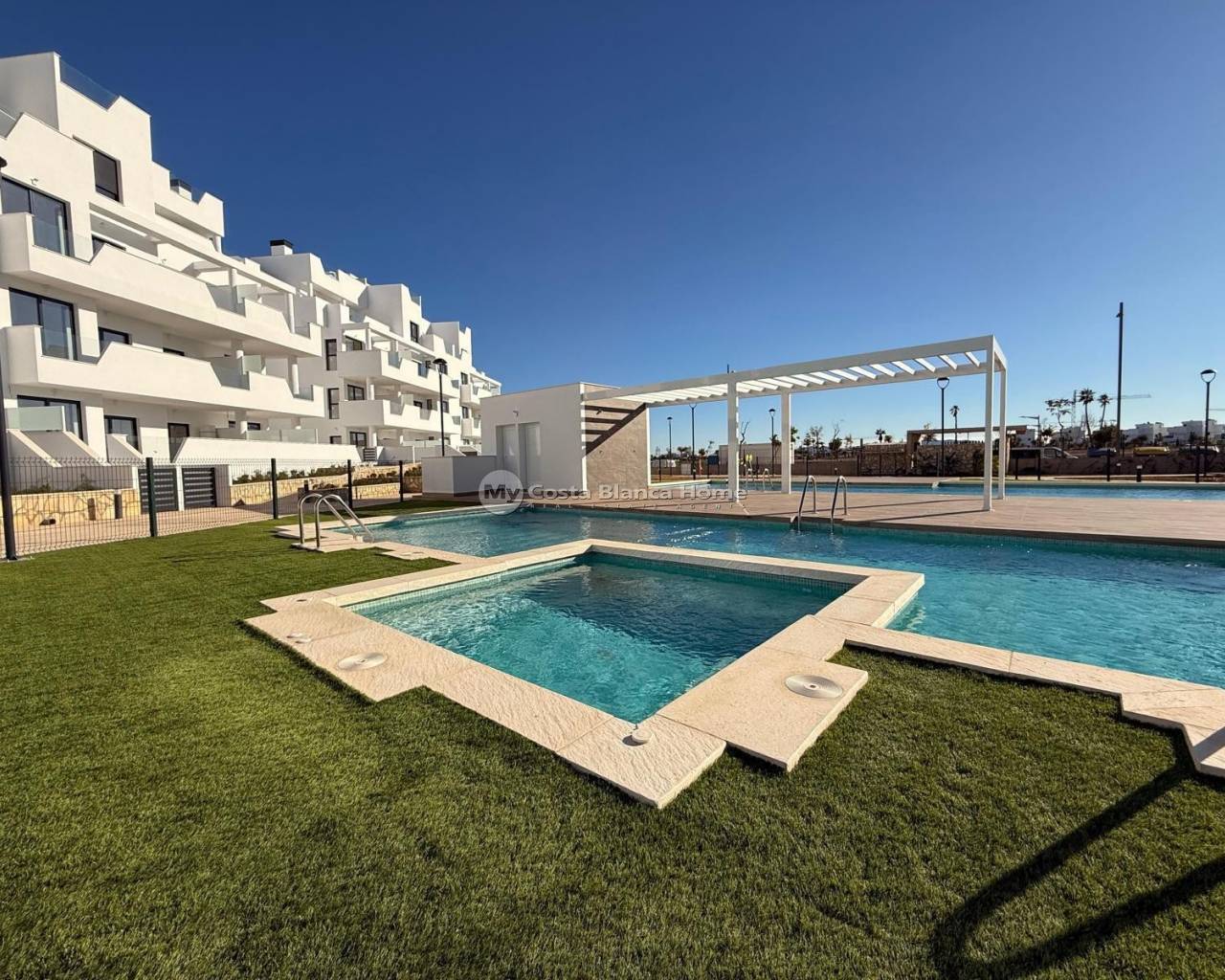 Fully Furnished 2-Bedroom Apartment in Santa Rosalia Lake and Life Resort – Modern Living in a Thriving Community Step into this beautifully furnished, move-in-ready 2-bedroom, 2-bathroom apartment located in the heart of the vibrant Santa Rosalia Lake and Life Resort – one of the most exciting and fast-growing lifestyle destinations in the region. Whether you're looking for a holiday retreat, a permanent home, or a smart investment opportunity, this property ticks all the boxes. This modern, west-facing apartment is filled with natural light and offers a spacious, open-plan layout. The living and dining area seamlessly connects to a fully equipped kitchen and opens out to a large private terrace – ideal for enjoying sunset views over the pool and landscaped gardens. Air conditioning throughout ensures comfort in every season. The master bedroom features a private en-suite bathroom, while the second bedroom is spacious and located next to a sleek, modern guest bathroom. Both bedrooms are tastefully furnished, with plenty of storage and thoughtful design details. Set in a secure, gated resort built around a stunning crystal-clear lagoon, Santa Rosalia offers an exceptional lifestyle with amenities like beach clubs, water sports, walking trails, restaurants, and more – all just steps from your door. With its prime location, high rental potential, and fully furnished convenience, this apartment offers a hassle-free way to enjoy or invest in one of the most desirable communities in the area.