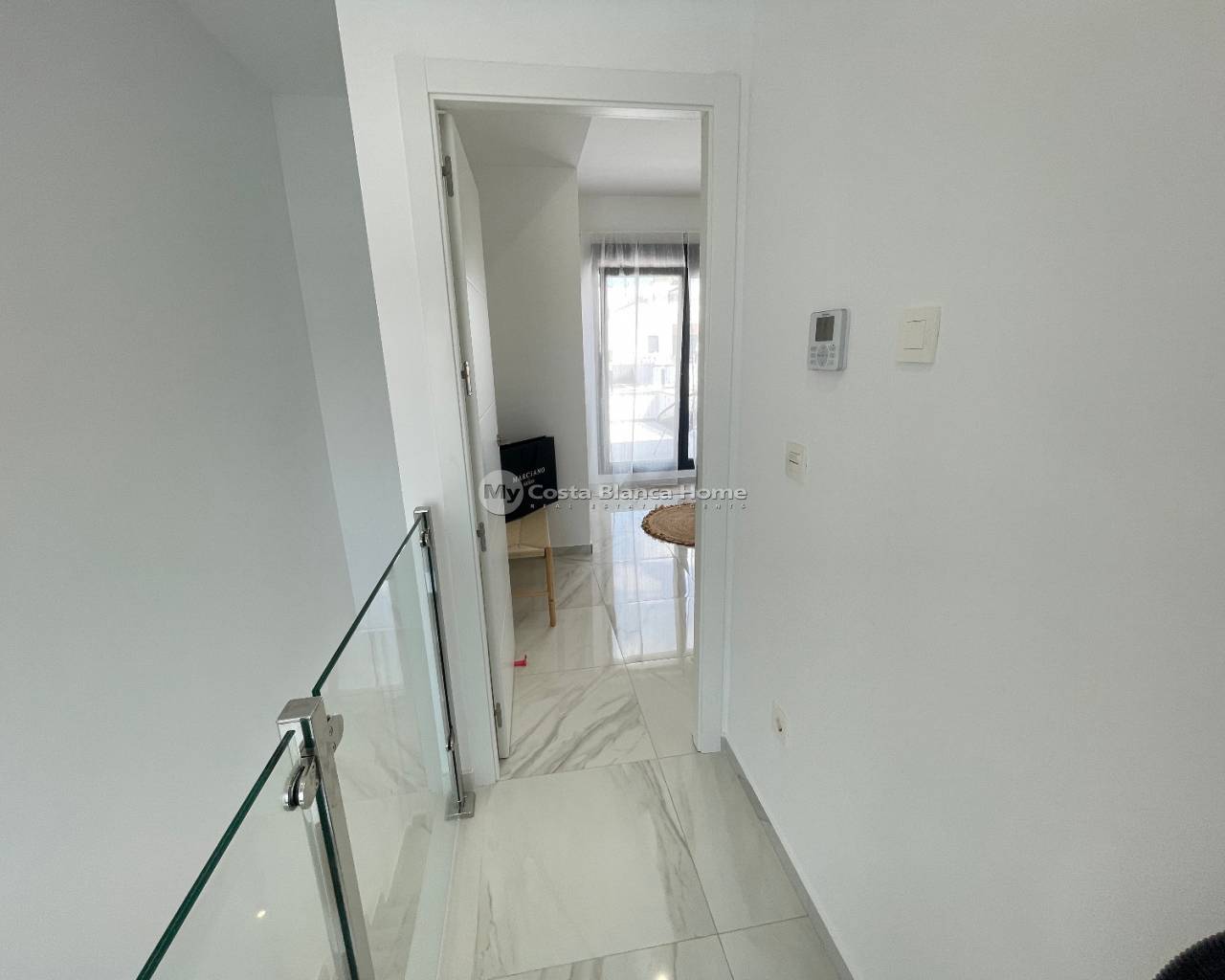 This stunning villa is in perfect condition and offers a contemporary design that prioritizes comfort and style. The open-concept living and dining area, along with a modern kitchen, creates a welcoming space that's ideal for both everyday living and entertaining guests.On the ground floor, you'll find a spacious bedroom with built-in wardrobes, accompanied by a full bathroom for added convenience. Upstairs, a charming landing leads out to a small terrace, an ideal spot to enjoy your morning coffee or relax in peace.The second bedroom is generously sized and comes with its own elegant en-suite bathroom. At the end of the hallway, the master bedroom provides a luxurious retreat, complete with an en-suite bathroom and direct access to a private terrace. This sun-filled space is perfect for unwinding and soaking up the beautiful Mediterranean climate.The villa is equipped with air conditioning and is move-in ready, ensuring you can enjoy comfort and quality from day one.Nestled in the heart of the Costa Blanca, Benijófar is a charming and well-connected town in the province of Alicante. With its laid-back Mediterranean atmosphere, Benijófar strikes the perfect balance between traditional Spanish character and modern amenities. Just a short drive from the stunning beaches of Guardamar and Torrevieja, and with all essential services—such as supermarkets, restaurants, cafés, and pharmacies—within walking distance, it's an ideal destination for both year-round living and holiday getaways.