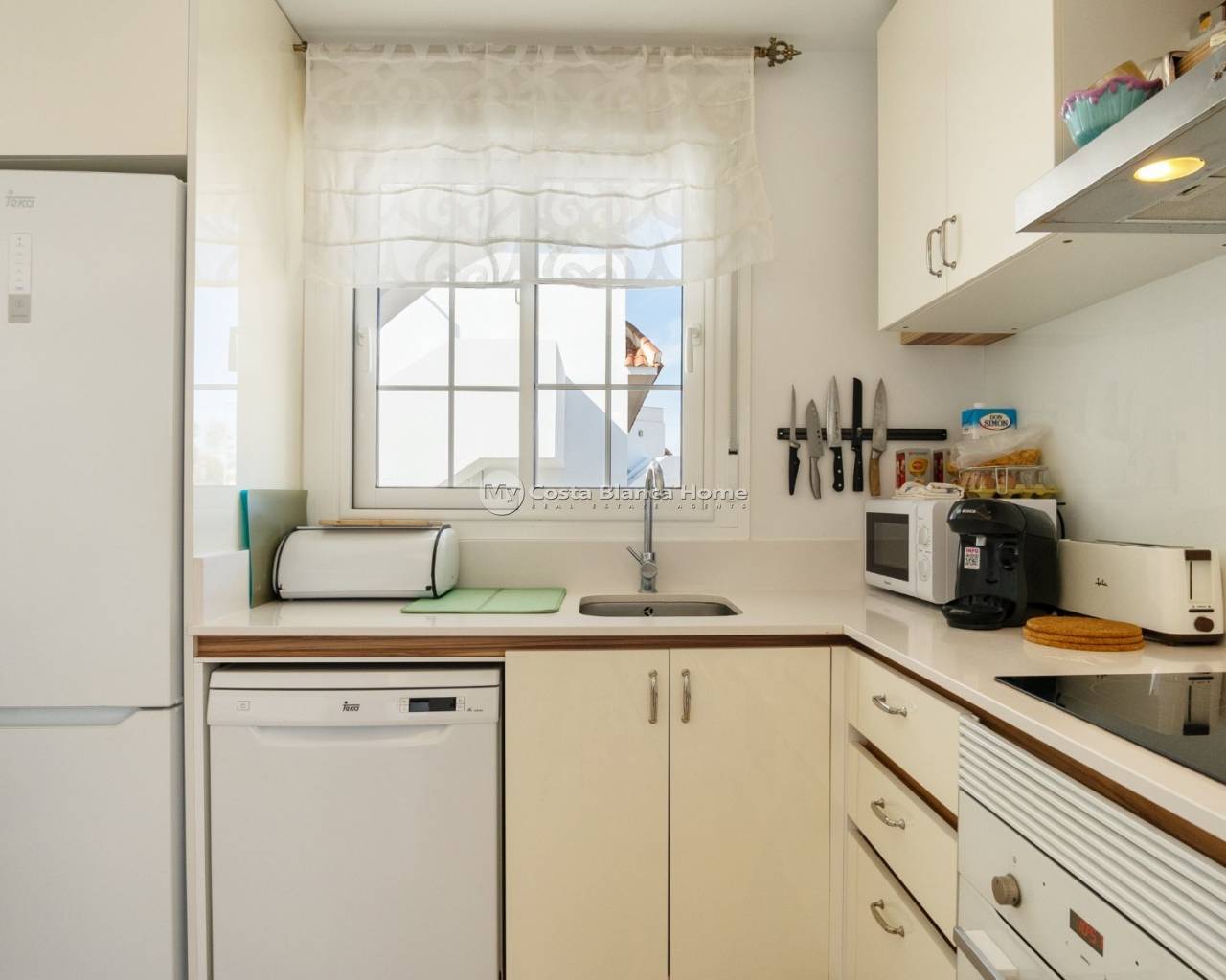Discover the allure of penthouse living with this delightful two-bedroom, two-bathroom residence boasting 85 square meters of comfortable living space.Nestled near the heart of Ciudad Quesada, this property offers a cozy retreat with all the essentials for a relaxed lifestyle.Upon entering, you'll be greeted by an inviting open-plan layout seamlessly connecting the kitchen, living, and dining areas.The kitchen features modern appliances and overlooks the welcoming living space, ideal for casual gatherings or quiet evenings at home.Step outside onto the spacious terrace and soak in the picturesque views of the pool and surrounding area, including stunning sunsets that paint the sky in hues of orange and pink.This outdoor space is perfect for enjoying leisurely meals or simply unwinding with a good book in the fresh air.Ascend to the expansive private roof terrace, where you'll find multiple seating areas offering a serene setting for outdoor relaxation.A mounted pergola provides shade on sunny days, while an outdoor kitchen with a barbecue allows for casual outdoor dining with friends and family.Residents of this charming community have access to beautiful communal areas featuring palm trees, a refreshing swimming pool, and lush greenery, creating a peaceful environment for leisurely strolls or afternoon swims.There is private parking outside the apartment and the beautiful beaches of Guardamar del Segura are a quick 10 minute drive away.This penthouse is sold fully furnished, ready to move right into, whether you're looking for a permanent residence or a holiday getaway.Located just a short stroll from restaurants, amenities, and shops, this property offers convenience without sacrificing tranquility.Don't miss out on this opportunity to own a piece of paradise in Ciudad Quesada.Contact us today to schedule a viewing and experience the charm of penthouse living on the Costa Blanca
