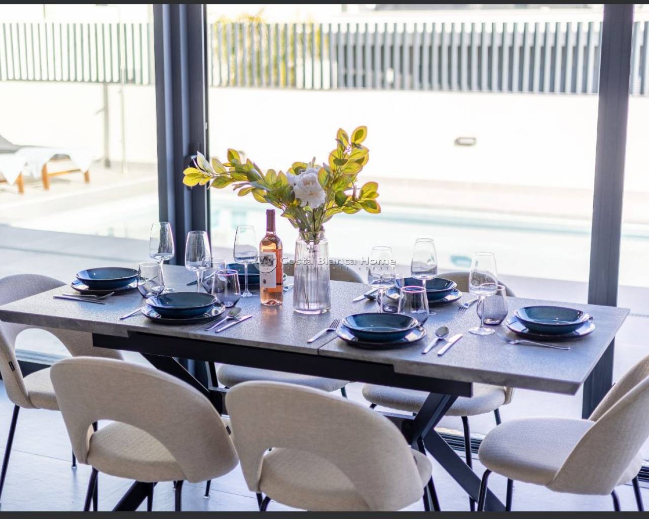 For sale: Very Modern style villa with a spacious internal area of 150m2, located in the sought-after La Finca Golf area of Algorfa. This property offers three comfortable bedrooms and two modern bathrooms, making it ideal for families or those seeking extra space. The villa is unfurnished, giving you the perfect opportunity to design your dream home. Enjoy year-round comfort with a central air conditioning system. Step outside to your own private swimming pool, perfect for relaxing or entertaining guests. The home is close to local amenities, including shops, restaurants, and services, providing everything you need just a short distance away. Extra's include: electric shutters, alarm, private pool, electric gate, garage Algorfa, particularly the La Finca Golf area, is well-known for its tranquil surroundings, beautiful landscapes, and high-quality golf course. The region is popular with residents who value peace and outdoor activities while still wishing to remain close to vibrant towns and beaches. This villa is proudly offered for sale by Orange Casas. Do not miss your chance to enjoy the fantastic lifestyle that La Finca Golf offers. Contact us today for more information or to arrange a viewing.