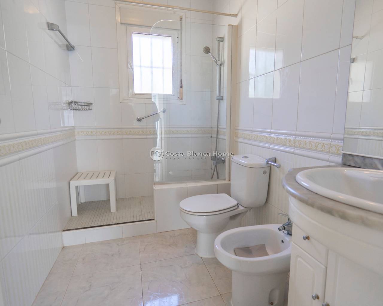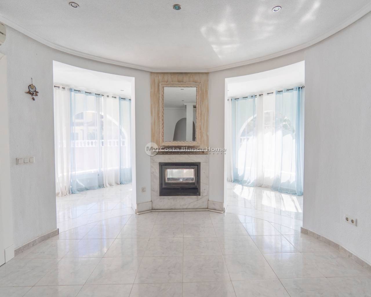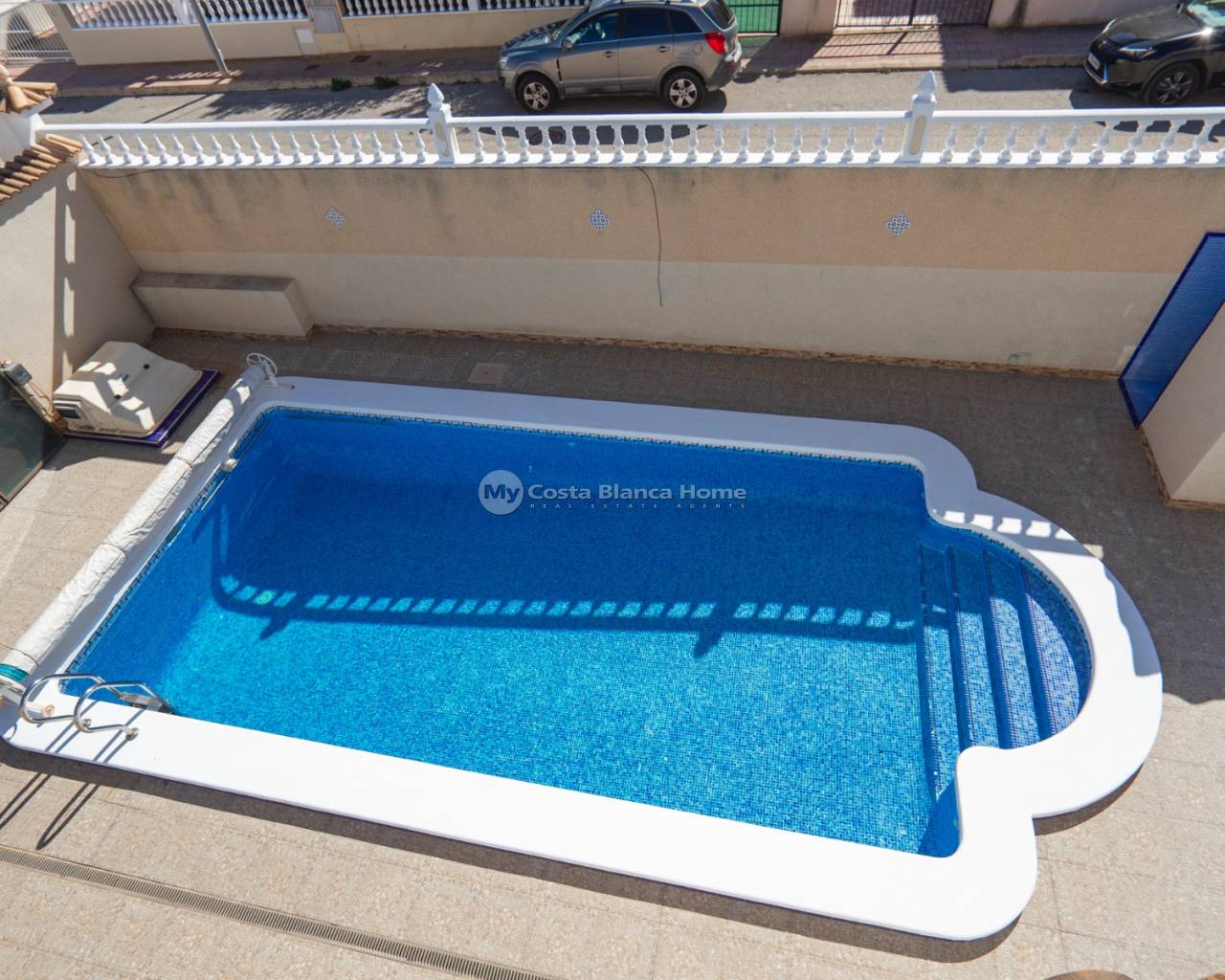 VILLA IN A PEACEFUL RESIDENTIAL STREET IN CIUDAD QUESADA If you're searching for a tranquil home with charming outdoor spaces and bright, sunny interiors, this villa could be your perfect match. This three-bedroom villa is set on a generously sized plot and features an 8x4m pool. The outdoor area is beautifully maintained with tiled surfaces for low-maintenance living. The pool is equipped with its own solar panels, allowing it to be heated for free, ensuring year-round enjoyment. Inside, the villa has been thoughtfully renovated to incorporate what was once an external terrace, adding unique character to the space. The curved wall of windows floods the living area with natural light, creating a warm and inviting atmosphere. A double-sided fireplace adds coziness in the winter, while air conditioning keeps the space cool in the summer months. The spacious kitchen is located off the living room, and there are three comfortable bedrooms on this level, each featuring fitted wardrobes. One of the bedrooms has an en-suite bathroom. A family bathroom completes the accommodation on this floor. A spiral staircase leads to the fourth bedroom, which has an oval shape and two sets of patio doors, making it a sun-filled and bright room. These doors open onto a large wrap-around terrace with stunning views of the sea and salt lakes. This property is situated on the edge of El Recorral Natural Park, offering plenty of opportunities for dog walking or simply enjoying nature. The location is perfectly peaceful, yet it is only a short drive from the bustling high street of Ciudad Quesada and the La Marquesa Golf Course. Ciudad Quesada is a highly sought-after area for international buyers on the Costa Blanca South. Founded in the 1970s by local entrepreneur Justo Quesada, the town has grown into a vibrant community with a lively high street filled with shops, bars, restaurants, and its very own town hall. The town also boasts a golf course, La Marquesa, and is home to people from all over the world, with English and Norwegian schools available. Located just ten minutes from the golden sandy beaches of Guardamar Del Segura and only 30 minutes from Alicante airport, the location offers the best of both worlds. The beach town of Torrevieja is just a 15-minute drive away, and the beaches of Orihuela Costa are just a few minutes more. The popular Zenia Boulevard shopping centre is also within easy reach. Don't miss the chance to view this lovely property—contact us today to schedule your visit.