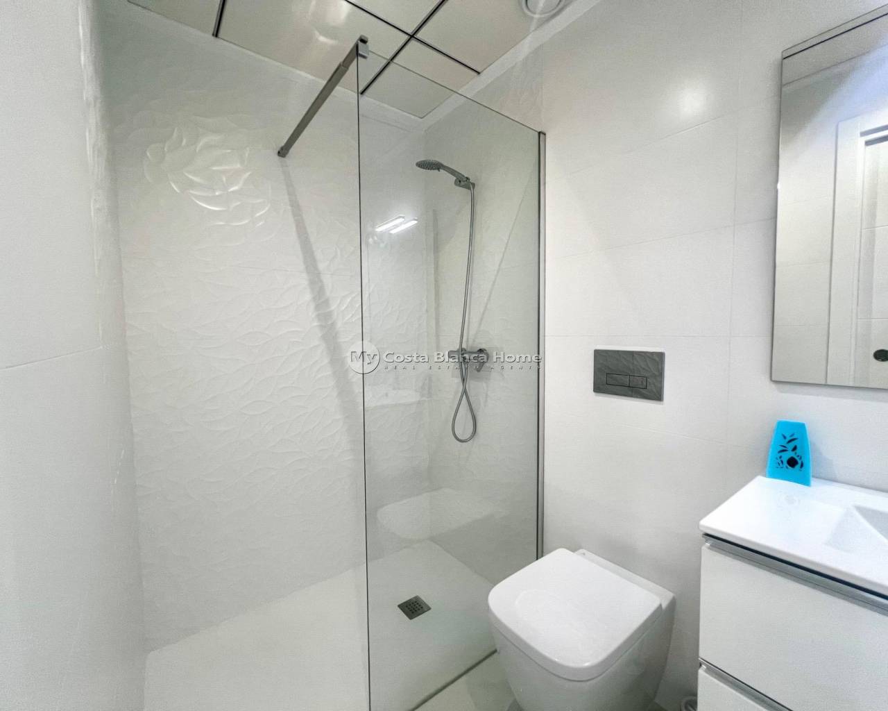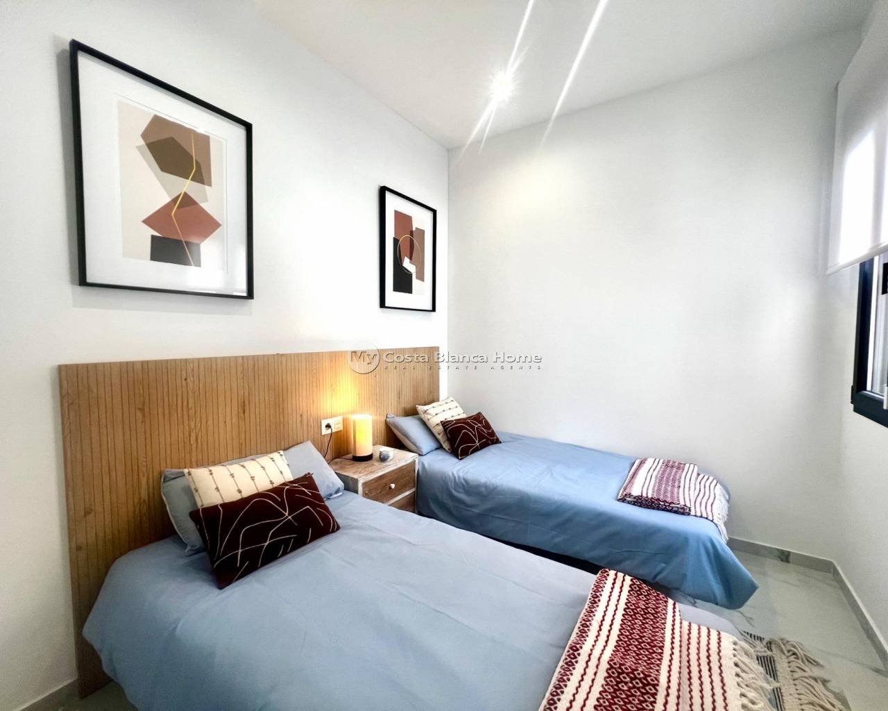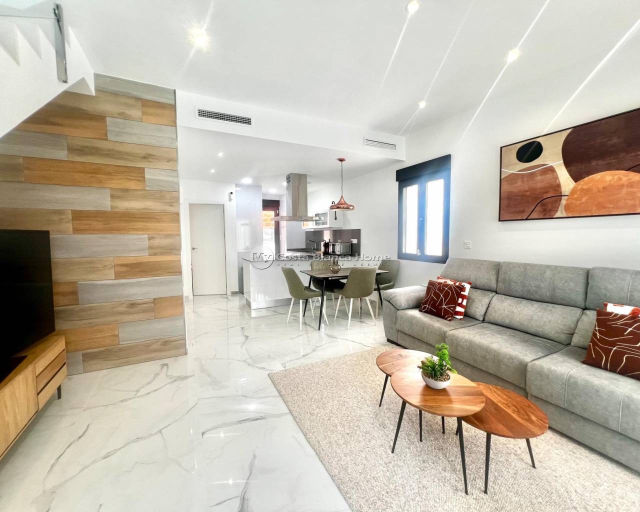 Detached villa with private pool and solarium overlooking the pink lake~~Discover this fantastic detached villa with a private pool, located in a quiet area surrounded by nature—perfect for those seeking comfort, privacy, and a Mediterranean lifestyle.~~Built on a 116 m² plot, the property is distributed over two floors with a total of 106 m² built.~~The ground floor features a bright living-dining area with an open-plan kitchen, one double bedroom, and a full bathroom—everything you need to live comfortably on one level.~~Upstairs, you’ll find two spacious bedrooms, each with its own en-suite bathroom, and direct access to a spectacular solarium with open views of Torrevieja’s famous pink salt lake—one of the area’s most iconic natural landmarks.~~The outdoor space is fully tiled for low maintenance and maximum enjoyment. The private pool is the perfect place to relax, sunbathe, or enjoy time with friends and family.~~Furniture is not included in the price, but can be purchased separately.~~A unique property, full of style and character, ideal for those looking for a modern and functional home close to everything, yet surrounded by peace and nature.