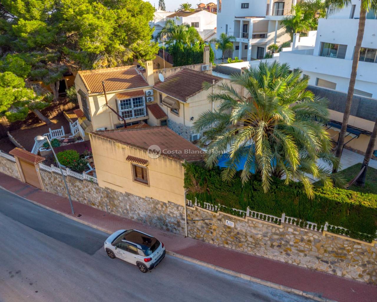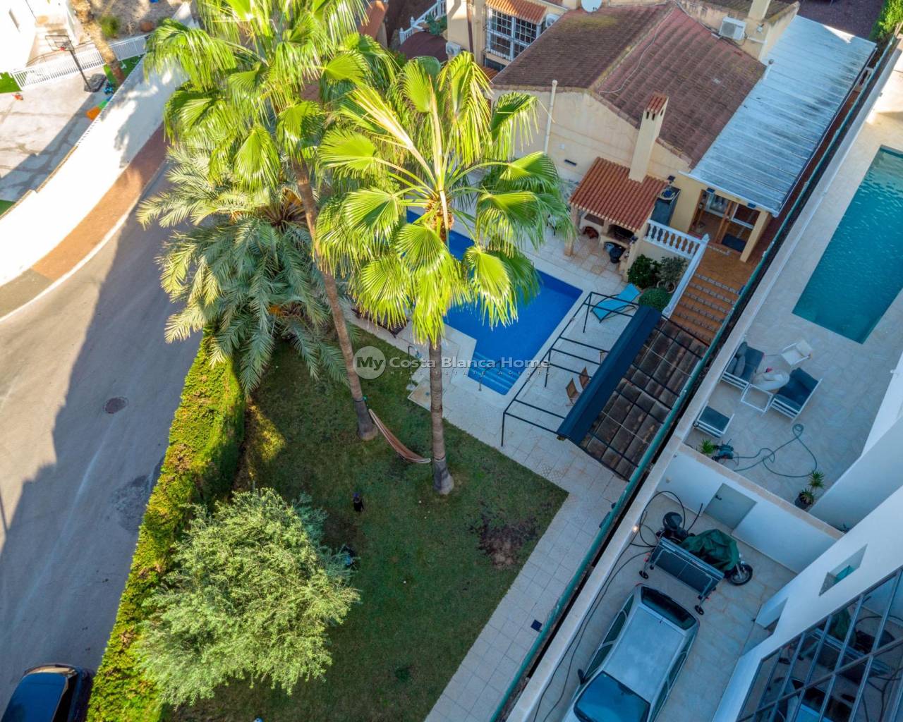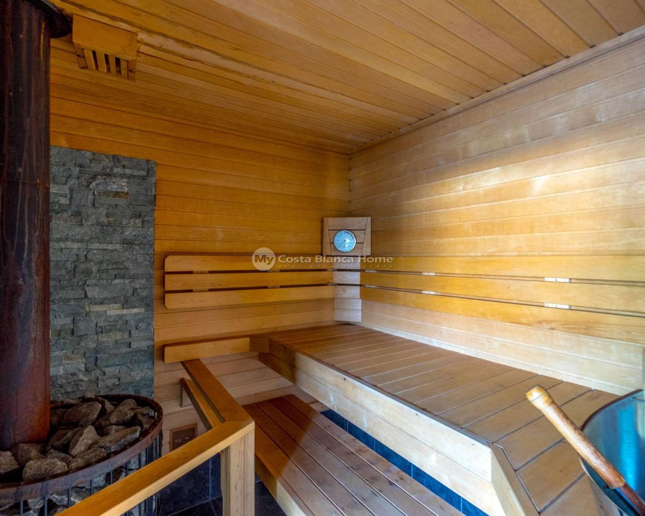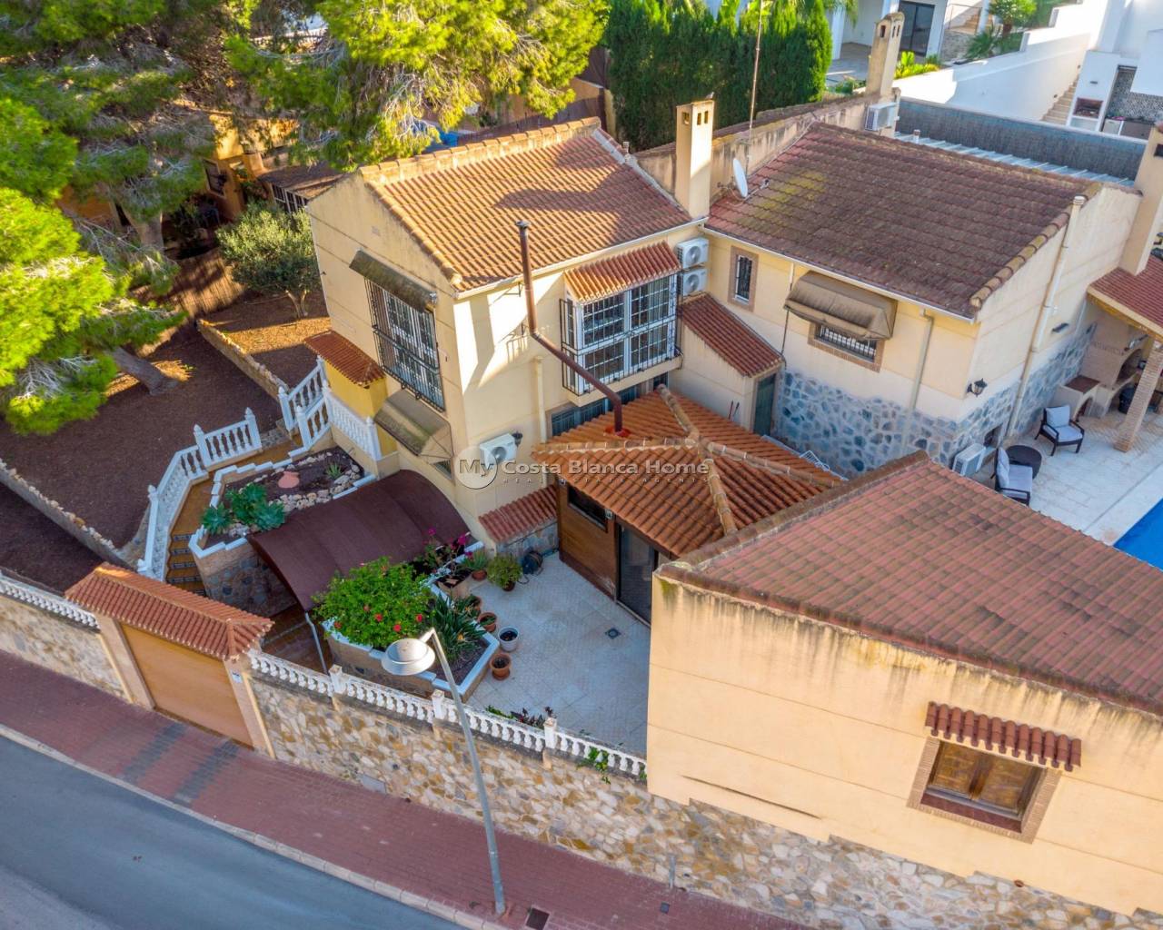 Detached villa with private pool and large plot in Los Balcones~~Detached villa with a spacious plot, private pool and wellness area, ideal for year-round living.~~The property has an approximate built area of 200 m2 and stands on a plot of more than 800 m2, located in the prestigious residential area of Los Balcones — a quiet and well-connected area of Torrevieja.~~It offers three bedrooms and three full bathrooms, along with a bright living room and an independent kitchen. All rooms are equipped with heating by radiators (diesel boiler) and air conditioning via split units.~~Outside, the villa features a large garden area with a private pool, a glazed winter room, and a sauna area — perfect for relaxation and comfort.~~There is also a closed garage with space for two vehicles.~~A well-maintained and complete property offering privacy, space, and excellent quality, ideal as a permanent home or as a holiday residence.