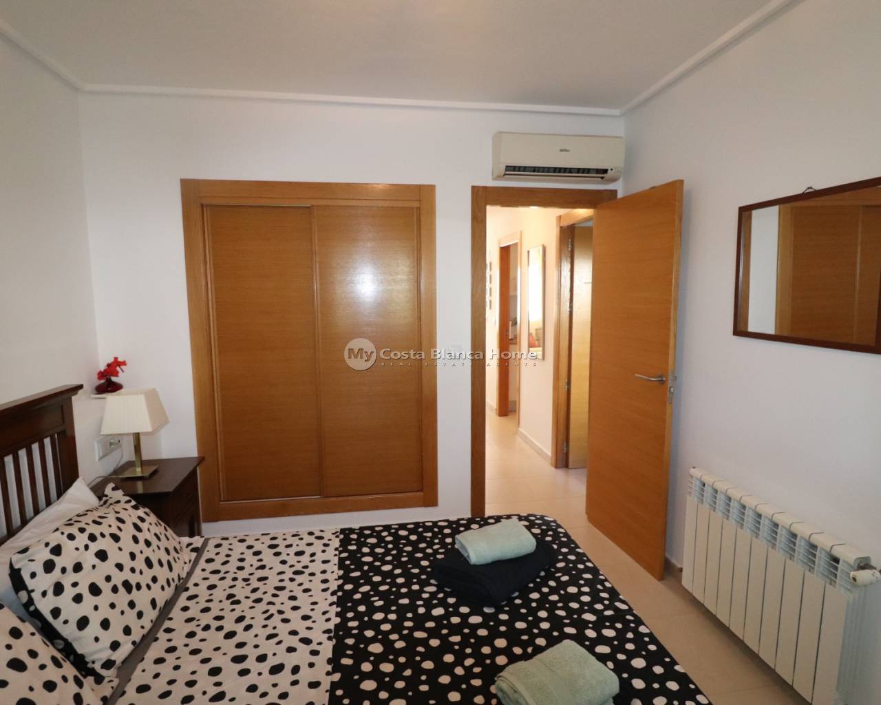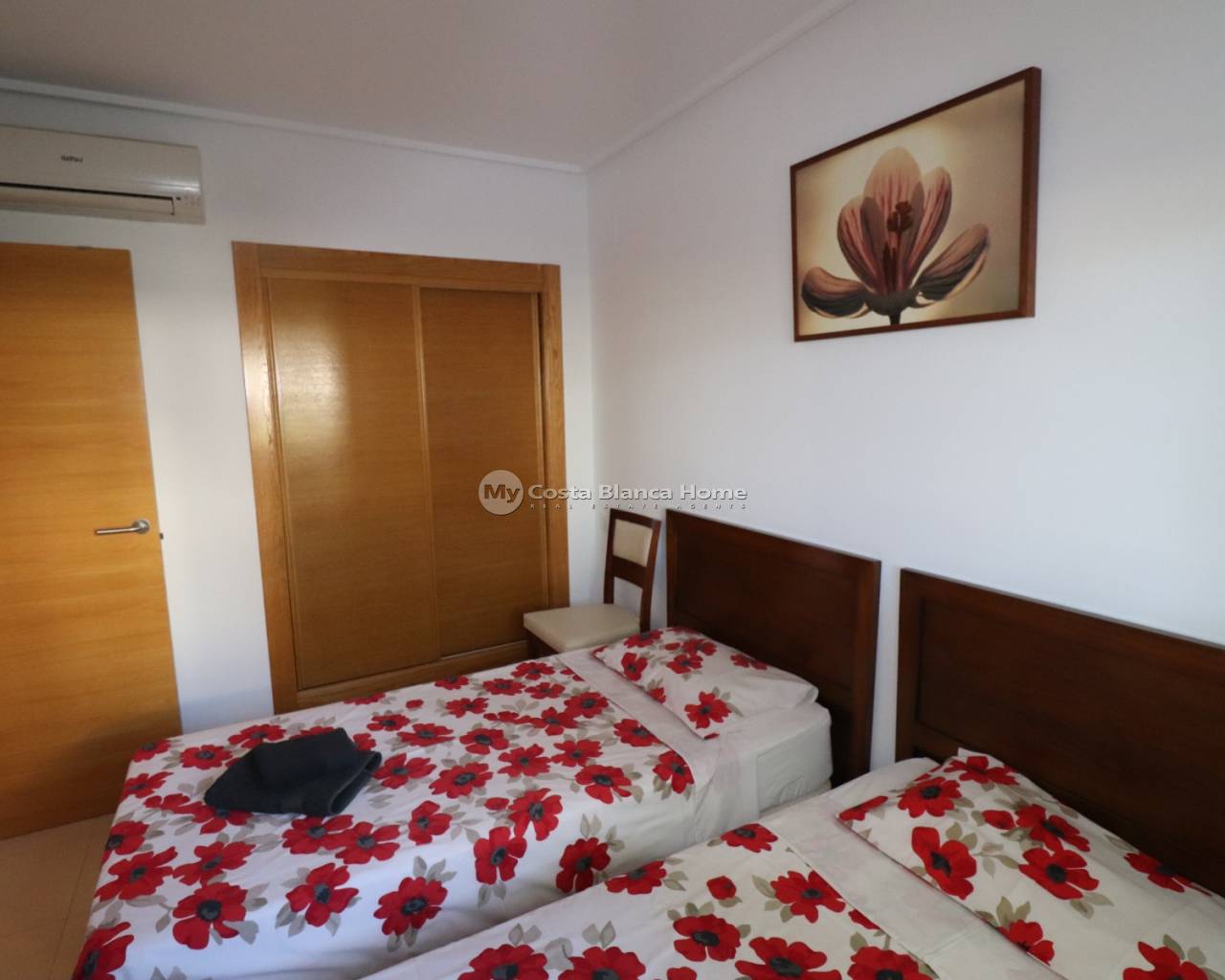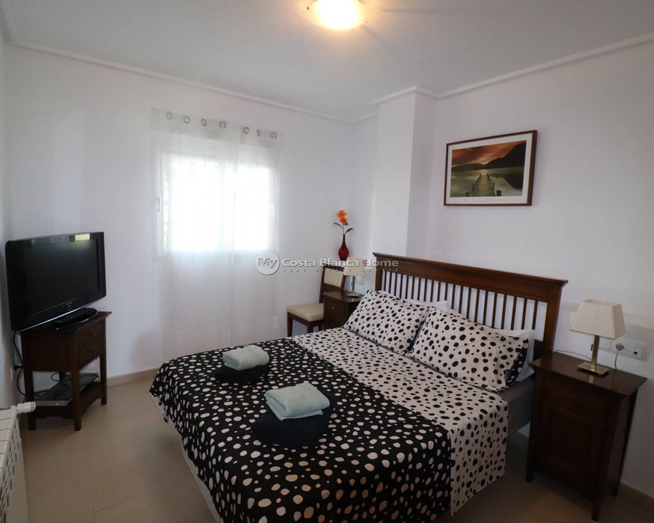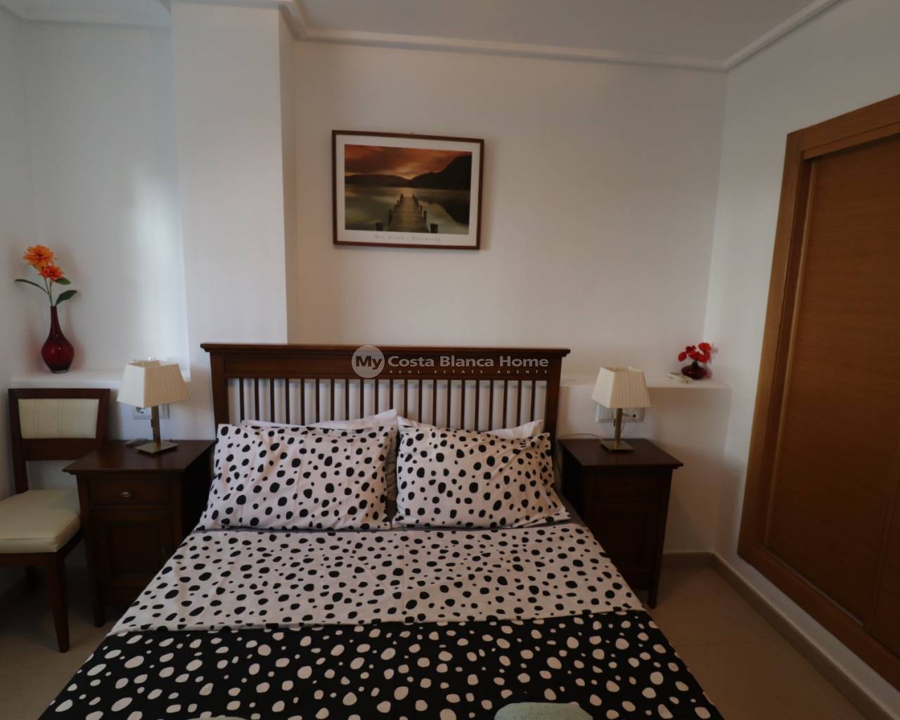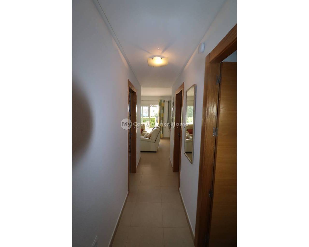 Beautiful ground floor flat on the Hacienda Riquelme golf course in Sucina. The flat comprises a kitchen, 2 bedrooms with fitted wardrobes, a bathroom and a bright living room opening onto a large 30 m² terrace, almost half of which is covered. The terrace leads directly to the magnificent communal swimming pool. The flat has air conditioning in every room. It is sold fully furnished, with a storage room and a parking space in the basement. The Hacienda Riquelme complex is well maintained and secure. The complex has a supermarket, a restaurant, a café and a library. It is located 15 minutes from the beautiful beaches of the Costa Calida and 20 minutes from Murcia Corvera Airport. This flat has a tourist licence, making it an ideal property if you are looking for a rental investment.