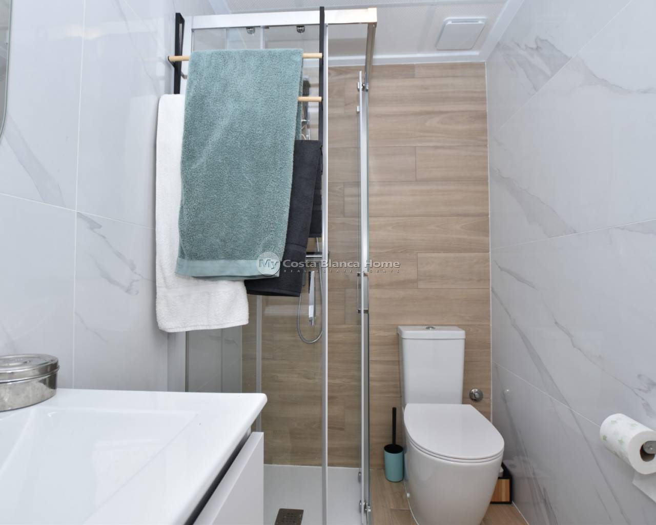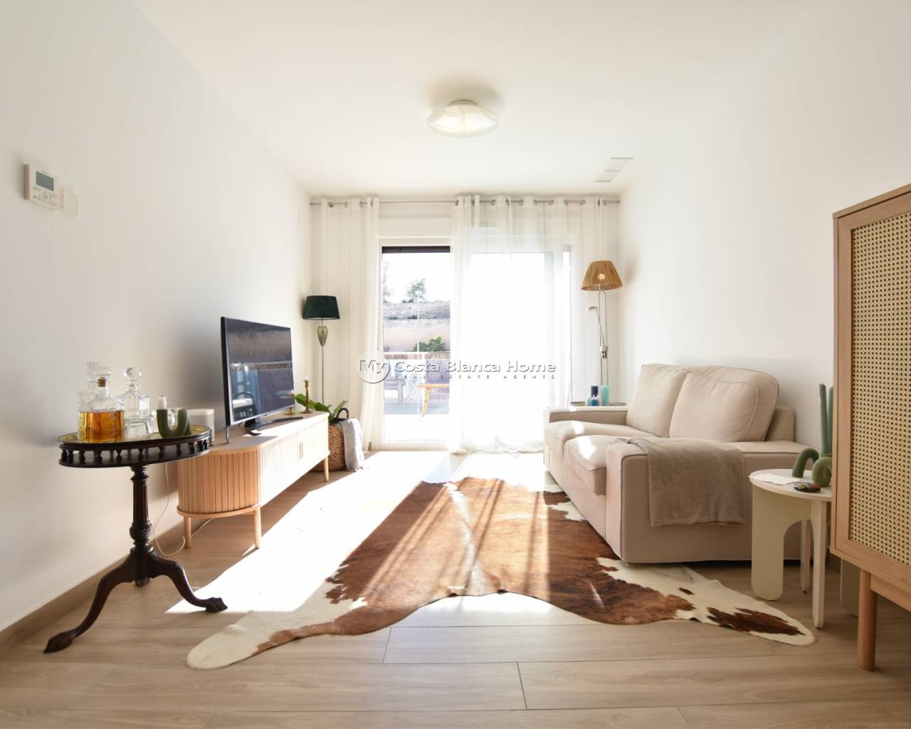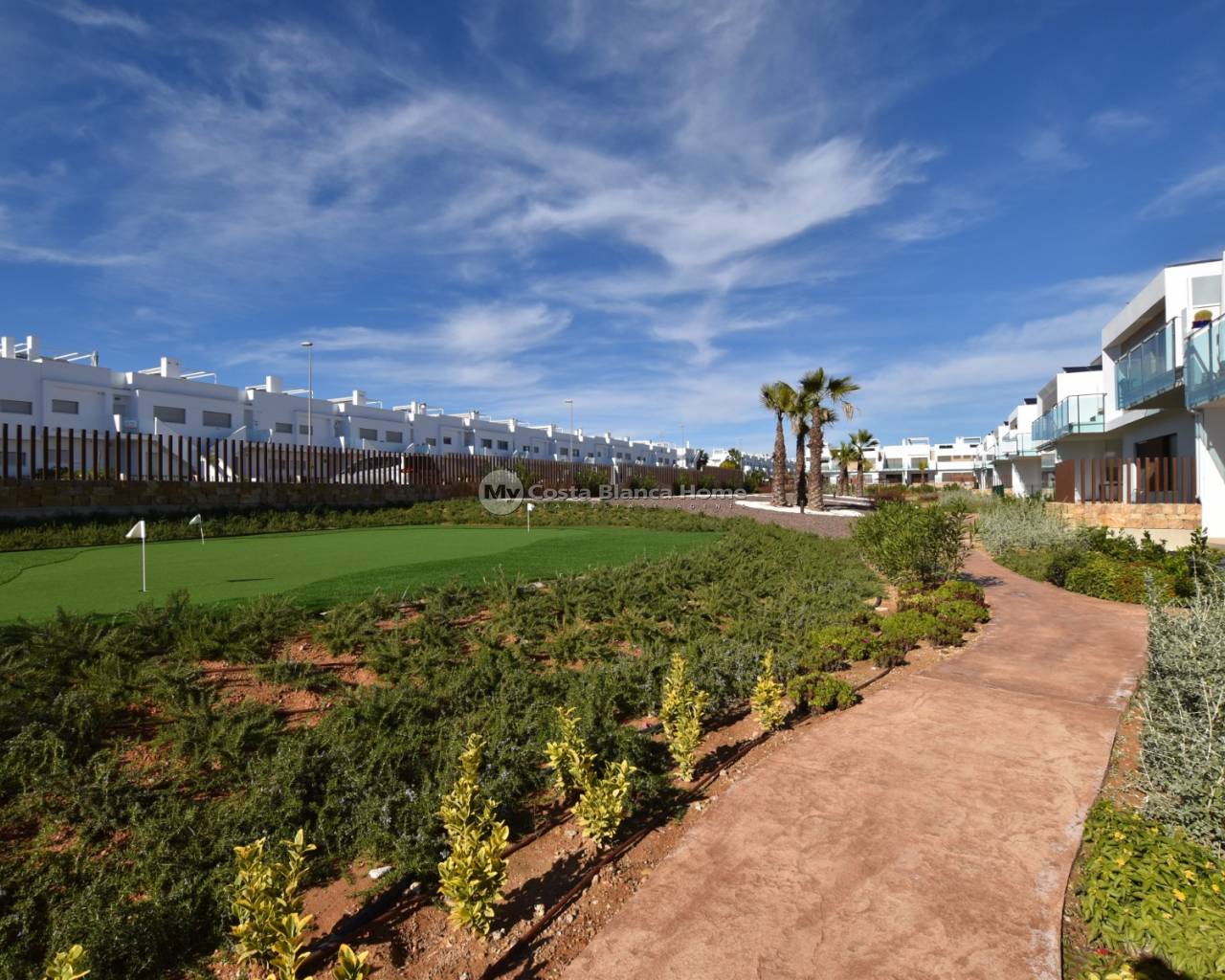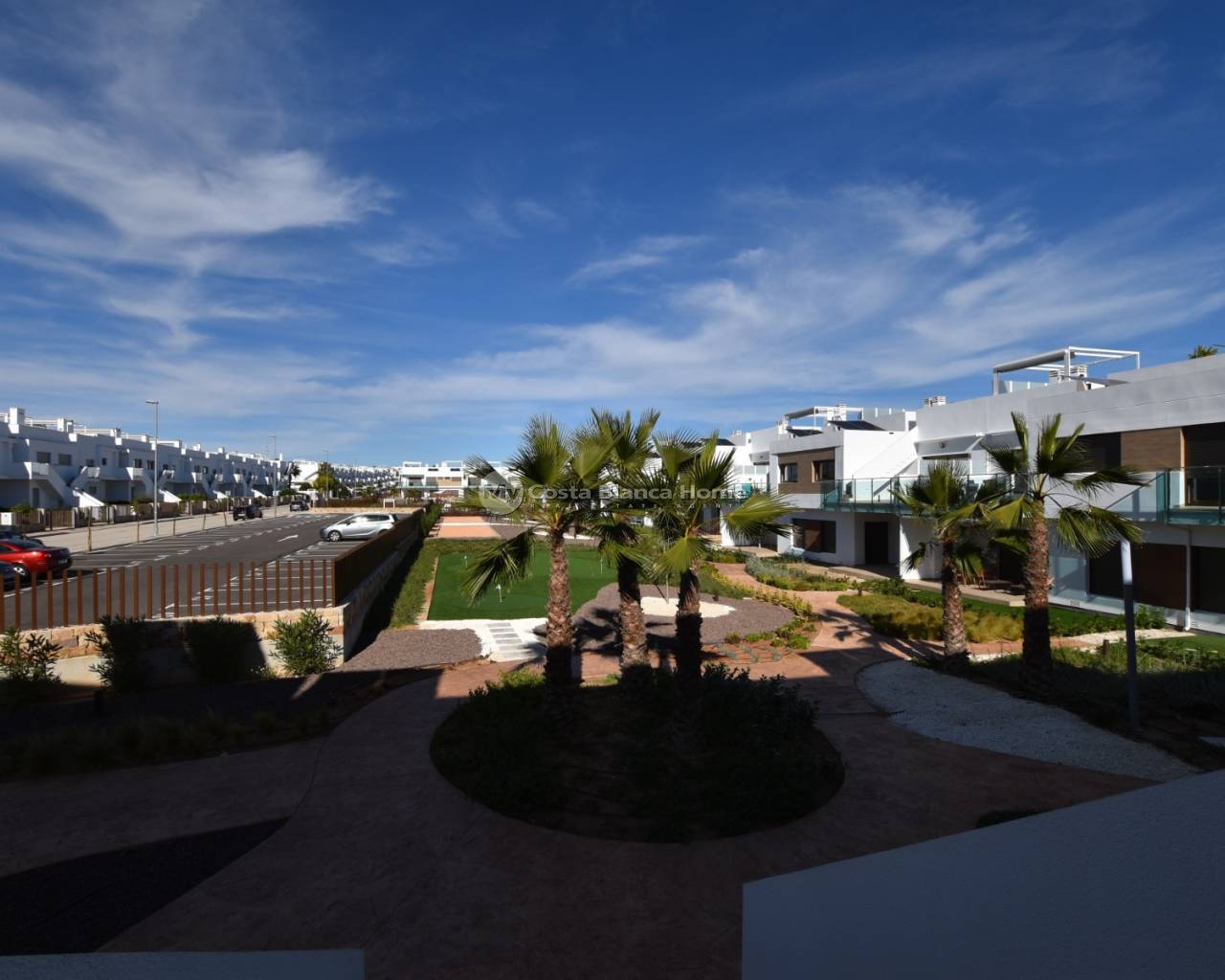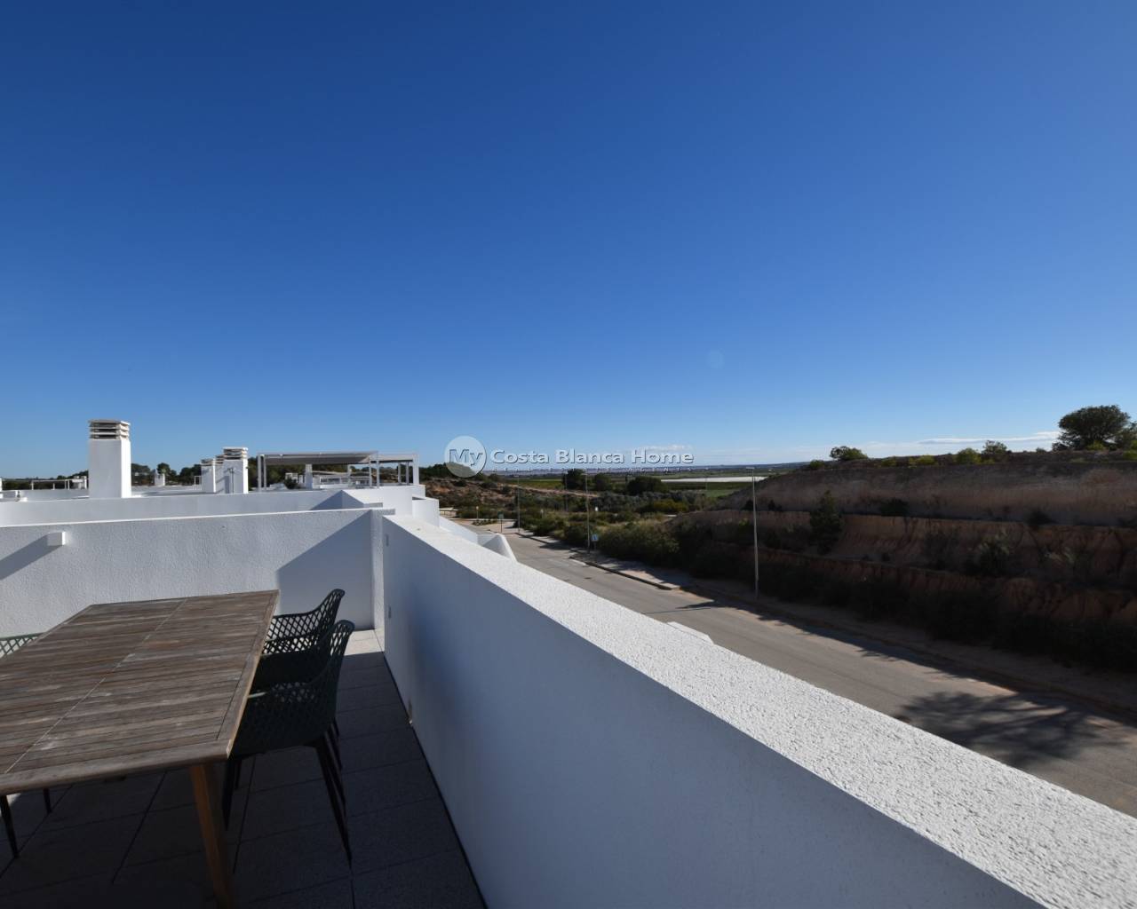 This beautiful top-floor apartment in the Capri VIII community at Vistabella Golf was completed in April 2025 and is almost brand new. It features 2 bedrooms, 2 bathrooms, a bright open-plan living room with kitchen, a terrace and a spacious private rooftop solarium — perfect for relaxing and enjoying the weather. The community offers a swimming pool, mini-golf, petanque, garden areas and parking. The property includes air conditioning and good finishes. Vistabella Golf has an 18-hole course, academy, practice areas, restaurant and clubhouse. Guardamar and Torrevieja beaches are around 20–25 minutes away, and Alicante Airport about 45 minutes.