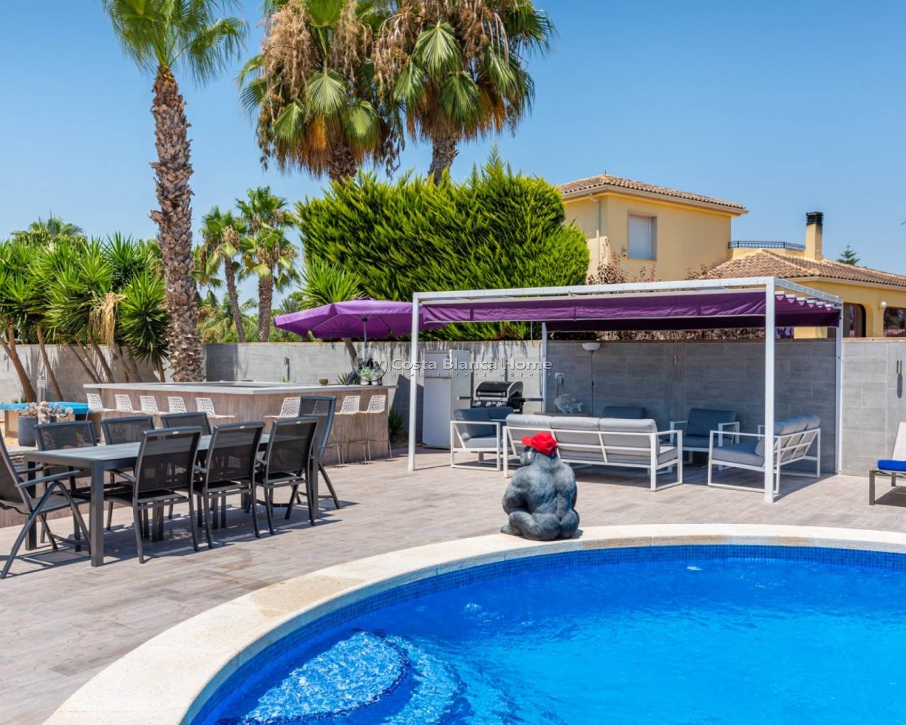 Nestled in the serene countryside of Catral, Alicante, this extraordinary Villa redefines luxury living with its expansive 540m² build. Designed with a south-facing orientation, the home maximises natural light and warmth, creating a bright, light, and airy ambiance. Modern finishes and sustainable features, such as solar energy, blend seamlessly offering an environmentally conscious lifestyle without compromising on style or comfort. This villa is a rare opportunity to own a spacious, sophisticated retreat in the heart of the Costa Blanca. The outdoor living space is a true highlight, featuring a stunning private pool surrounded by a landscaped garden with ample parking. This tranquil oasis is perfect for unwinding under the Mediterranean sun, hosting family gatherings, or simply enjoying the peaceful surroundings. The generous outdoor area provides ample space for relaxation and recreation, making it an ideal setting for embracing the coveted Costa Blanca lifestyle. For those who love to entertain, the villa offers a dedicated home outdoor entertaining area that elevates gatherings to the next level, complete with a stylish bar and a designed area for seamless hosting, whether it's a lively barbecue or an intimate evening with friends, this thoughtfully crafted area ensures every occasion is memorable and effortlessly sophisticated. The property includes a completely self-sufficient guest house, providing a private and comfortable haven for visitors or extended family. This standalone retreat is equipped with all the necessary amenities, ensuring guests enjoy their ownspace without sacrificing the luxury and quality found throughout the main villa. A versatile under build adds even more functionality to this exceptional property. This additional space can be customised to suit a variety of needs, whether as extra storage, a gym, or workshop, even additional living quarters. The under buildenhances the villa's practicality, offering endless possibilities for personalisation to match your lifestyle. Embracing countryside living, this villa is surrounded by sprawling views and a peaceful environment. At the same time remaining close to the amenities of Catral and the Costa Blanca coast. Adding to its appeal, this property features an extra plot of land providing a unique opportunity for outdoor enthusiasts. Perfect for a mini pitch and putt course or a productive allotment.