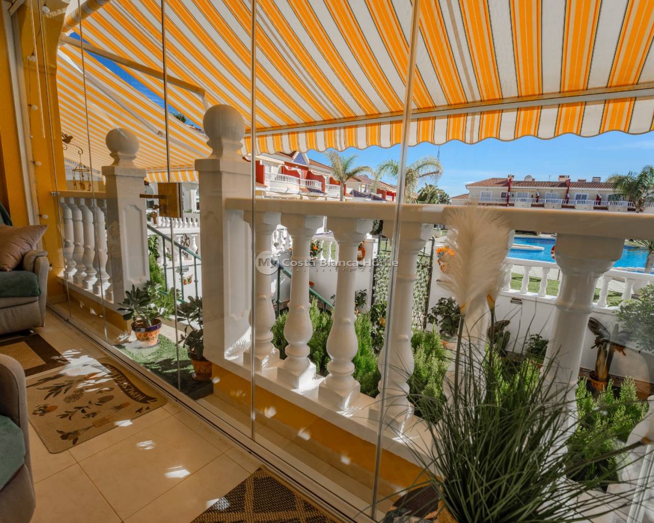 STUNNING 3-BEDROOM TOWNHOUSE (ONE BEDROOM CONVERTED TO DINING ROOM) WITH POOL VIEWS IN LO MARABU, CIUDAD QUESADA This surely must be the best of these townhouses on the market. Decorated with real flair by the current owners and maintained to the highest standards, this townhouse is located in the sought-after area of Lo Marabu, Ciudad Quesada. Offering a perfect blend of comfort, style and convenience, this south-facing home provides relaxed Mediterranean living just minutes from the coast, golf and local amenities. Key Features 2 Bedrooms | 1 Bathroom + Guest WCDining Room – Originally Third Bedroom – Option to Reconvert Back to BedroomSpacious, Light-Filled Living Room with Pellet BurnerSunny South-Facing Terrace Overlooking Pool & GardensFull Luxury Outdoor Kitchen with Built-In BBQModern, Fully Re-Fitted KitchenBalcony to Both Bedrooms, Master with Pool ViewsDucted Air-Conditioning ThroughoutElectric AwningsFurnishedAttractive Community with Well-Maintained Pool & Green SpacesCommunity Fee 180 per quarter Property Description This beautifully maintained townhouse in Lo Marabu, Ciudad Quesada offers a welcoming atmosphere and thoughtful layout ideal for year-round living or holidays in the sun. The bright and spacious living room opens onto a south-facing terrace with lovely views of the pool and gardens. Fitted with glass curtains, the terrace transforms into a cozy conservatory in cooler months—perfect for enjoying the sunshine all year. A pellet burner in the living area adds warmth and charm, creating a comfortable space for relaxing or entertaining. An elegant archway leads to the generous dining room, which was originally the third bedroom and can easily be reconverted if desired. The separate kitchen has been recently refitted and modernised, offering sleek finishes and ample workspace. Outside, the property features a full luxury outdoor kitchen complete with built-in BBQ, ideal for entertaining guests or enjoying al fresco dining in the warm Spanish climate. Upstairs, you’ll find two double bedrooms and a family bathroom. One of the bedrooms enjoys a private balcony overlooking the pool, ideal for morning coffee or sunset views. This home is part of a well-kept and friendly community, featuring a lovely communal pool and landscaped gardensthat create a peaceful, resort-style setting. Location & Lifestyle Situated in the sought-after Lo Marabu area, this property for sale in Ciudad Quesada offers the perfect location. The area is popular with both full-time residents and holiday homeowners for its friendly international community, peaceful atmosphere and close proximity to everyday essentials. Within walking distance, you’ll find shops, supermarkets, cafés, bars and restaurants, as well as wellness centers and local services—all making life here easy and enjoyable. For golf lovers, La Marquesa Golf Course is just 10 minutes away, offering a beautifully maintained 18-hole course surrounded by the Quesada valley’s rolling scenery. Outdoor enthusiasts will also appreciate the nearby El Recorral Parkand La Mata Lagoon Natural Park, ideal for walking, cycling and nature spotting. Only 12 minutes from the Blue Flag beaches of Guardamar del Segura and 35 minutes from Alicante Airport, this Lo Marabu townhouse in Ciudad Quesada enjoys one of the best-connected locations on the Costa Blanca. Whether you’re searching for a holiday home in Ciudad Quesada or a permanent residence near the beach and golf, this location provides everything you need for a relaxed and vibrant Mediterranean lifestyle. Only 10 minutes to La Marquesa Golf CourseAround 12 minutes to the beaches of Guardamar del SeguraApproximately 35 minutes to Alicante Airport Next Steps Don’t miss this opportunity to own a beautifully maintained townhouse in one of Ciudad Quesada’s most desirable areas. Schedule your private viewing with us today – this Lo Marabu gem won’t last long!