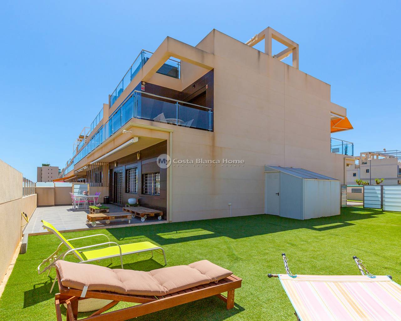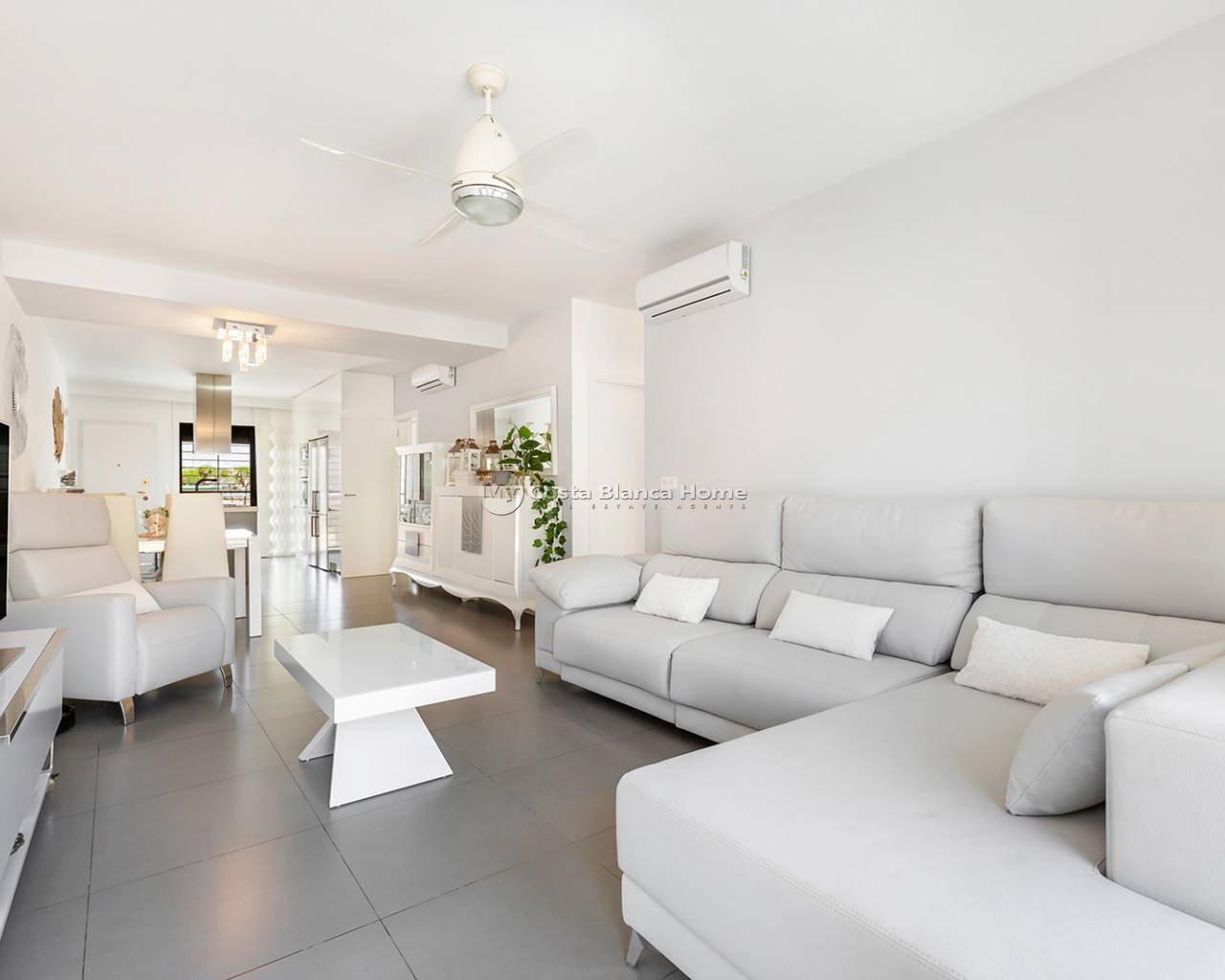 Spacious ground floor bungalow in Torre de la Horadada. This modern south facing property has 4 bedrooms, 3 bathrooms, a spacious living-dining room with open plan kitchen and direct access to the terrace and garden of 120m2. It is located in the complex where you can enjoy communal pool and garden areas. Torre de la Horadada is a prestigious area of the Costa Blanca, very close to Mil Palmeras, Campoamor, San Pedro del Pintar and Orihuela Costa. The famous salt lagoons of San Pedro del Pinatar and the Thalasia marine spa centre can be reached in only 10 minutes. Pilar De La Horadada, enjoys more than 2500 hours of sunshine a year and an average temperature of 18ºC, which makes it a privileged area. It has a wide range of services, green areas, promenades and a marina. Just 5 minutes from the shopping centres La Zenia Boulevard and Dos Mares. In addition to these magnificent weather conditions, there are sandy beaches such as Playa Jesuitas, Playa del Puerto and Playa de las Higuericas. Well communicated with the national road N-332 and the Mediterranean motorway AP-7. Close to major cities such as Murcia and Alicante.