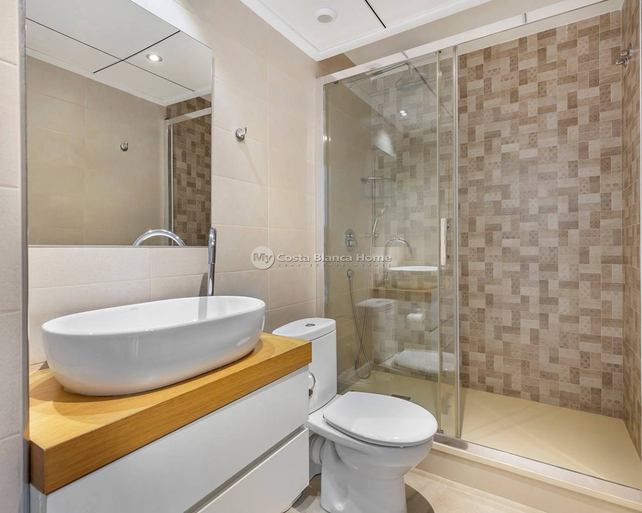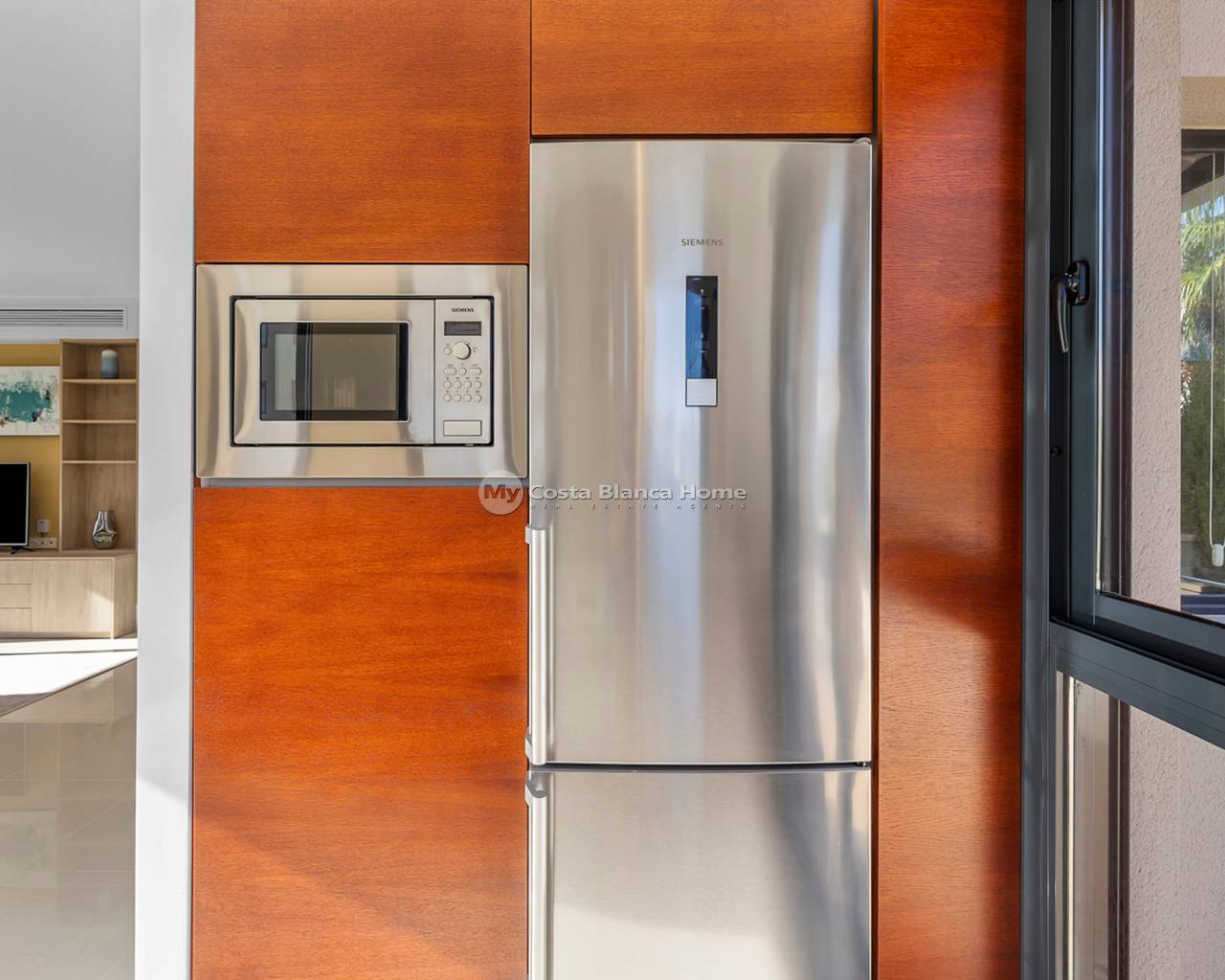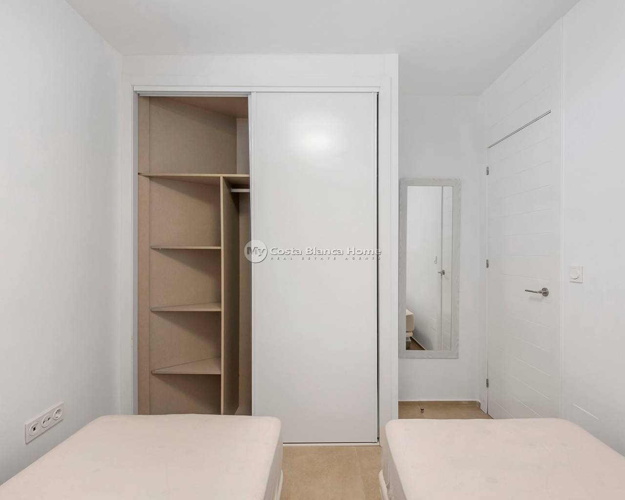 Luxury villa in La Zenia, Orihuela Costa. This villa is situated in an exclusive residential area and has its own private pool and a plot of 410m2. The property has 250m2 built area divided into 4 floors. On the ground floor there is a spacious living room with open plan kitchen, 1 bedroom, 1 bathroom and terrace with access to the pool. On the semi-basement floor there is a living room with open plan kitchen, 2 bedrooms and 1 bathroom. This floor also has a sauna and shower. On the first floor there are 2 bedrooms, each with en-suite bathroom and a large terrace. On the top floor there is a large solarium of 46m2. La Zenia is close to Cabo Roig, Campoamor and Playa Flamenca. It is a tourist area located close to all amenities of the famous La Zenia Boulevard shopping centre. A few minutes from the N-332 and the Mediterranean motorway AP-7 towards Alicante and Cartagena. There are also around the golf courses of Villamartin, Las Ramblas, Campoamor and Las Colinas.