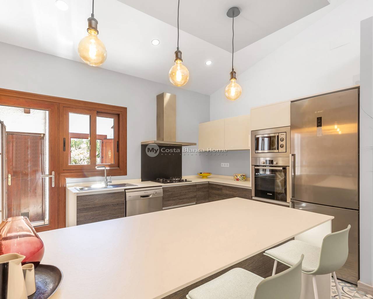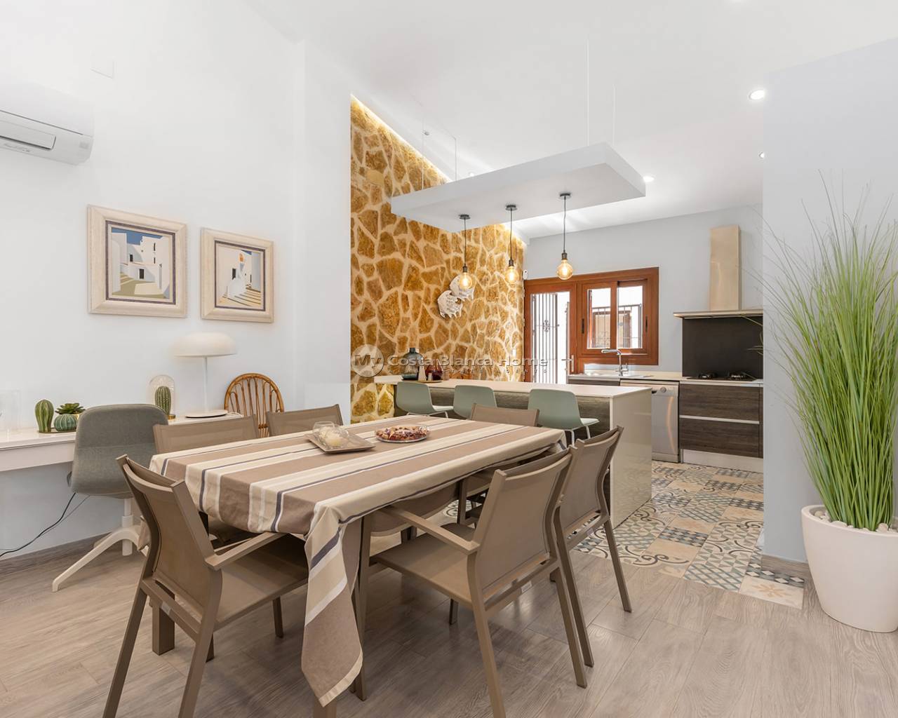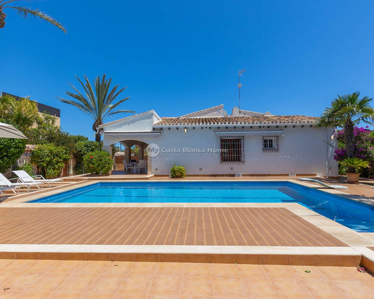 We present this charming villa located in one of the most privileged areas of the Costa Blanca: Punta Prima, just a few steps from the sea. The property has a built area of 168 m², set on a spacious 540 m² plot, offering privacy, comfort, and ample outdoor space to enjoy. The villa features 4 spacious bedrooms, 2 full bathrooms, a bright living-dining room with direct access to the exterior, and a modern fully equipped open-plan kitchen. Outside, the property boasts a private pool, barbecue area, sunny terraces, and a Mediterranean garden – ideal for enjoying the climate all year round. Punta Prima is a well-established coastal area, known for its direct access to the sea, fine sandy beaches, natural coves, and peaceful environment. All essential services are nearby: restaurants, supermarkets, pharmacies, shopping centres such as La Zenia Boulevard, and excellent road connections. Just 10 minutes by car from the centre of Torrevieja, and surrounded by golf courses, sports facilities, and green areas.