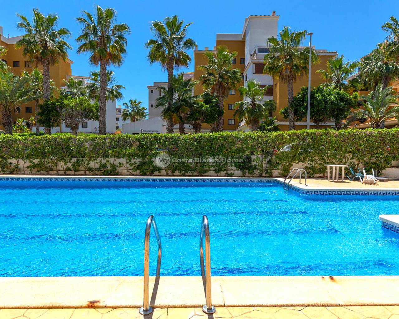 This cozy 4th-floor apartment with 1 bedroom and 1 bathroom is in its original condition but well maintained, ready to move into and enjoy. With a built area of approximately 50 m², it offers a bright atmosphere thanks to its orientation and its terrace with side sea views. The living-dining room is spacious and functional, with direct access to the terrace, an ideal place to relax outdoors while enjoying the Mediterranean breeze. The independent kitchen keeps its original design, well distributed and connected to the living area through a serving hatch, which adds comfort to daily life. The bedroom includes a built-in wardrobe and receives plenty of natural light, while the bathroom maintains its classic original style. Edificio Lyon, located in the sought-after area of Rocío del Mar, offers a community swimming pool and parking area, providing comfort and tranquility. The urbanization is surrounded by all necessary services: supermarkets, restaurants, public transport, and leisure facilities. Its location is excellent, just a few minutes’ walk from Rocío del Mar and Punta Prima beaches, making this apartment an ideal option as a permanent residence, holiday home, or rental investment.