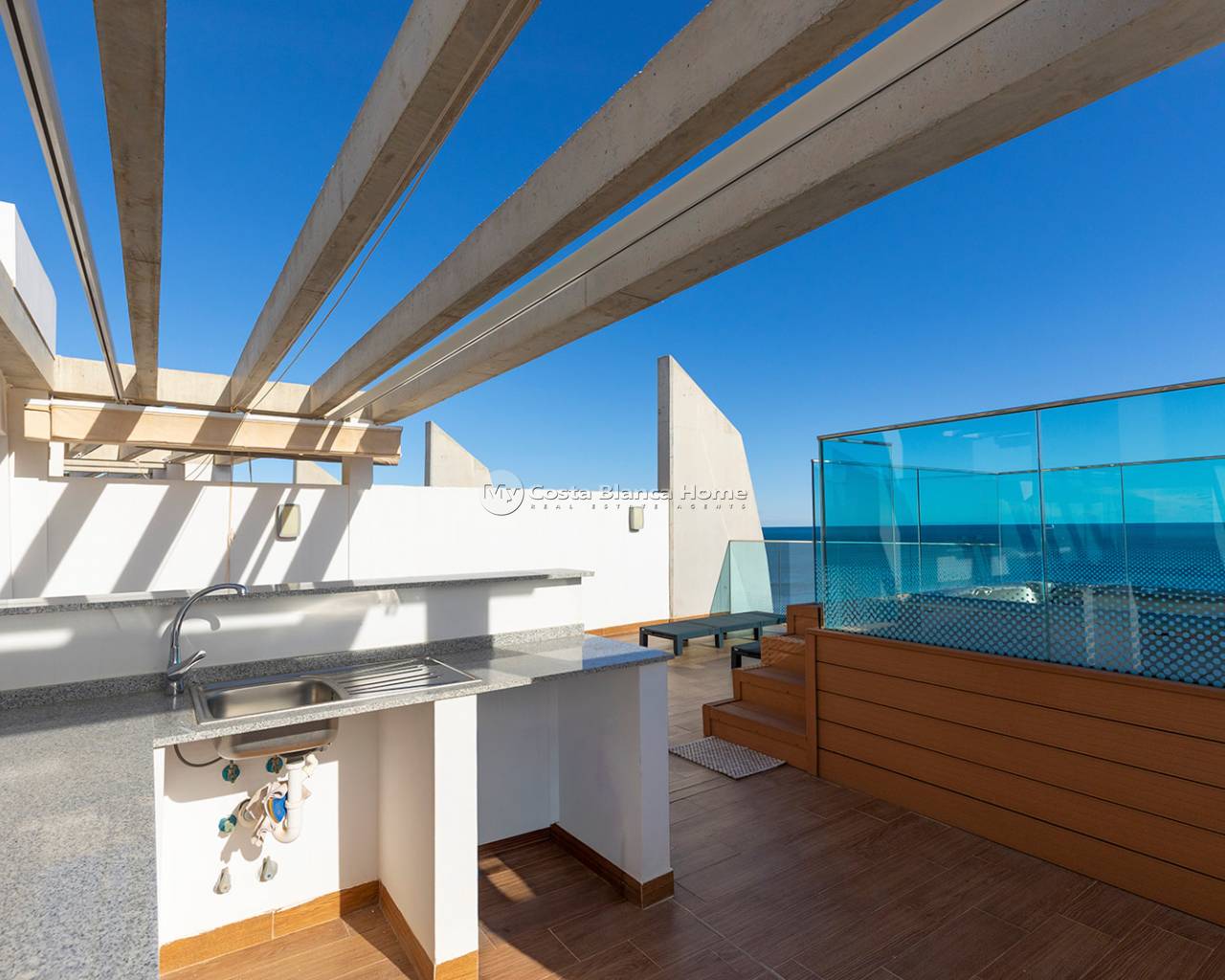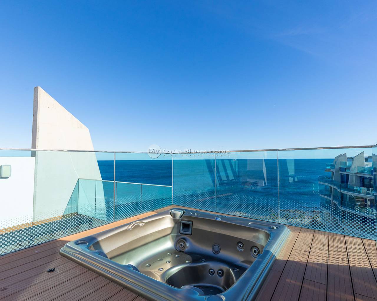 We present this stunning luxury penthouse located in the exclusive Sea Senses residential complex, one of the most sought-after developments in Punta Prima. With an unbeatable southeast orientation and panoramic views of the Mediterranean, this property offers a privileged seaside lifestyle. The property features 2 bedrooms and 2 bathrooms, designed in a modern and functional layout to ensure maximum comfort. From the bright living room, you access a charming 12 m² terrace, perfect for enjoying the sunrise and the sea breeze. The highlight of this penthouse is its spectacular private 83 m² solarium, equipped with a jacuzzi and relaxation areas—an authentic private oasis with endless sea views, ideal for enjoying the Mediterranean climate all year round. The property includes an underground parking space and a storage room, adding convenience and extra storage capacity. Sea Senses is one of the most prestigious residential complexes on the Costa Blanca South, offering top-class communal areas with infinity pools facing the sea, a gym, spa, jacuzzis, sports courts, and landscaped spaces. A setting designed to provide privacy, luxury, and well-being. Located in the renowned area of Punta Prima, this penthouse is just a few steps from the beach and surrounded by year-round services: supermarkets, restaurants, cafés, public transport, and leisure areas. It is also close to shopping centres such as Zenia Boulevard, prestigious golf courses, and main connections to Torrevieja and Orihuela Costa. A truly unique home, where exclusivity, comfort, and sea views come together to offer an unparalleled living experience.