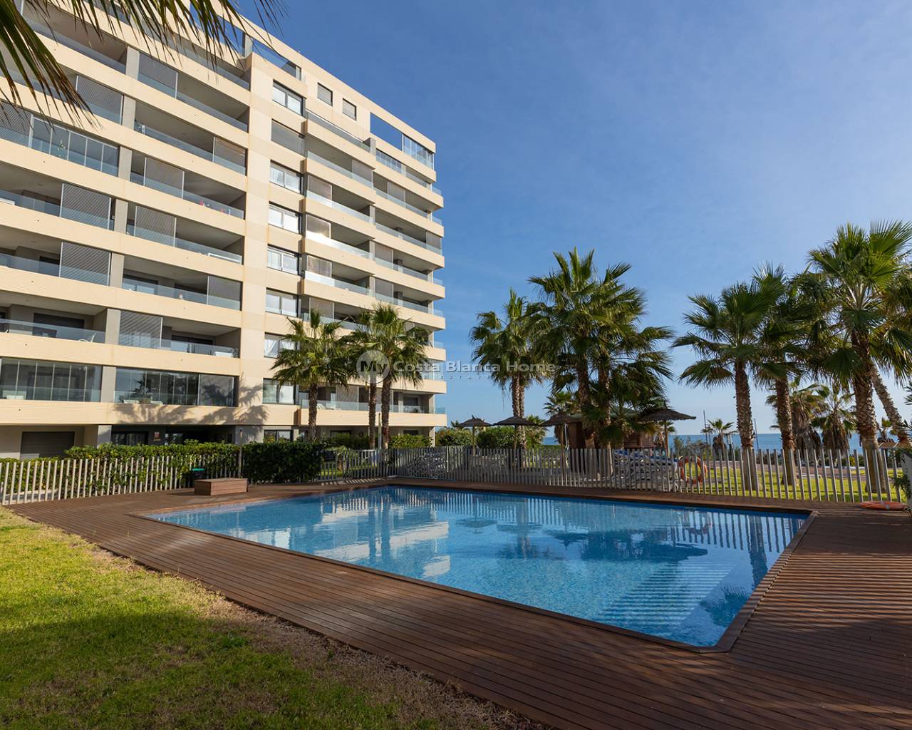 We present this magnificent 3-bedroom, 2-bathroom penthouse with 139 m², located in the prestigious Panorama Mar residential complex, one of the most modern and highly regarded developments in Punta Prima. Situated frontline, it offers stunning open views of the Mediterranean and a privileged setting for those seeking quality, comfort, and exclusivity by the sea. The property features a spacious and bright 28 m² south-facing terrace, perfect for enjoying the sun all day, the sea breeze, and unbeatable panoramic views. The interior layout is modern and functional, with generous rooms filled with natural light, designed to maximize comfort. The penthouse includes an underground parking space and a storage room, providing additional convenience and extra storage. Panorama Mar is a modern frontline complex that stands out for its large swimming pools, including a heated pool, landscaped areas, and relaxation zones with sea views. It offers an exclusive, secure, and well-maintained environment, ideal for enjoying the Mediterranean lifestyle all year round. Located in one of the most privileged areas of the Costa Blanca, Punta Prima combines tranquility and convenience. The property is just a few steps from the beach and surrounded by restaurants, supermarkets, and leisure options, while being very close to Zenia Boulevard and several prestigious golf courses.