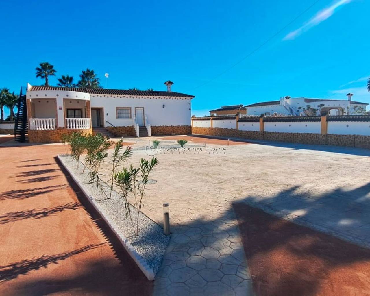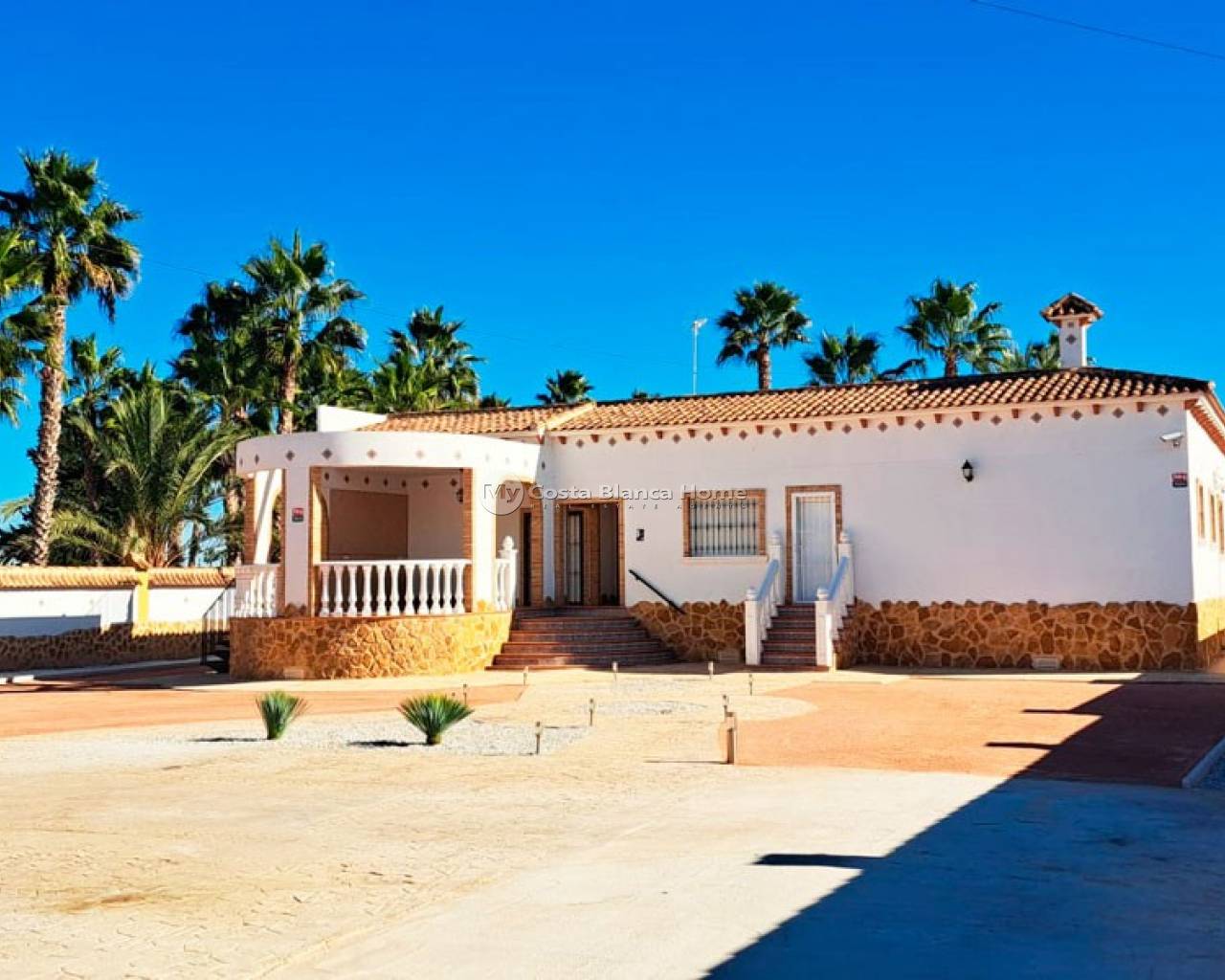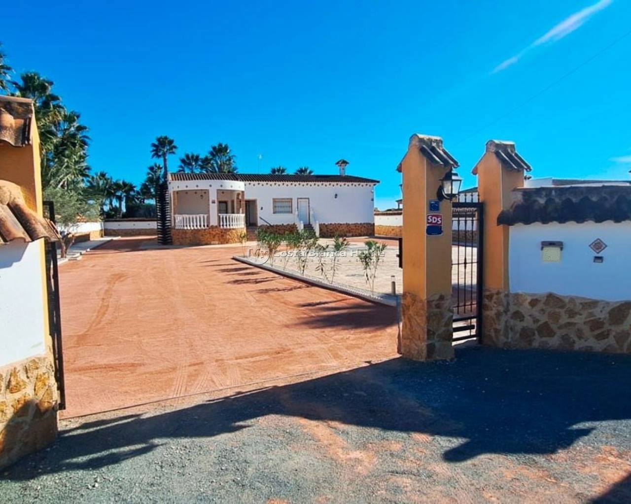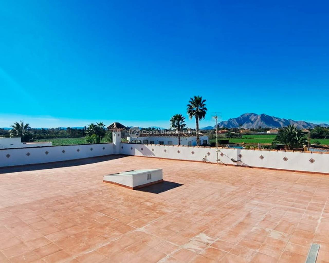This West Facing, Five Bedroom, Detached Country Villa in Catral, is located in a peaceful setting surrounded by open countryside and mountains, offering privacy, space, and breathtaking natural scenery. The town of Catral, with all the amenities you need, is just a 5 minute drive away, while easy access to the AP-7 motorway ensures excellent connectivity. The beautiful beaches are approximately 20 minutes away, and the prestigious La Finca Golf Resort can be reached within 15–20 minutes, making this an ideal Costa Blanca South location. This impressive property boasts a substantial 306m² build and enjoys stunning, direct mountain views. A curved, partly covered entrance terrace welcomes you into the villa, leading to a bright living room enhanced by a skylight that floods the space with natural light. A wide square archway opens into the fitted kitchen, which has a door leading outside and is complemented by a separate utility room. The villa offers five double bedrooms, two of which benefit from walk-in wardrobes. The master bedroom enjoys access to a private terrace. There are three shower rooms in total, with two of them being en suite, providing comfort and convenience for family and guests alike. Externally, the solarium is accessed separately and offers spectacular panoramic views across the countryside and mountains — the perfect place to relax and enjoy unforgettable sunsets. The expansive 1,646m² landscaped plot is fully walled and provides ample off-road parking, as well as plenty of space to add a private swimming pool if desired. The property benefits from mains electric and water. This exceptional country villa offers space, tranquility, and magnificent views, making it a wonderful family home or rural retreat in the heart of the Costa Blanca South.