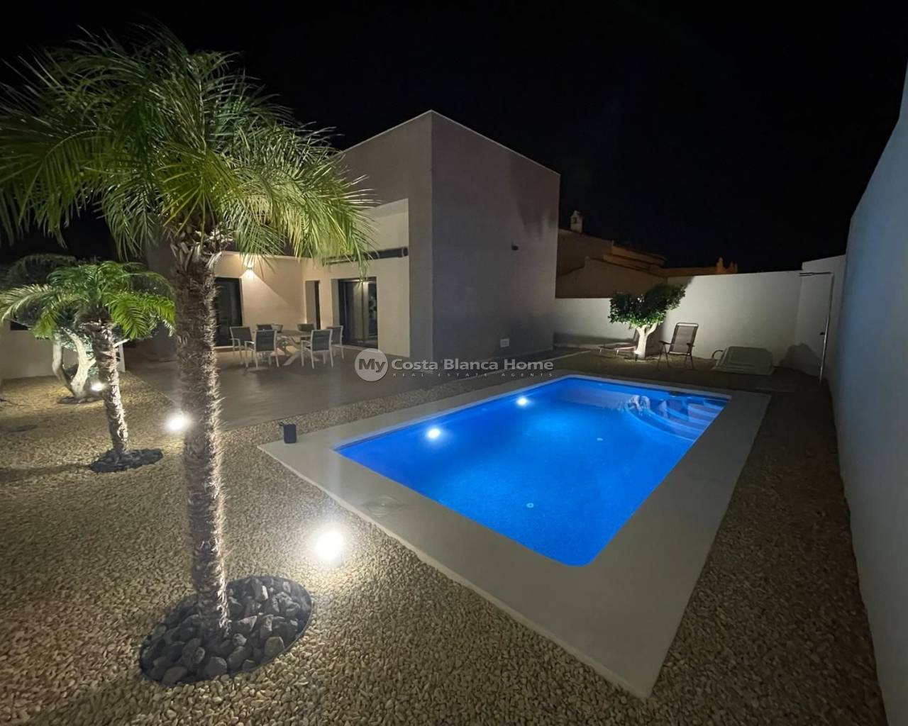 This beautiful ultra modern villa offers comfortable living in the sought-after area of Ciudad Quesada. Boasting an internal space of 70 m2, the property is designed with practicality and style in mind. The villa includes two spacious bedrooms and two modern bathrooms, providing ample room for family and guests. All rooms are on one level, there are no stairs Built in 2018, this home comes fully furnished and ready to move in. The open-plan living space is bright and airy, with large windows that let in plenty of natural light. Step outside to enjoy your own private swimming pool—perfect for relaxing or entertaining. There are extended views over the area and golf from the private roof terrace Ciudad Quesada stands out for its friendly atmosphere, quiet streets, and a wide range of services just steps from your door. The area is famous for its golf course, local shops, restaurants, and cafes, all within easy reach. It is an ideal location for both permanent living and holidays. This attractive villa is brought to you by Orange Casas. Do not miss the chance to make it your new home. Contact us today for a viewing.