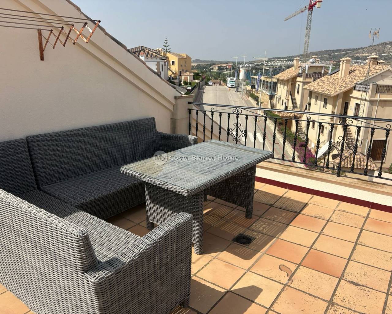 REDUCED IN PRICE !! We are pleased to present this top floor apartment on the La Finca Golf Resort, Algorfa. The property is on the top floor and has an open plan layout with a lounge diner, and American style, fully equipped kitchen. The lounge has a feature fireplace and patio doors that give access to a terrace, perfect for enjoying your morning coffee. Stairs from the terrace lead up to a large private solarium with incredible views of the countryside and mountains. There are two double bedrooms with fitted wardrobes, a family bathroom and en-suite shower room. The apartment is sold fully furnished and ready to move in, making it a ideal full time residence or holiday home that you can enjoy from the day you receive the keys! There are many bars and restaurants, as well as convenience stores, hair dressers, spa hotel and much more. Contact us today to register your interest.