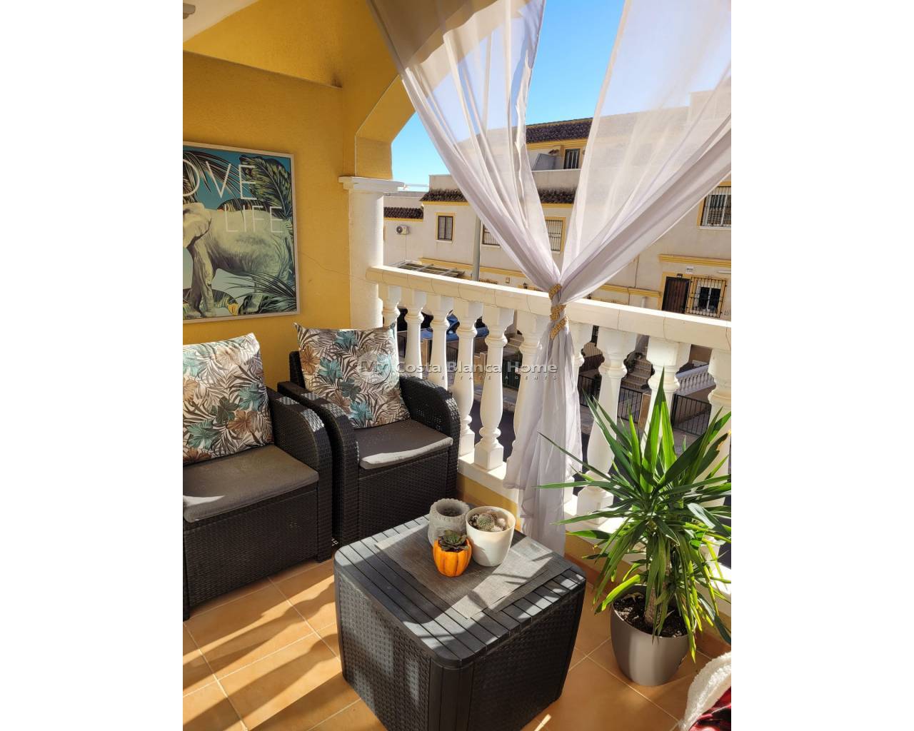 For sale: A charming resale townhouse offering a comfortable and versatile living space in the beautiful area of Algorfa. This well-maintained two-bedroom, one-bathroom home is ideal for those looking for a relaxed lifestyle or a convenient holiday base. The property features a spacious basement, perfect for extra storage, hobby room or separate guest accomodation. Set within a secure gated complex, this townhouse provides peace of mind and a sense of community. Residents have access to a communal swimming pool, making this a perfect place to unwind on warm days. The home is thoughtfully designed, with inviting living areas, various outdoor spaces for sun or shade throughout thr day. Algorfa is known for its scenic surroundings and laid-back atmosphere, nestled amongst citrus groves and close to golf courses. The area is well-served by local amenities such as shops, cafes, and restaurants, all just a short stroll away. This property is proudly listed by Orange Casas. If you are looking for a well-located and low-maintenance home in a tranquil setting, this townhouse could be the ideal choice. Contact us today for more information or to arrange a viewing.