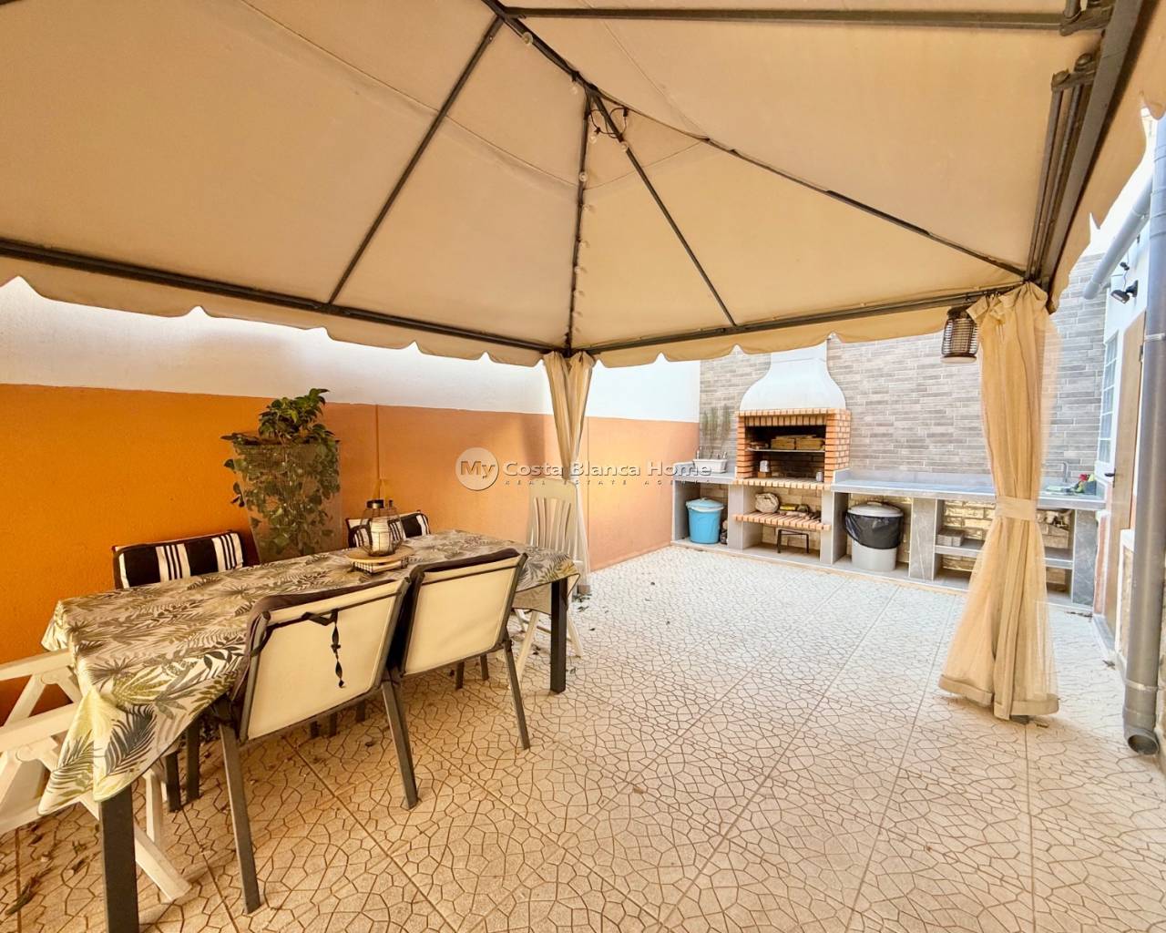Spacious 3-bedroom, 4-bathroom corner townhouse located in the sought-after area of Doña Pepa, just minutes from the town centre. Set within a secure gated community with a communal pool, this south-west facing home enjoys sunshine throughout the day. The property is semi-detached and sits on a corner plot, offering extra privacy and space. It features two independent living areas, each with its own kitchen, making it ideal for extended family living, guests, or rental potential. The downstairs has been converted into additional living space, while the upper level is fully separate with its own kitchen. The house has been partially renovated, including a modern refurbished kitchen, renovated bathroom, and a stylish outdoor barbecue area , perfect for entertaining. Multiple balconies provide pleasant outdoor spaces, and the home benefits from private parking. Additional features include: Spacious and well-laid-out interiors house area 168 builtplot 110construction date 2004ducted air conditioning throughoutsolar panels Solar panels for energy efficiency Partially furnished Bright, airy rooms with excellent natural light A versatile and comfortable home in a prime location, close to amenities yet offering peace, privacy, and community living.