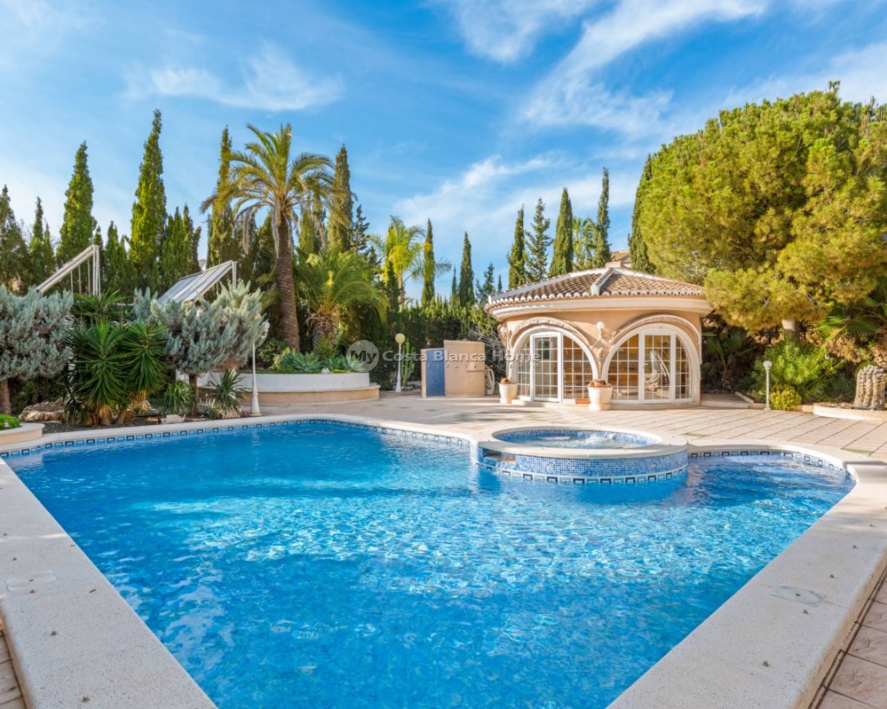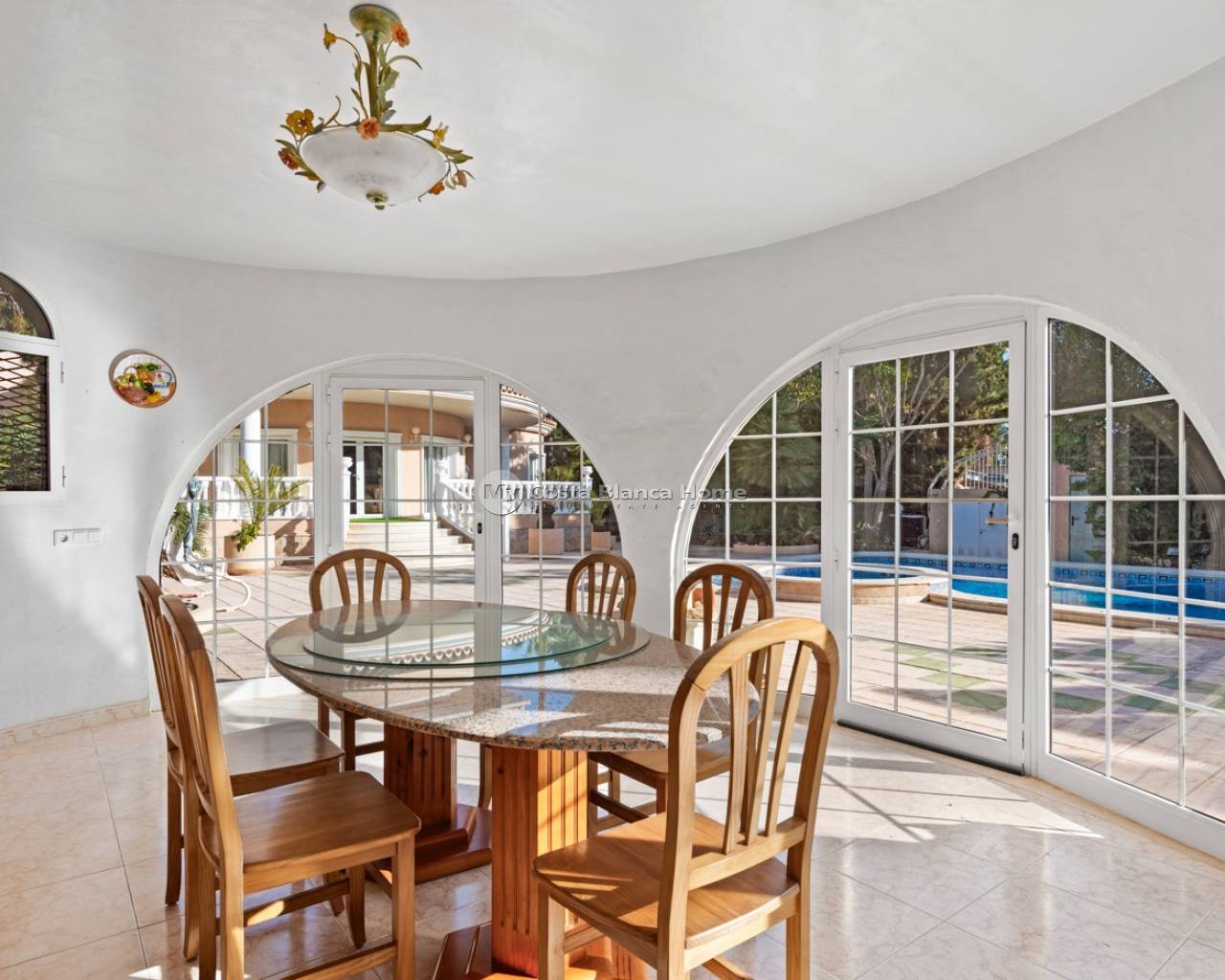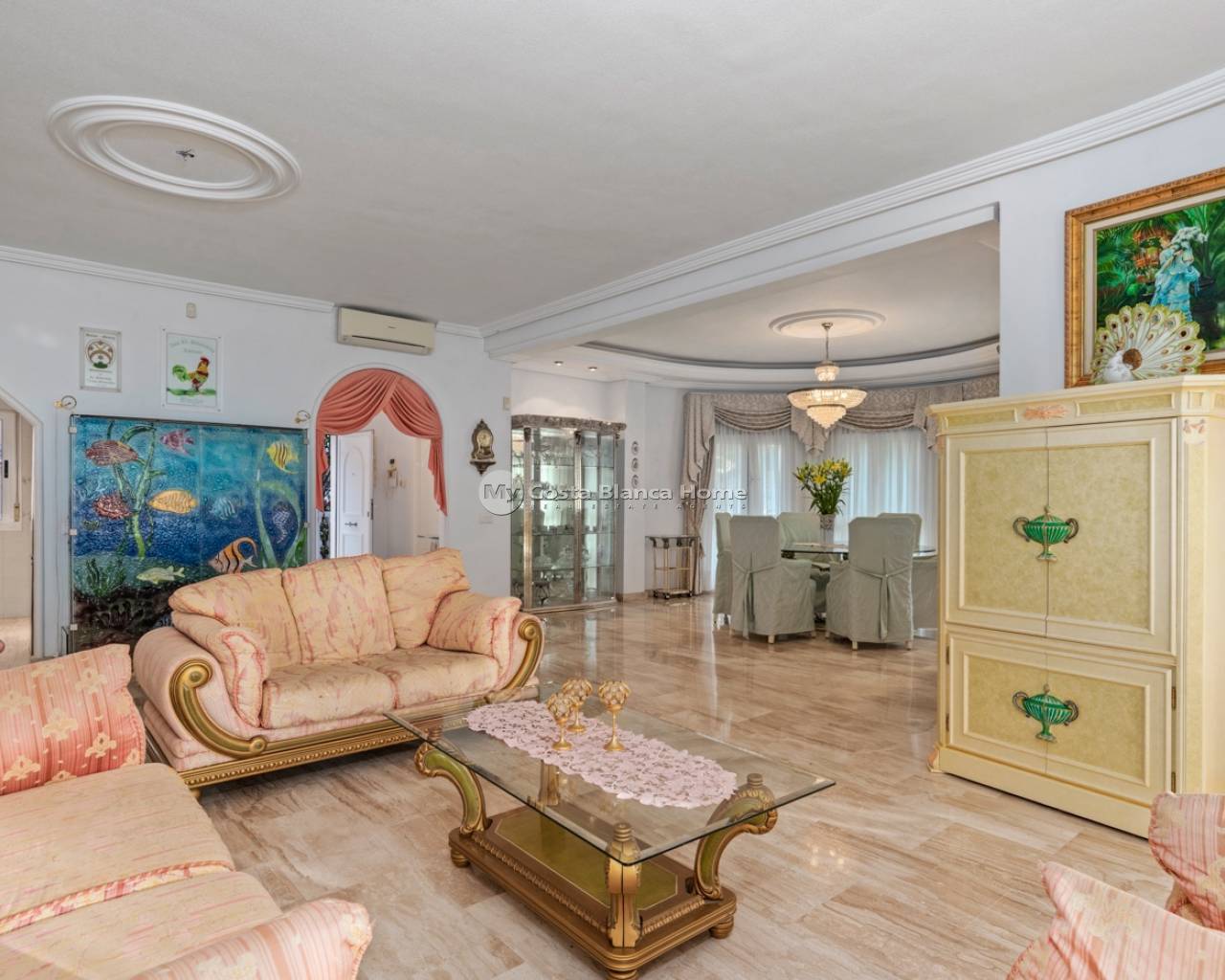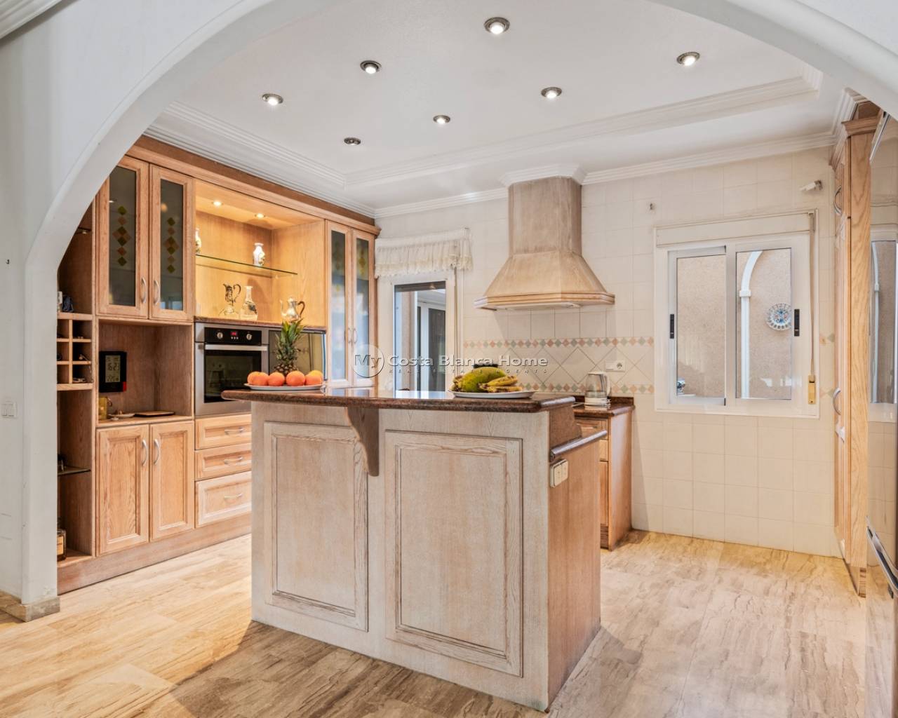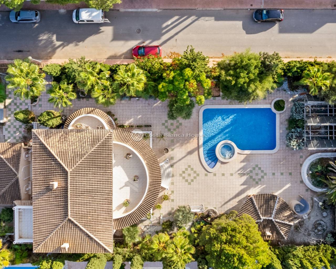 Incredible property located in one of the most exclusive areas of Ciudad Quesada, Doña Pepa, situated on a spacious 1,330 m² plot with 344 m² of living space. A uniquely designed and exclusive home, conceived for maximum comfort, privacy, and elegance. The house is distributed over three floors. On the lower floor, there is a temperature-controlled wine cellar, perfect for wine lovers, as well as the house's utility room. The main floor welcomes you with a guest toilet, followed by a spacious and bright living-dining room, specially designed and connected to an open-plan kitchen with direct access to the outside. The living room is surrounded by large windows that provide abundant natural light throughout the day. Also on this floor are two bedrooms and a full bathroom. From the living room, there is direct access to the outdoor area, where the swimming pool and outdoor kitchen are located. On the upper floor is a spectacular master suite, which features a bathtub and private shower, as well as access to two separate terraces. On this floor, we also find two additional bedrooms, a full bathroom, and a shared terrace. The exterior of the property is one of its greatest attractions: it features a fully equipped, enclosed outdoor kitchen, ready for year-round use, as well as a large swimming pool, ideal for family and social gatherings. The plot also includes a closed garage, additional parking space, and landscaped gardens that completely surround the house. The house has underfloor heating throughout, guaranteeing a high level of thermal comfort year-round. The property enjoys great privacy, thanks to its tall shrubbery, and is located in a quiet, well-connected area, very close to the prestigious Norwegian private school, making it an ideal option both as a permanent family residence and as a high-end investment. An exceptional home that combines design, spaciousness, and exclusivity in a privileged setting.