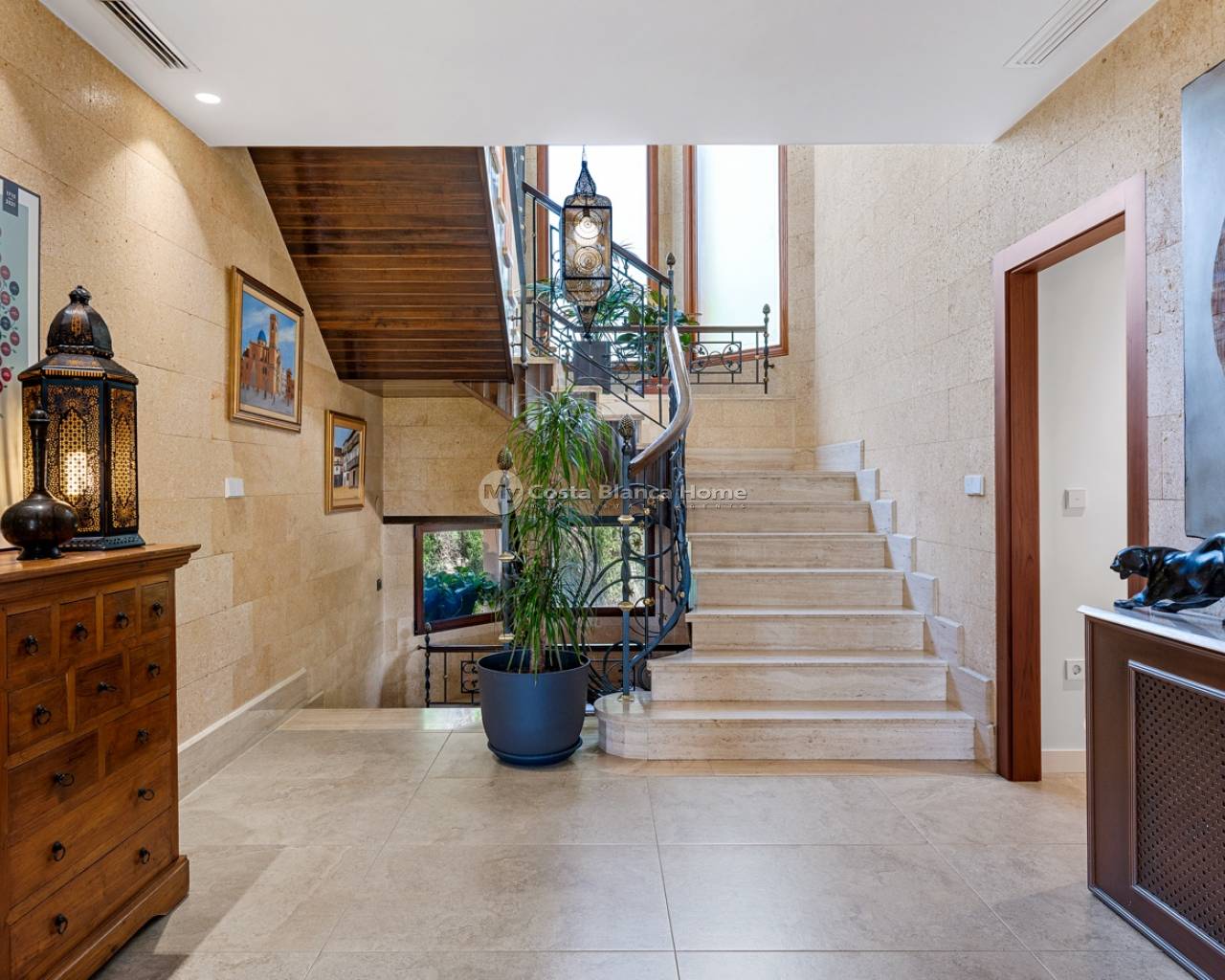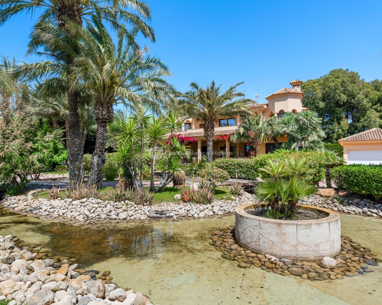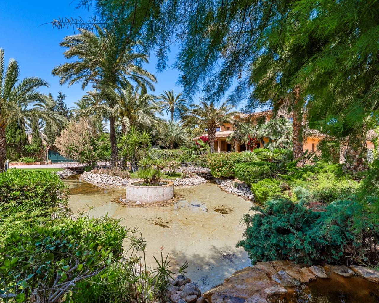 Welcome to this beautiful property located in a popular neighborhood in Elche. The finca sits on a big plot of 4.750 m2. Most of the house is completely renovated since 2019. The main house consists of two floors. On the main floor you will find a spacious foyer, a living room and dining area, a newly renovated kitchen, laundry room, a bedroom, a bathroom, and a family room/glazed terrace with wonderful views to the garden and pool. On the second floor you will find four double bedrooms and two bathrooms, and a total of three balconies.From the main bedroom you also have access to a big walk-in-closet. The basement is very spacious and has a lot of potential. Today it is used as a gym/kids-room. On this floor you will also find the electrical room. The property has spacious and well maintained outside areas. Before entering the property, you will find a big porch with lots of shade for the warm summer days. The garden is beautiful, and here you will also find a fully equipped outside kitchen. By the pool there is also a very clever under built that consists of two dressing rooms, storage, a bathroom and a shower. This under built is covered, and you access it by stairs. On the plot you also have a double garage with an automatic door. For more information, or to schedule a viewing, contact us!