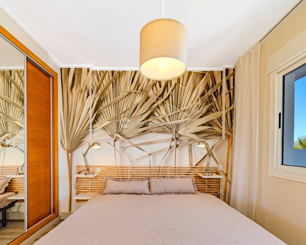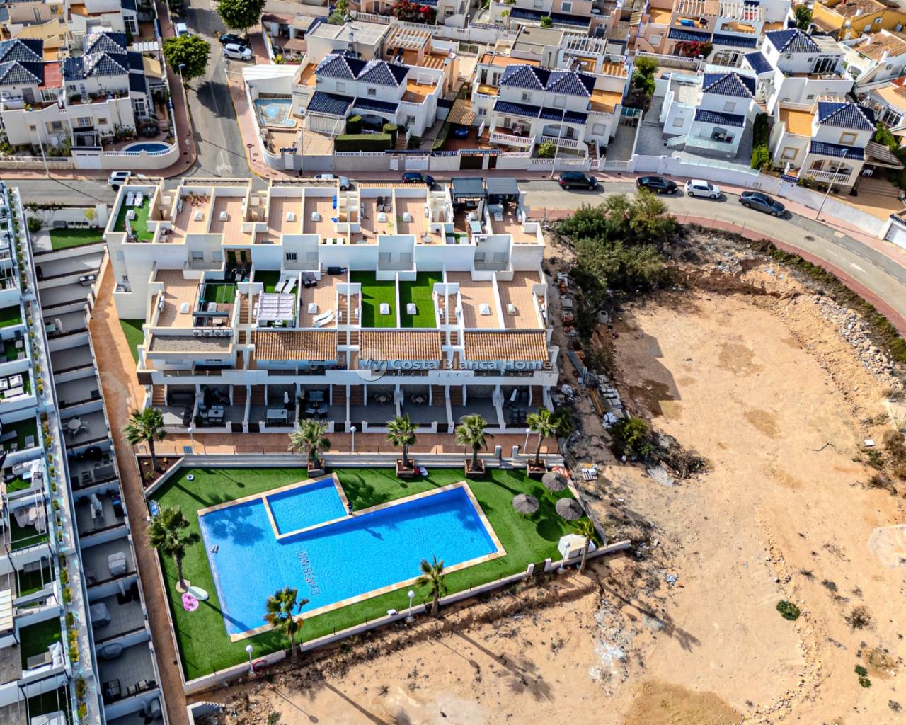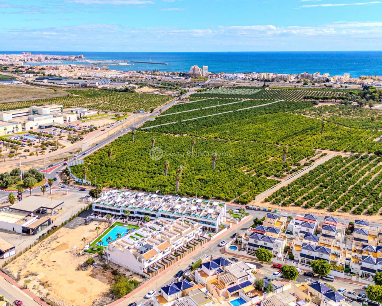 This townhouse is located in the Los Balcones area of Torrevieja, within the residential complex called Los Altos de la Laguna. The property offers views of the Pink Lake and provides a functional living space. The home is a duplex with two floors connected by an internal staircase. It has a total built area of approximately 74.69 m², with a usable interior space of about 69.69 m². The layout includes multiple rooms and a porch. The kitchen is separate and fully equipped with modern appliances. There are three bedrooms with built-in wardrobes, one of which has access to a balcony overlooking the community swimming pool. The property also has two bathrooms. Outside, the property features a private rooftop solarium of around 22.77 m², access to a community swimming pool, and a front garden of about 15 m². These spaces provide options for outdoor use. A private parking space is included. The house is constructed with materials such as porcelain flooring and custom carpentry. It is situated in a quiet area close to supermarkets, restaurants, schools, and other services. Los Balcones is a residential area in Torrevieja known for its natural surroundings and views of the Pink Lake. The climate is mild year-round, suitable for both permanent residence and vacation use.