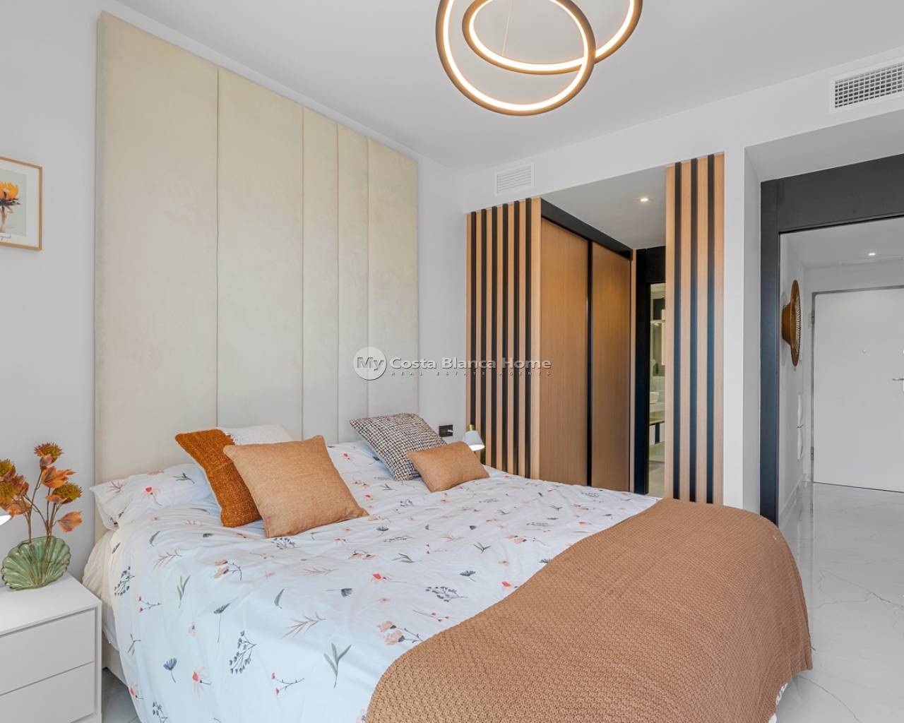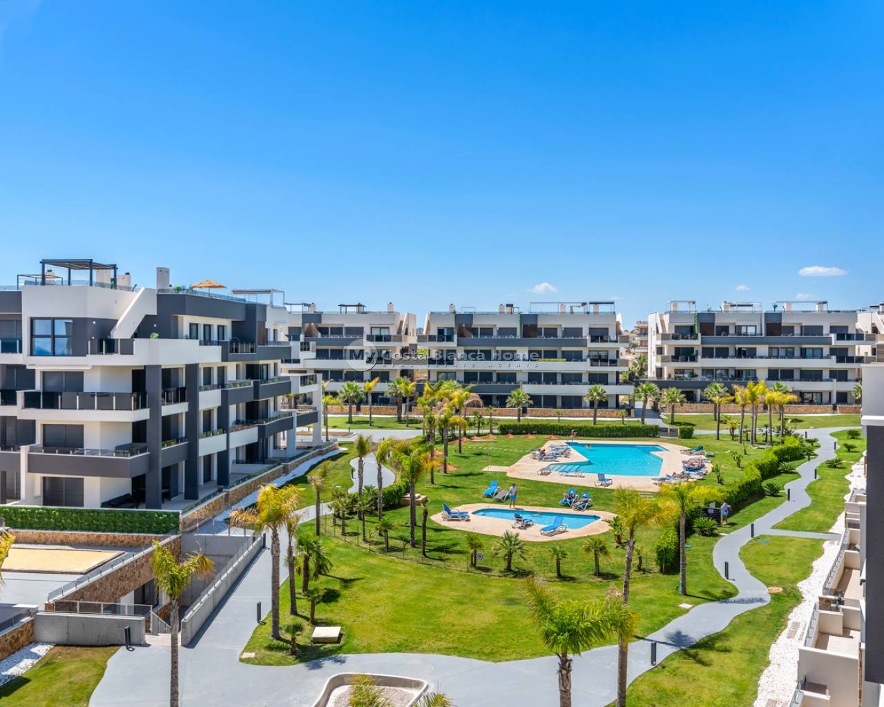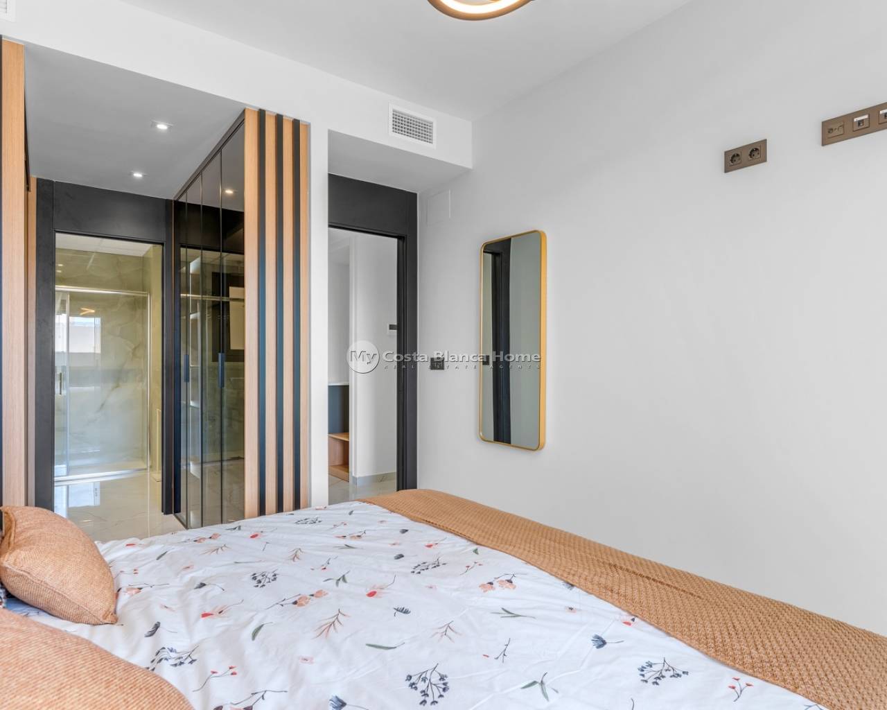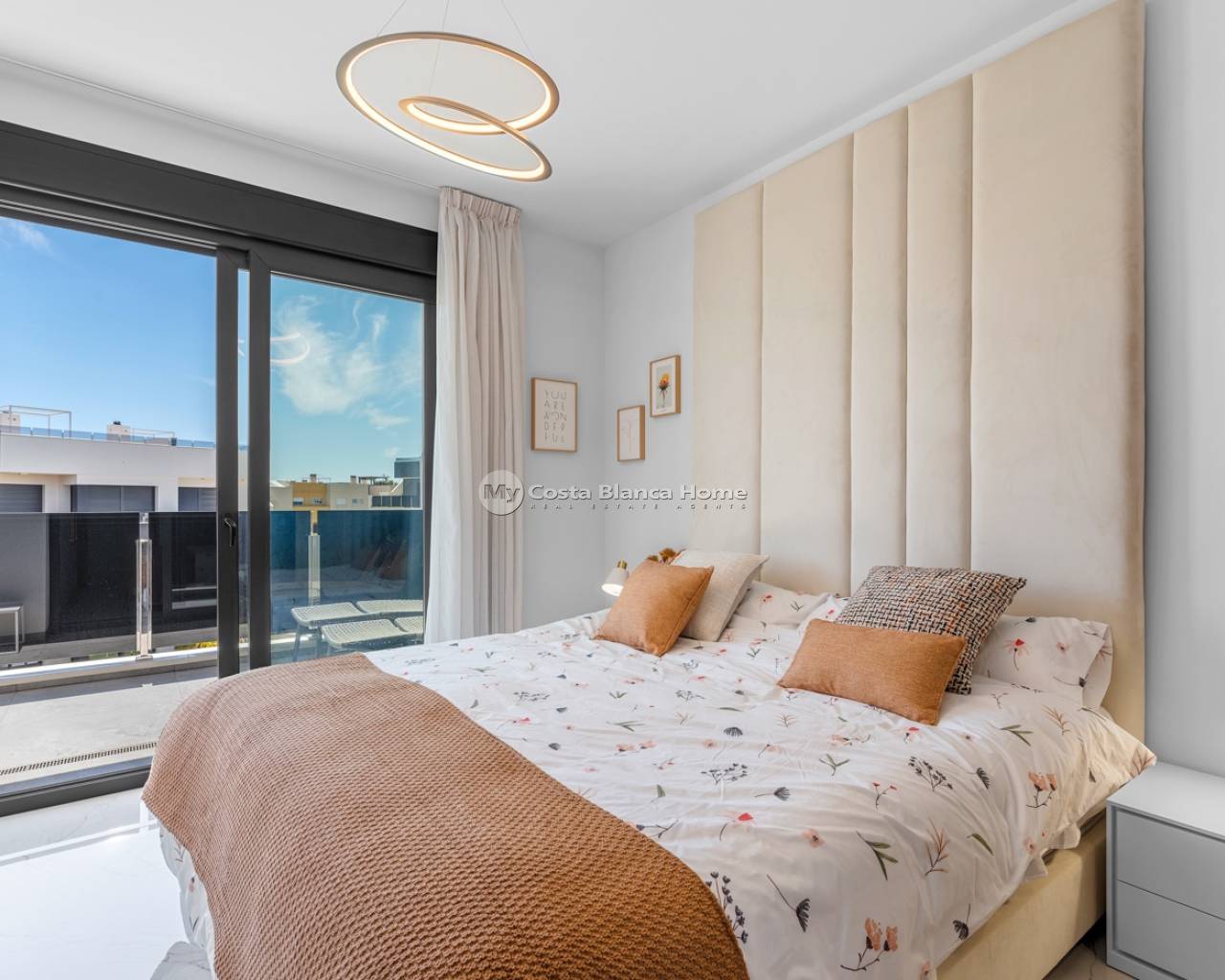 Located in the exclusive Amanecer Deluxe residential complex, this two-storey apartment offers an excellent combination of location, comfort and sea views. Situated in Orihuela Costa, just steps from the Mediterranean and close to all essential services, it is ideal as a permanent residence or holiday investment. The property features three bedrooms, two bathrooms (one en suite), an independent kitchen, and a spacious living-dining area. All rooms, including the kitchen, have direct access to a continuous balcony with sea views and space to sit and enjoy the outdoors. It is sold fully furnished and equipped with high-quality materials: PVC windows with electric shutters, underfloor heating in bathrooms, and modern finishes. On the upper floor, you'll find a private solarium with a swimming pool, perfect for relaxing in complete privacy. The apartment also includes a large, enclosed parking space within the complex. The residential offers communal green areas, a swimming pool and a children's playground, all in a quiet and well-maintained setting.