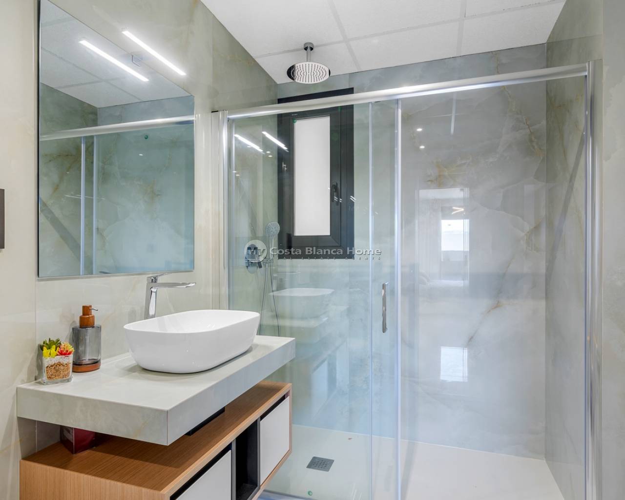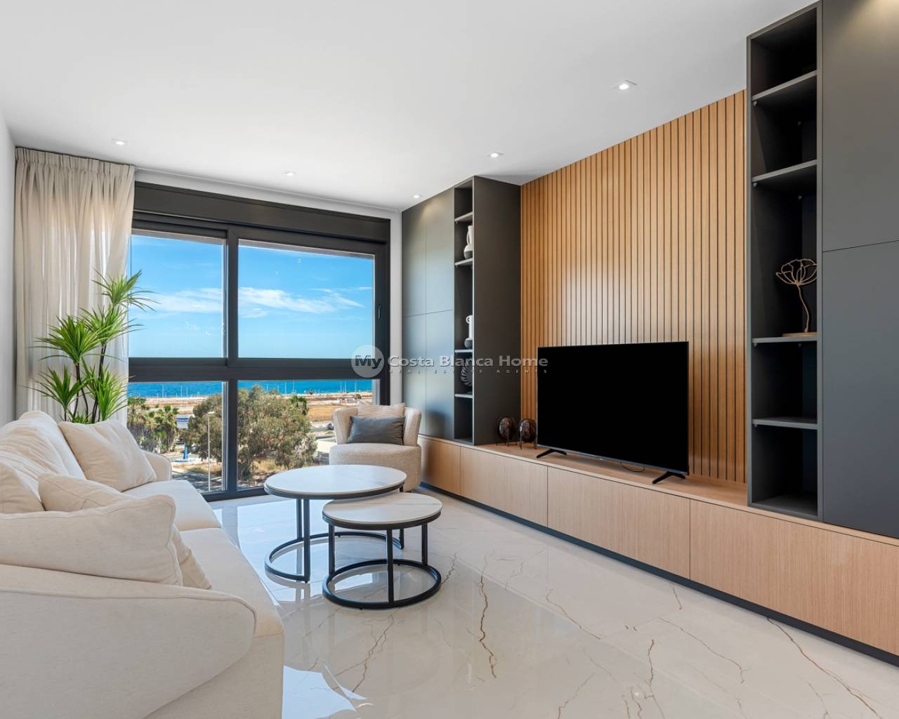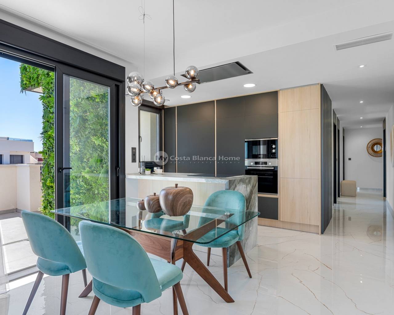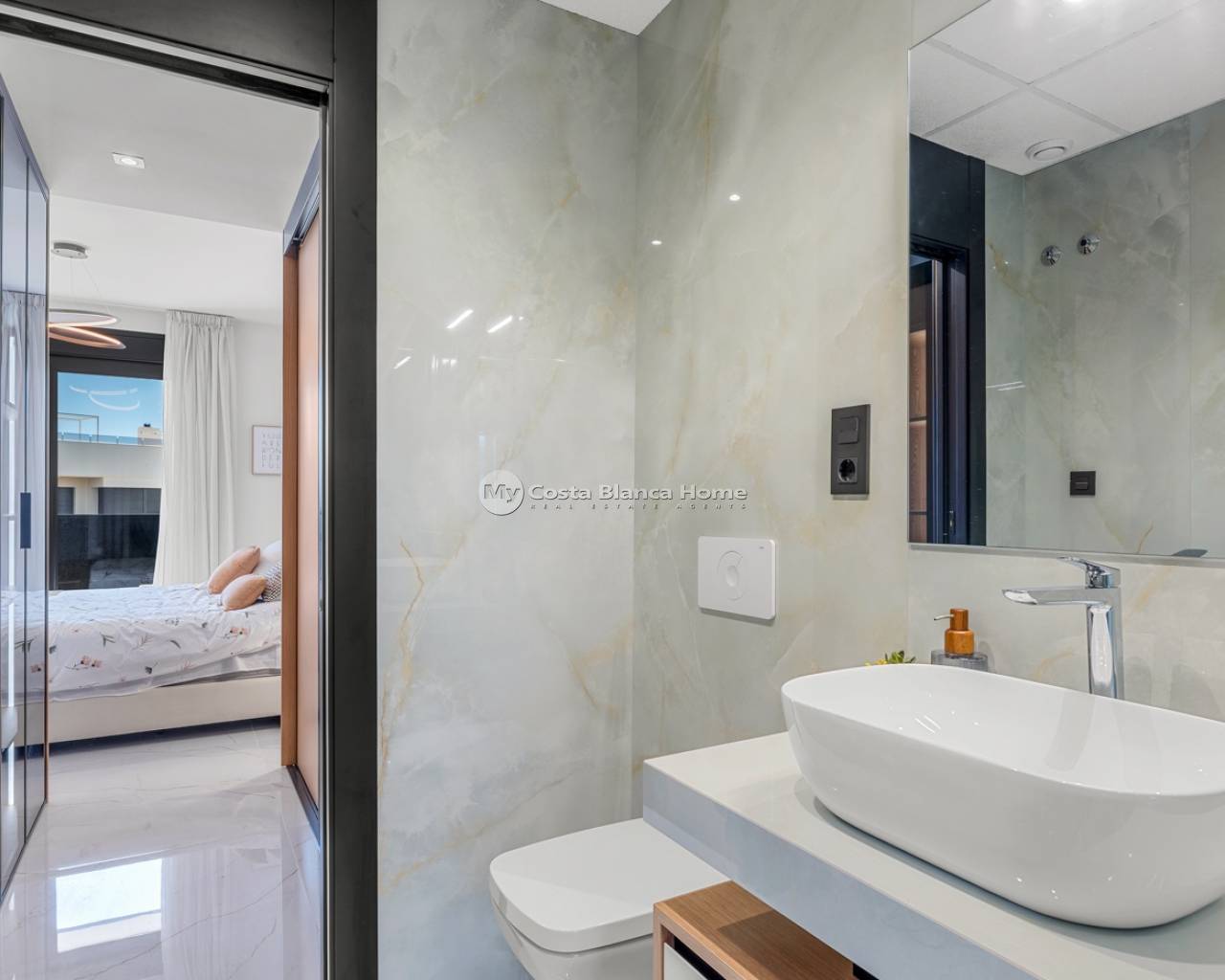 Located in the exclusive Amanecer Deluxe residential complex, this two-storey apartment offers an excellent combination of location, comfort and sea views. Situated in Orihuela Costa, just steps from the Mediterranean and close to all essential services, it is ideal as a permanent residence or holiday investment. The property features three bedrooms, two bathrooms (one en suite), an independent kitchen, and a spacious living-dining area. All rooms, including the kitchen, have direct access to a continuous balcony with sea views and space to sit and enjoy the outdoors. It is sold fully furnished and equipped with high-quality materials: PVC windows with electric shutters, underfloor heating in bathrooms, and modern finishes. On the upper floor, you'll find a private solarium with a swimming pool, perfect for relaxing in complete privacy. The apartment also includes a large, enclosed parking space within the complex. The residential offers communal green areas, a swimming pool and a children's playground, all in a quiet and well-maintained setting.