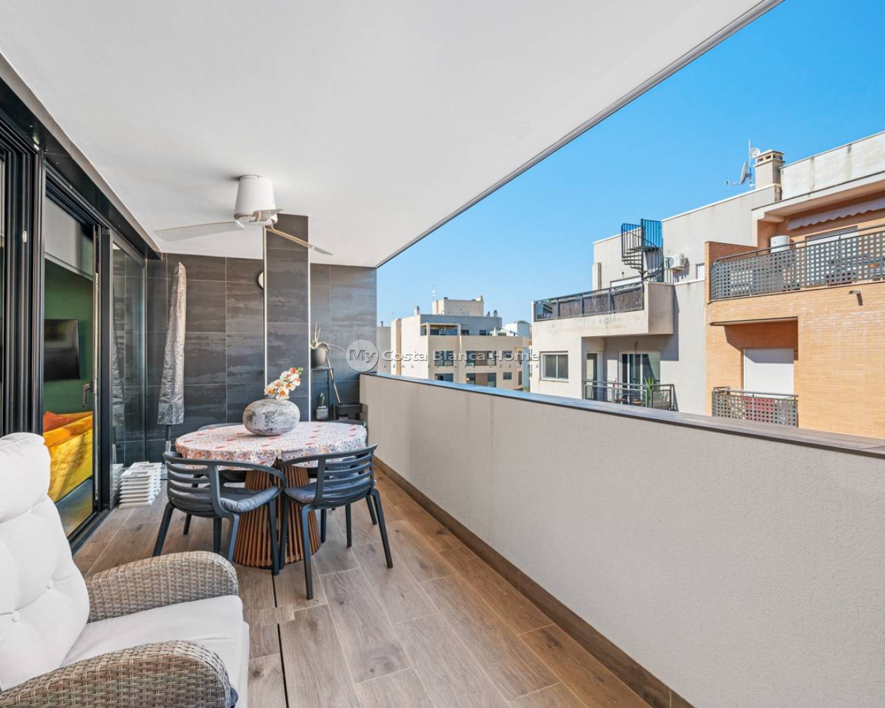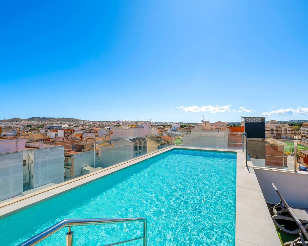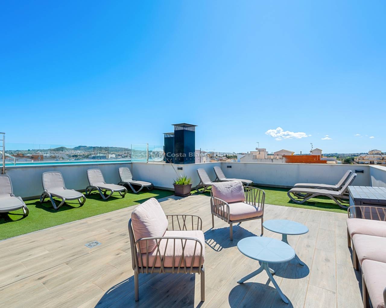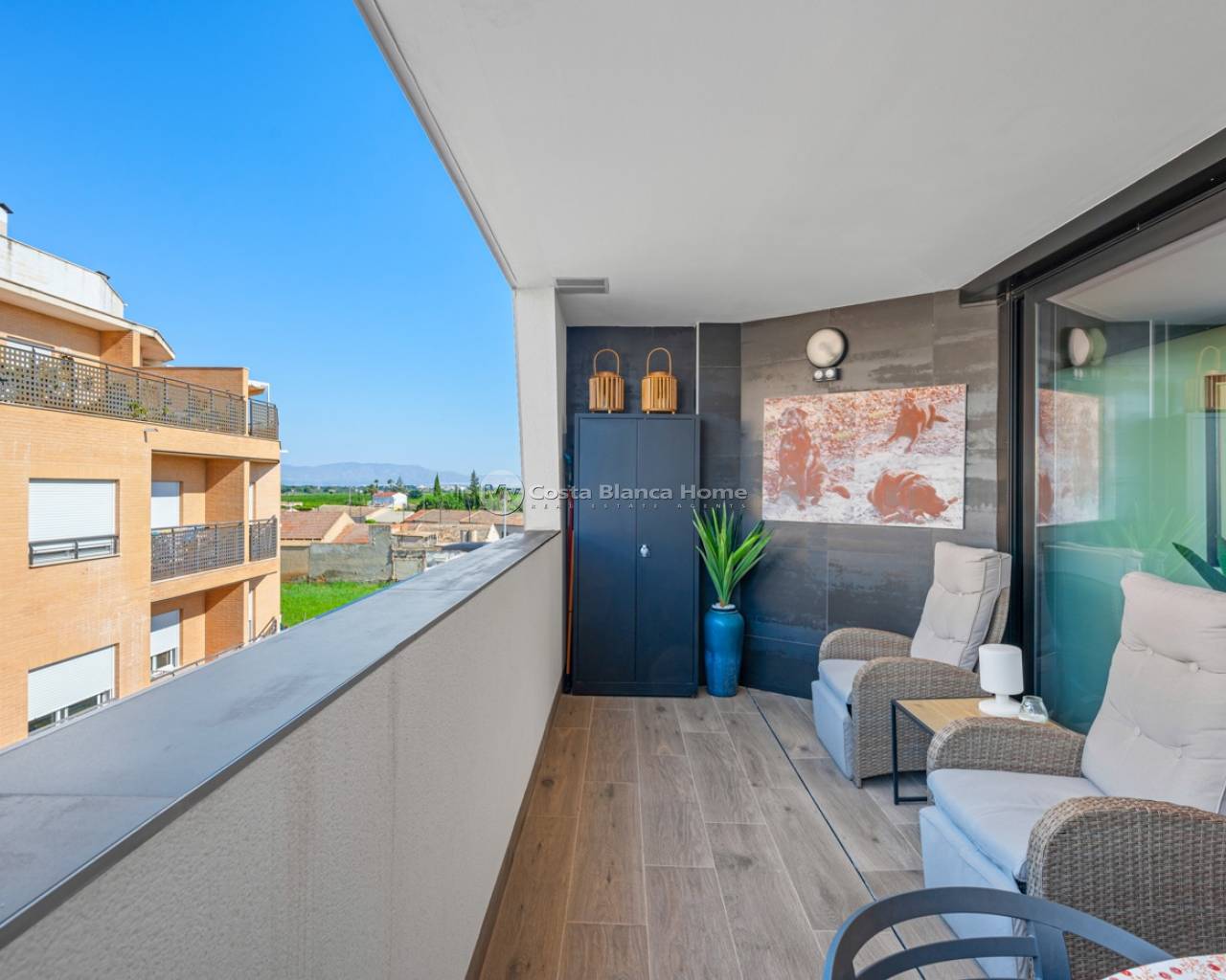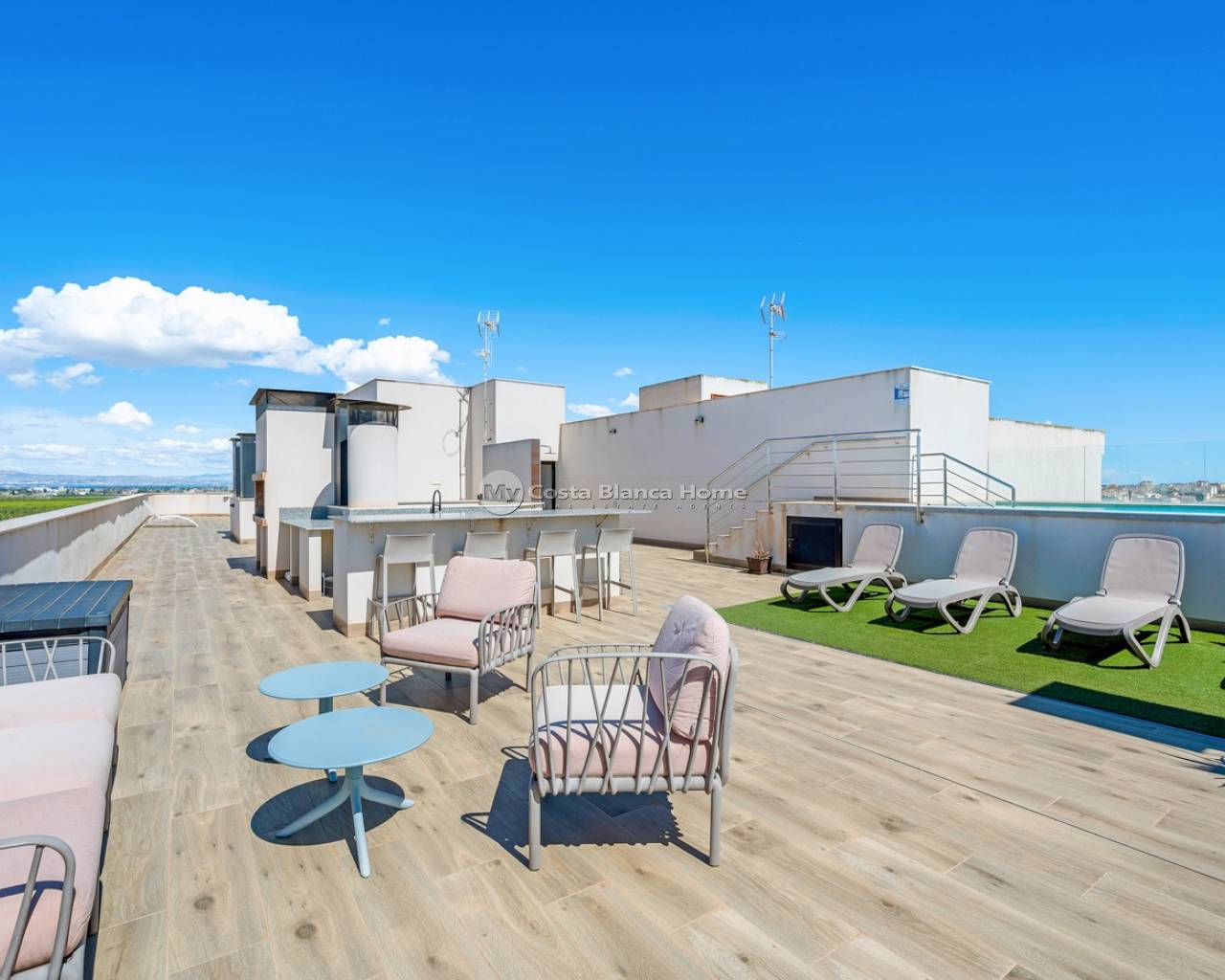 2-bedroom apartment with terrace in Edificio Valentina, Formentera del Segura Located in the Edificio Valentina in Formentera del Segura (Alicante), this apartment stands out for its contemporary design, natural light, and quality finishes. It features two bedrooms, one of them en-suite with a private bathroom, and a second full bathroom with shower. Both bathrooms include modern suspended furniture, mirrors with indirect lighting, wall-mounted toilets, and walk-in showers. The open-plan kitchen, equipped with a ceramic hob and extractor fan, connects with the spacious living-dining area, which opens onto a covered terrace—ideal for enjoying the Mediterranean climate year-round. The L-shaped layout optimizes space and functionality. The apartment also includes an entrance hall, separate laundry area, storage room, and air conditioning. Total built area: 92.70 m² (77 m² living space + 15.70 m² covered terrace).Total usable area: 82.90 m² (67.20 m² living space + 15.70 m² terrace). The rooftop features a communal area with a 3 x 8 m outdoor pool, sauna, open-air gym, relaxation zone with loungers, and an outdoor kitchen with barbecue. Ideally located: 12 km from the beach, 400 meters from shops and services, and 30 minutes from the airport.