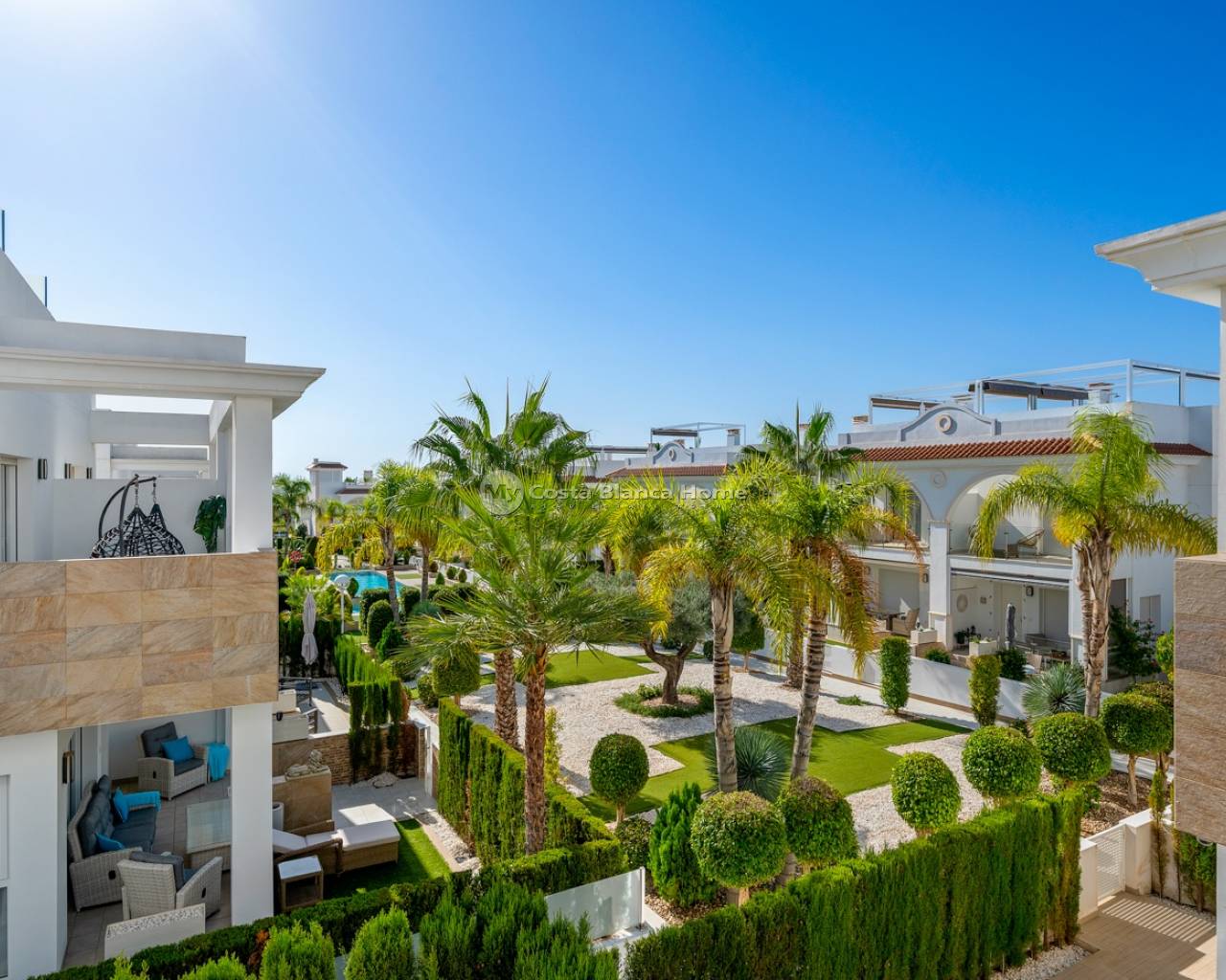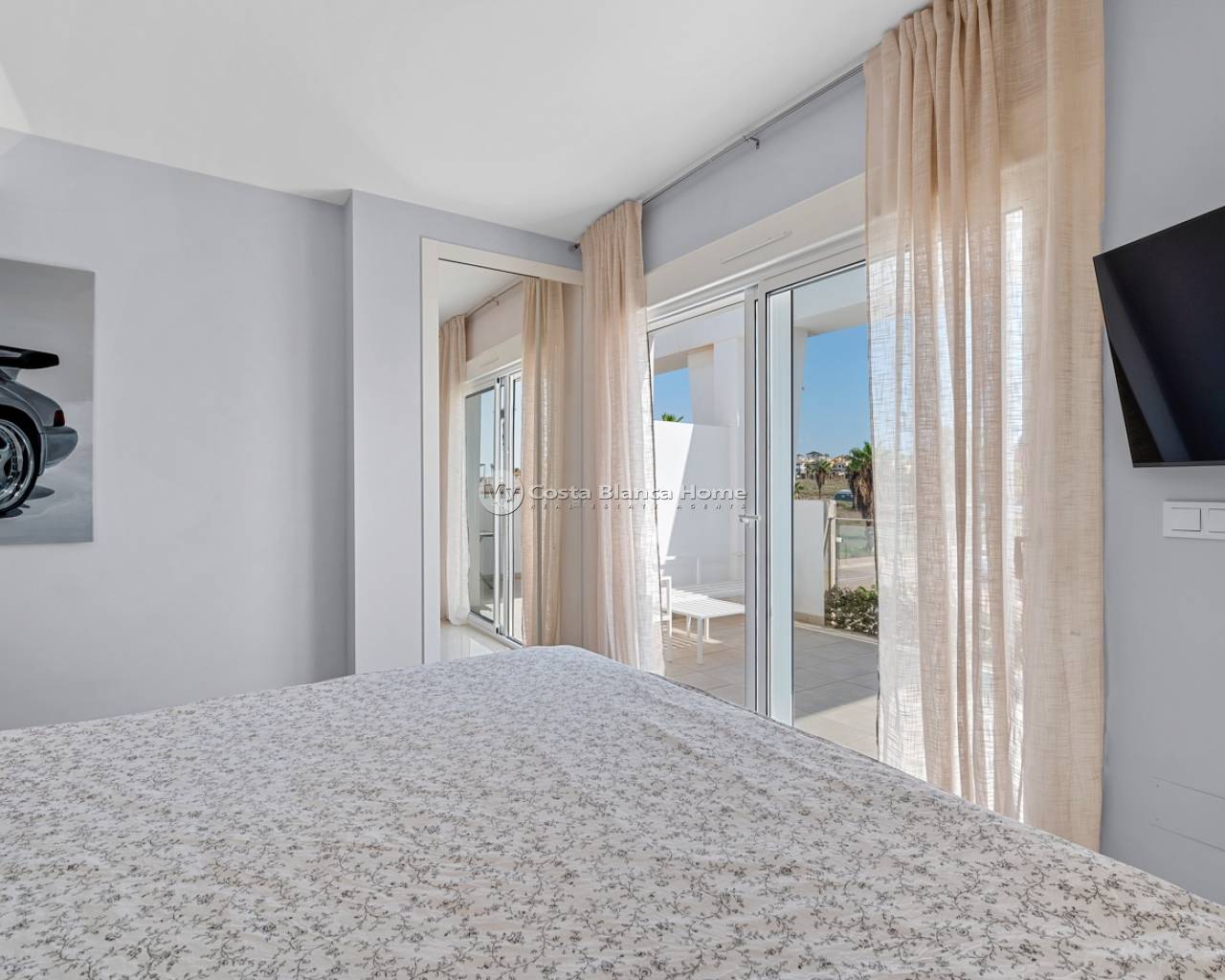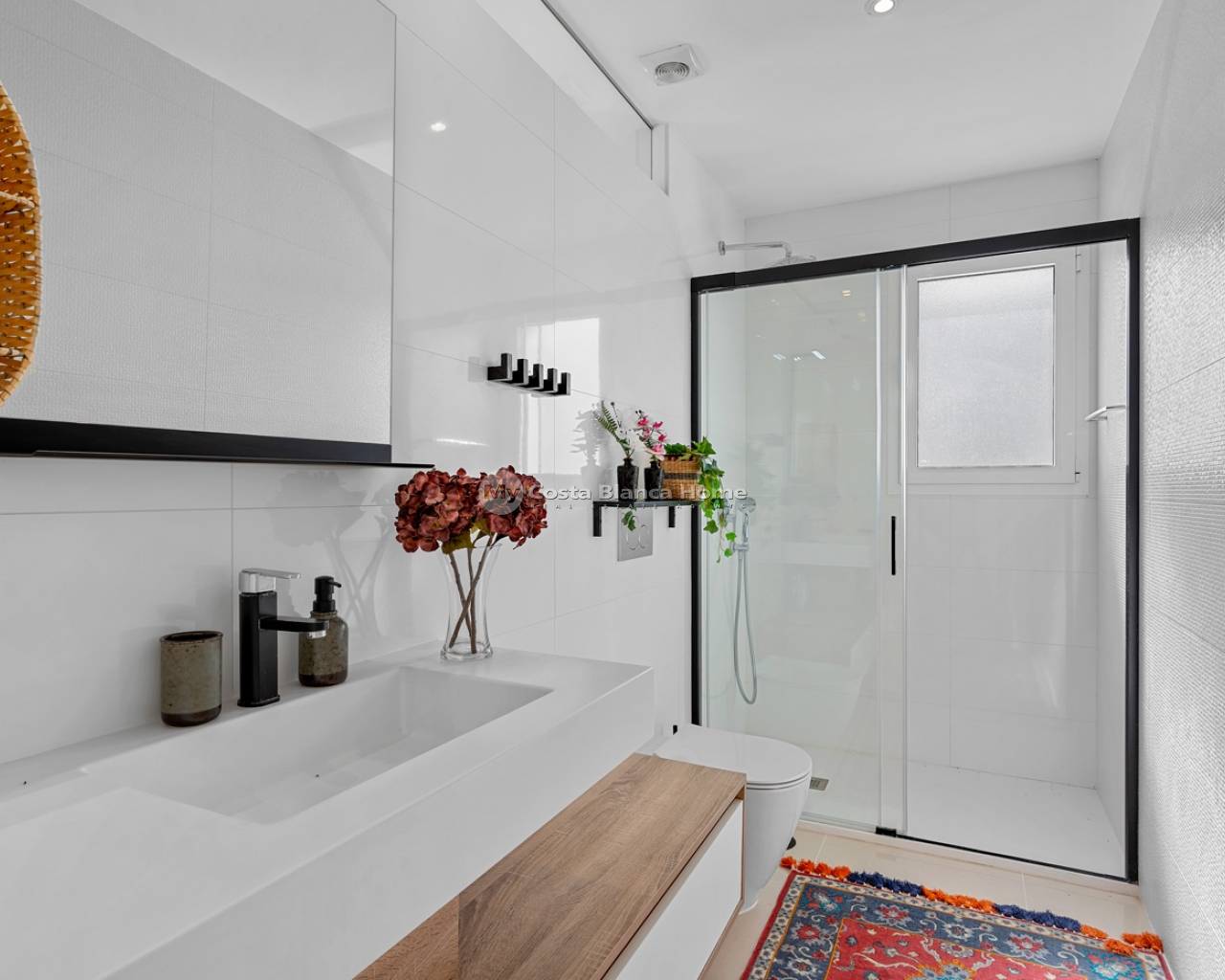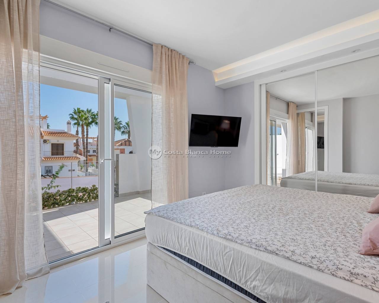 We are pleased to present this exceptional property – a modern, two-level semi-detached villa located in one of the most sought-after areas of the Costa Blanca. This elegant home perfectly combines the comfort of everyday living with the charm of Spanish architecture and the luxury of a holiday retreat. The ground floor features a spacious, bright living room with an open-plan kitchen, a bedroom, a utility room, and direct access to the terrace and private garden – the perfect spot for morning coffee or an evening meal surrounded by greenery. On the upper floor, you’ll find two comfortable bedrooms, each with its own en-suite bathroom and private balcony. At the top, a large rooftop solarium offers a private space to relax and enjoy the sun all year round. The entire development stands out for its high-quality finishes – modern interiors, elegant materials, full equipment, and carefully selected furniture create an atmosphere of luxury and comfort. Residents can enjoy a beautiful communal swimming pool, surrounded by well-maintained gardens and relaxing leisure areas, ideal for soaking up the Mediterranean lifestyle. Ciudad Quesada offers an excellent location – close to large supermarkets, restaurants, shops, cafés, and prestigious golf courses. The sandy beaches of Guardamar and La Mata are just 8 km away, while Alicante Airport can be reached in around 35 minutes. Living in Spain means more than 300 days of sunshine each year, a peaceful pace of life, excellent cuisine, and a welcoming international community. This home is the perfect combination of style, quality, and comfort – ideal both as a permanent residence and a profitable investment for holiday rentals.