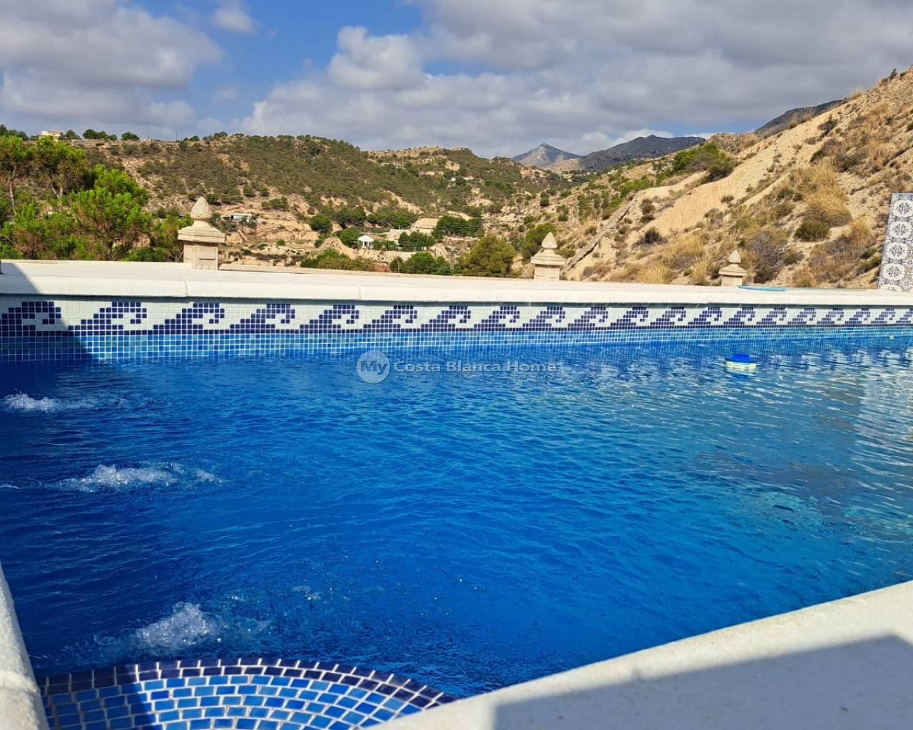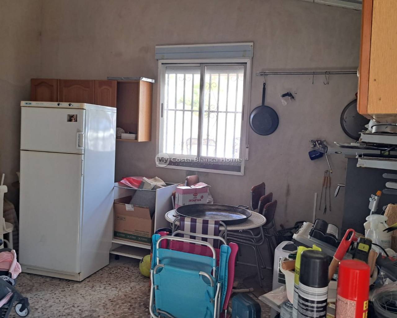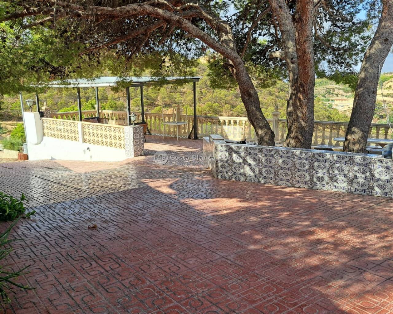 Rustic country house on the outskirts of Crevillente (Alicante), just 25 minutes from the beach, with stunning mountain views which can be admired from the property. The house has been largely renovated and consists of 4 bedrooms, one of which is a cave bedroom, 1 new bathroom, a large living room with a chimney, a dinning / lounge area with chimney, a completely new kitchen, a covered terrace and a renovated roof terrace area. It has a living area of 140m² and a plot of 9871m², although only the house and garden area is fully fenced. The house has multiple air conditioning units. The garden features a private pool, a large terrace, a summer kitchen with Pizza oven, that could be converted into a guest apartment, an external bathroom, a covered barbecue area and a huge storage room built into the mountain. There is also a carport in the entrance area. Most of the property is mountainous with some olive and pomegranate trees on individule layered plateau area. The house has electricity, mains water, irrigation water and a newly installed septic tank with a pump that pumps the water up the hill so the land can be irrigated.