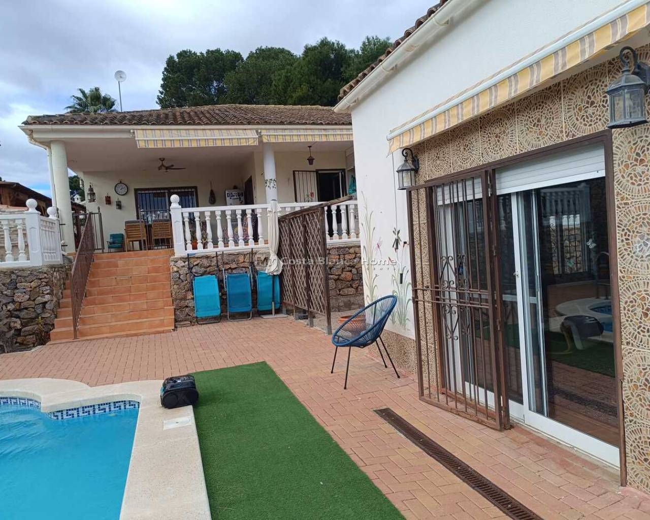 This lovely 3-Bedroom 2 Bathroom (1 is an en-suite) Villa with a separate 1 bedroom Casita is located in the El Reloj section of the town of Fortuna, Murcia. There are 5 AC Units in the main home and 1 AC Unit in the Casita. The property will be sold fully furnished. The home has a highly efficient Pellet Burner installed in the Lounge. The home boasts lovely Mountain Views and the neighbouring countryside. There are no Communal Fees for this home. However, there is a Communal Area within the Estate, that contains an outdoor pool and restaurant. This is a 5-minute walk from the property. An optional monthly fee of €50 is paid however in order to use the facilities at this Communal area. There are Air Conditioning/Heater Inverters at the home. All paperwork has recently been updated on the deeds to the home. The property is a 12-minute drive away from the town of Fortuna, where there is a 24-hour Medical Centre, schools, an outdoor market on Saturdays, and many more amenities. “Los Baños de Fortuna" a thermal spa destination is only a 15-minute drive away. This complex offers a wide variety of therapeutic treatments, as well has “thermal water” outdoor pools at a constant temperature of 36 degrees year round.