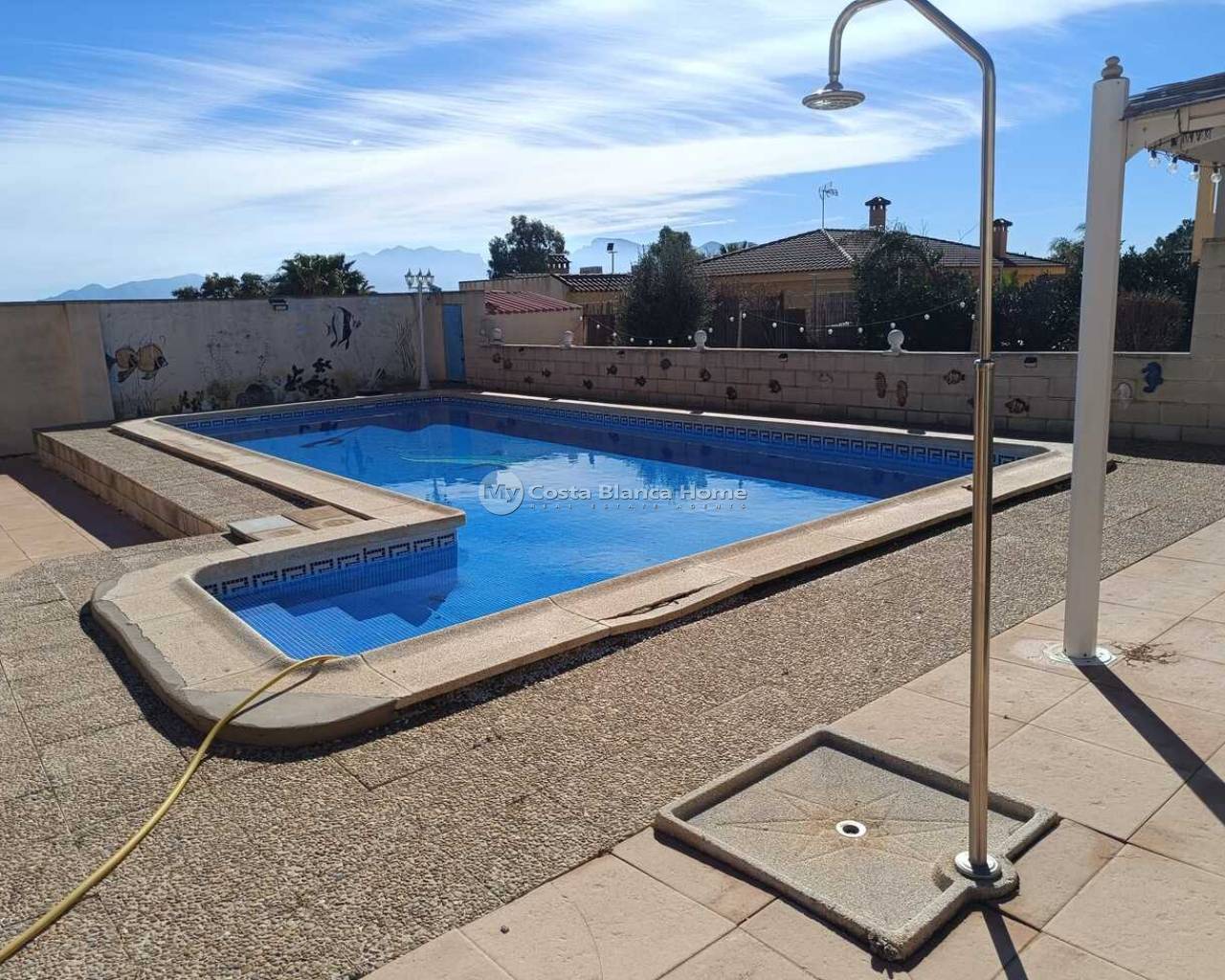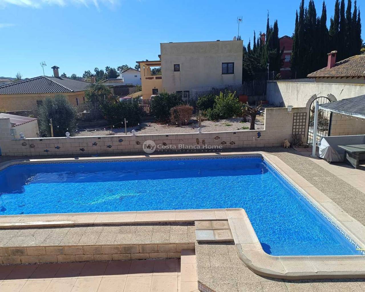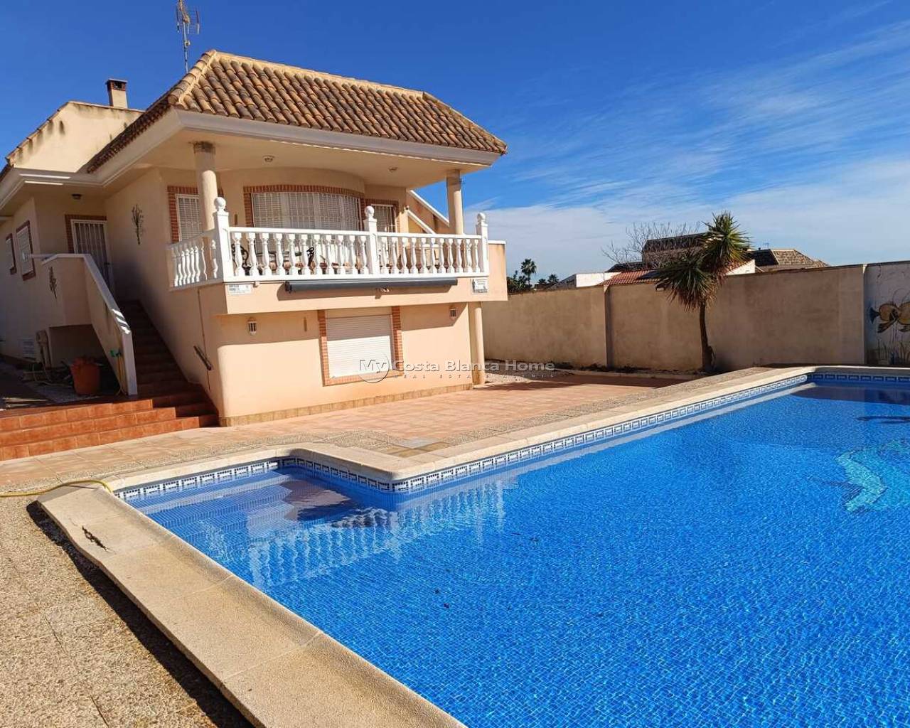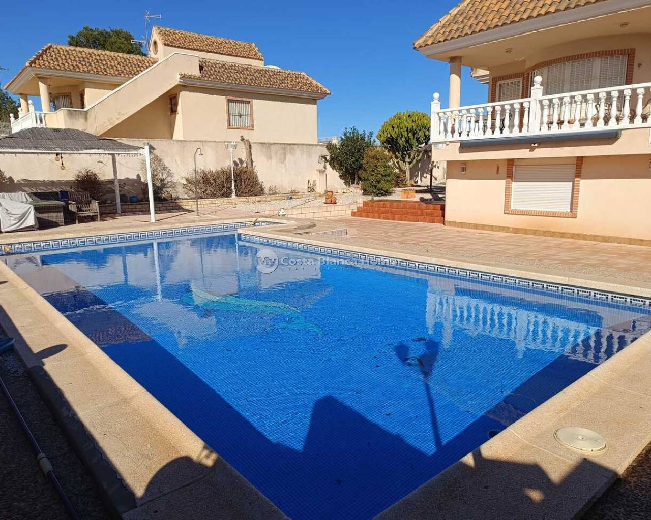 This 5-Bedroom, 3-Bathroom Villa has an Underbuild and a larger Urban plot. The property is located in the El Reloj Urbanization which is part of the town of Fortuna, Murcia. The property will be sold furnished. The kitchen boasts an “American Sytle” Fridge/Freezer, a Dishwasher, a Gas Hob, and a door that exits to a staircase that further leads to the rear garden. There are double-glazed windows throughout the home. The large, comfortable lounge, has a door that leads to a lovely terrace. There are 4 Air Conditioning/Heater Inverters installed. From the Solarium, there are lovely Views of the neighbouring Countryside and Mountains. This home is in need of “TLC” and this is reflective in the Listing Price. There are no Communal Fees for this home. However, there is a Communal Area within the Estate, that contains an outdoor pool and restaurant. This is a 5-minute walk from the property. An optional monthly fee of €50 is paid however in order to use the facilities at this Communal area. The home is completely legal, and all paperwork has recently been updated on the deeds to the home. The property is a 12-minute drive away from the towns of Fortuna and Abanilla. The Nueva Condomina Shopping Complex and the city of Murcia are a 20 minute distance by car. “Los Baños de Fortuna" a thermal spa destination is only a 15-minute drive away. This complex offers a wide variety of therapeutic treatments, as well has “thermal water” outdoor pools at a constant temperature of 36 degrees year round.