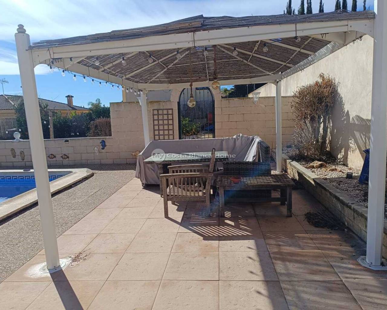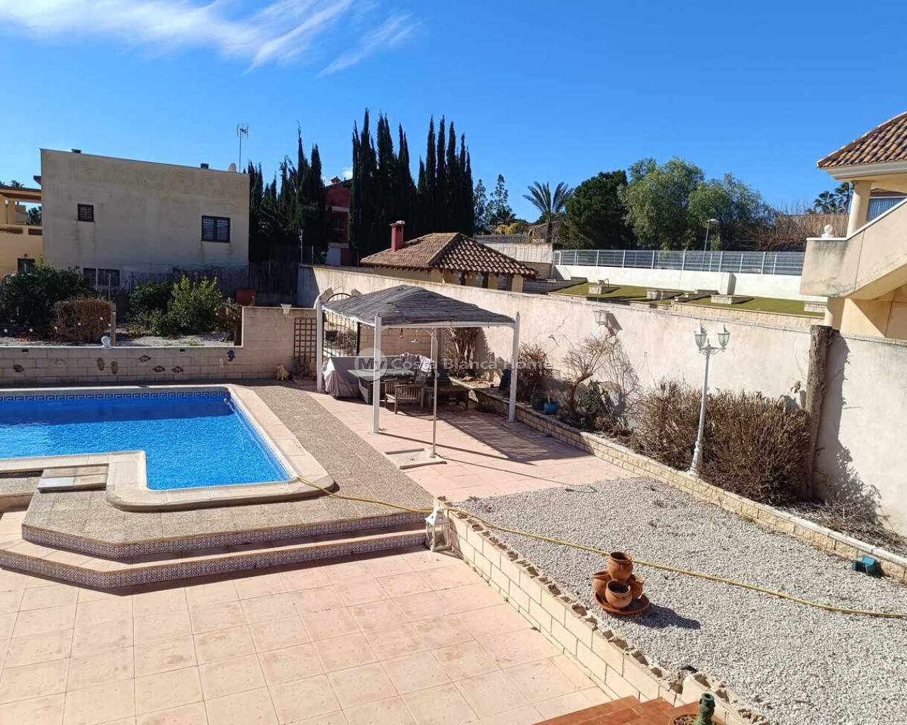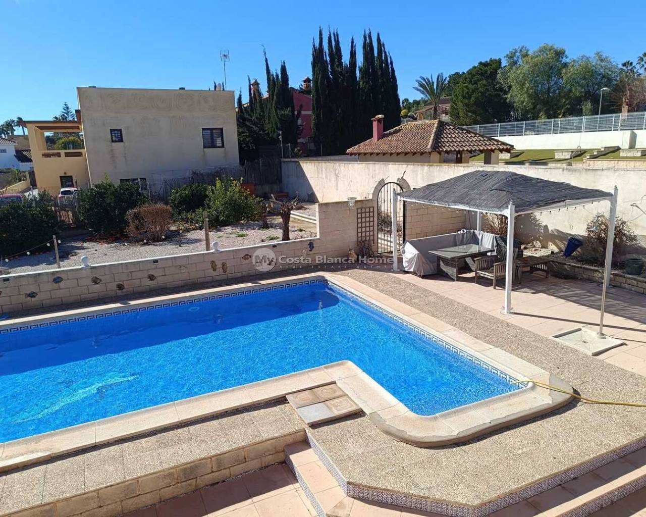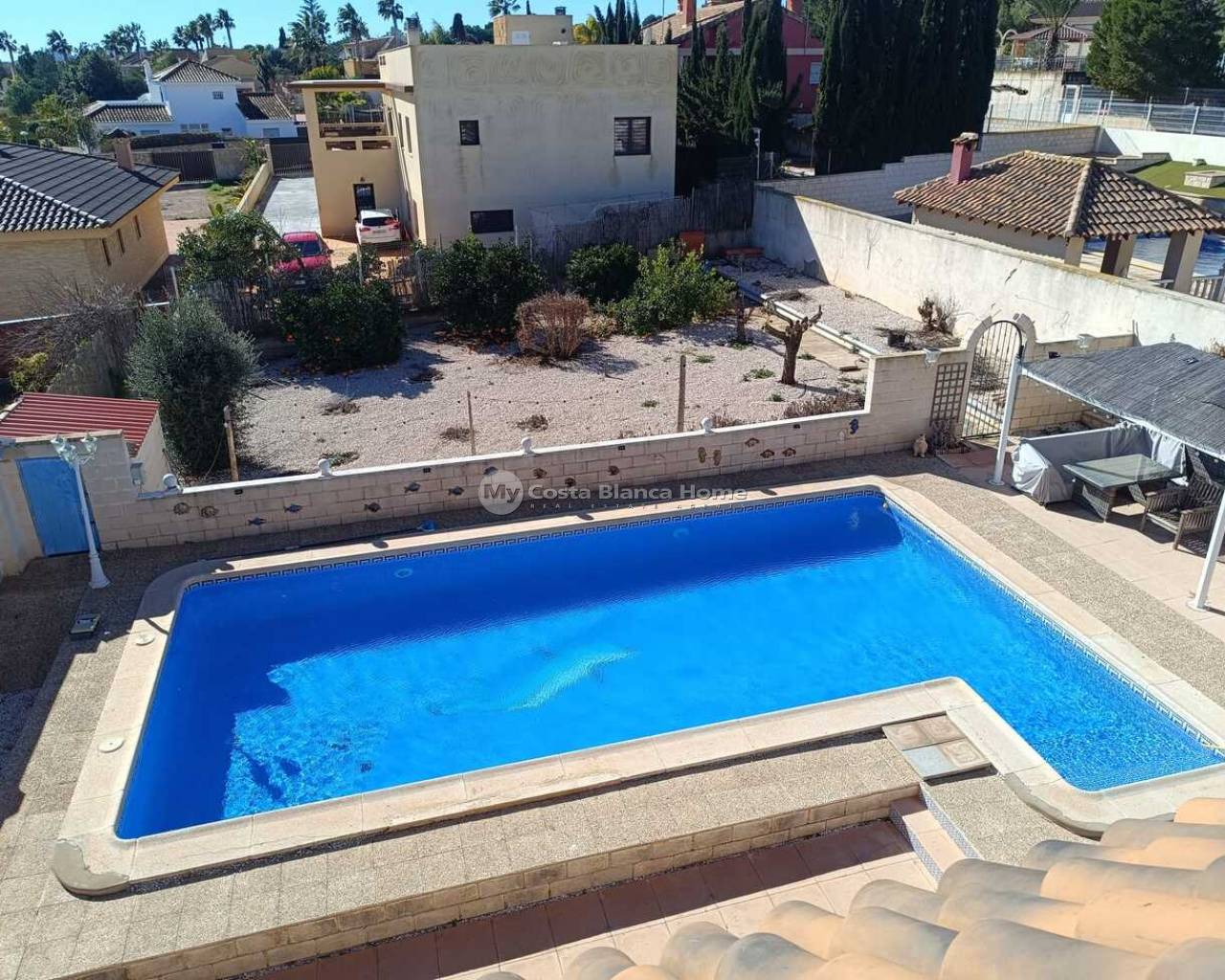 This 5-Bedroom, 3-Bathroom Villa has an Underbuild and a larger Urban plot. The property is located in the El Reloj Urbanization which is part of the town of Fortuna, Murcia. The property will be sold furnished. The kitchen boasts an “American Sytle” Fridge/Freezer, a Dishwasher, a Gas Hob, and a door that exits to a staircase that further leads to the rear garden. There are double-glazed windows throughout the home. The large, comfortable lounge, has a door that leads to a lovely terrace. There are 4 Air Conditioning/Heater Inverters installed. From the Solarium, there are lovely Views of the neighbouring Countryside and Mountains. This home is in need of “TLC” and this is reflective in the Listing Price. There are no Communal Fees for this home. However, there is a Communal Area within the Estate, that contains an outdoor pool and restaurant. This is a 5-minute walk from the property. An optional monthly fee of €50 is paid however in order to use the facilities at this Communal area. The home is completely legal, and all paperwork has recently been updated on the deeds to the home. The property is a 12-minute drive away from the towns of Fortuna and Abanilla. The Nueva Condomina Shopping Complex and the city of Murcia are a 20 minute distance by car. “Los Baños de Fortuna" a thermal spa destination is only a 15-minute drive away. This complex offers a wide variety of therapeutic treatments, as well has “thermal water” outdoor pools at a constant temperature of 36 degrees year round.